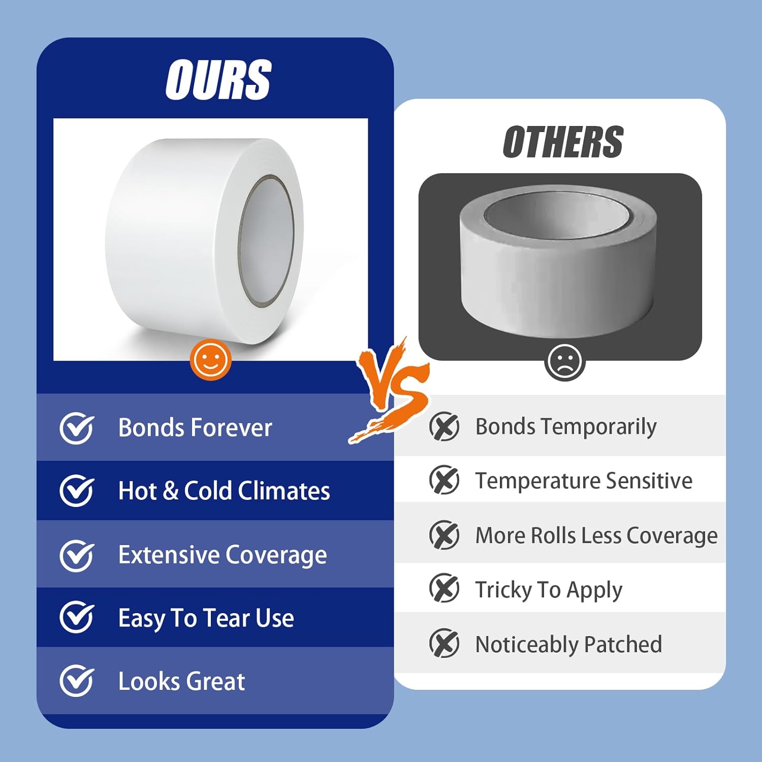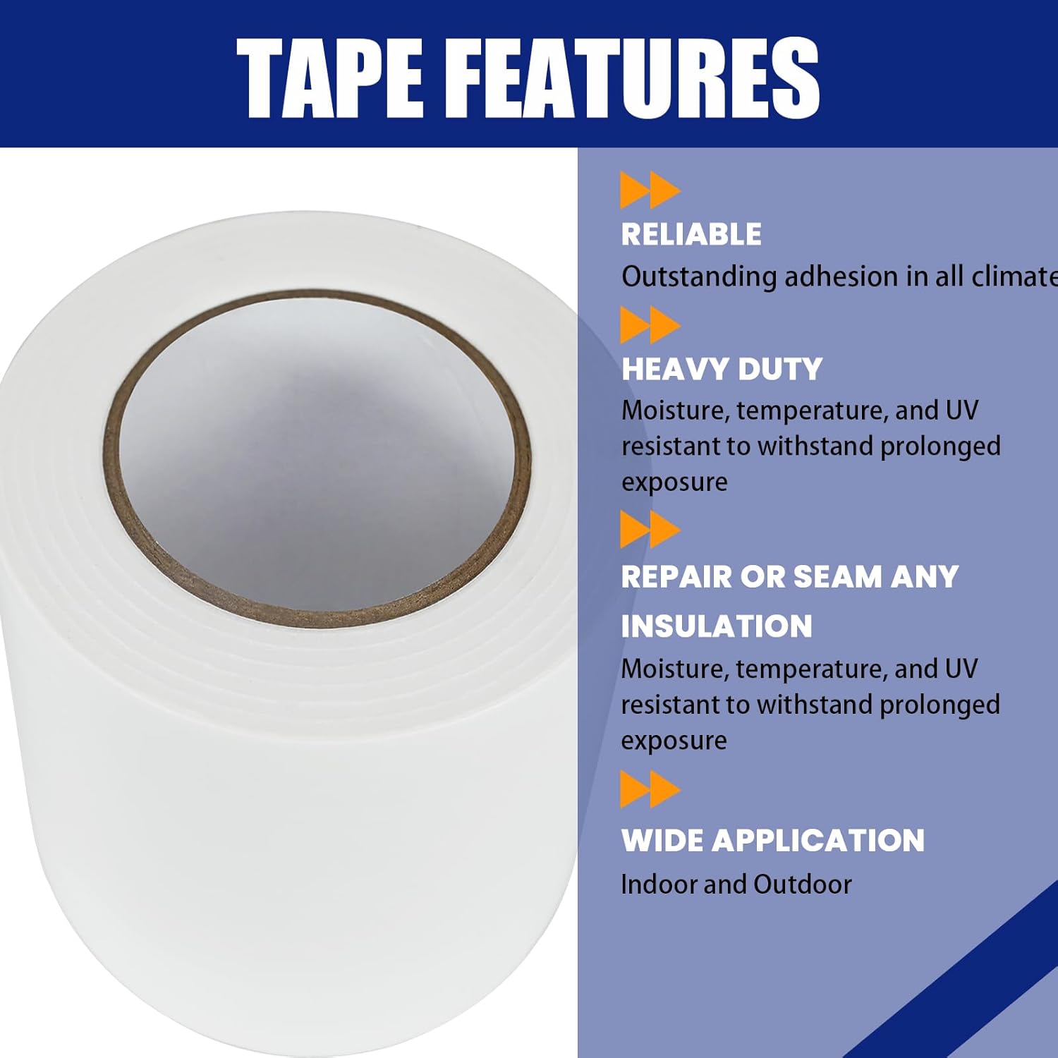 4 Roll, White Vapor Barrier Tape, 4" Wide x 180' Long, PE 9 mm Polyethylene Tape, for Stucco Waterproof Moisture Barriers Seal and Seam, for Crawlspaces, Insulation Repairs & Plastic Liners