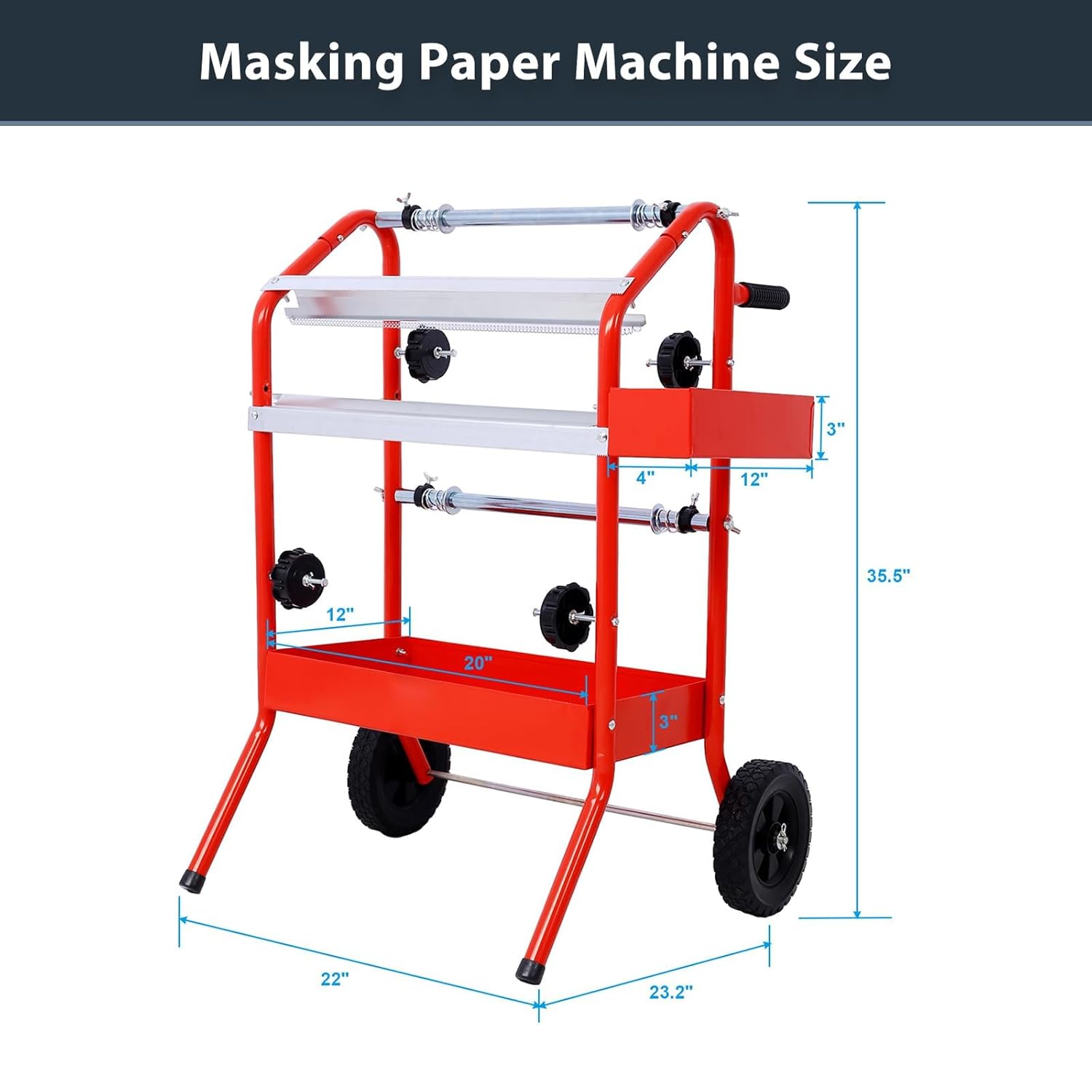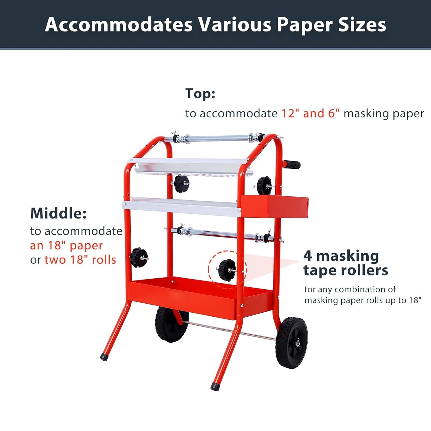 Mobile 18" Multi-Roll Masking Paper Dispenser with Storage Trays - Ideal for Indoor & Outdoor Spray Painting, Auto Body Repair, and Shop Preparation (Blue)