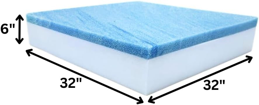 FoamRush 6" x 32" x 32" Gel Memory Foam Upholstery Square Cushion Medium Firm (Chair & Wheelchair Seat Cushion Replacement, Square Foam Dining Chairs, Couch, Sofa, Rubber Padding)