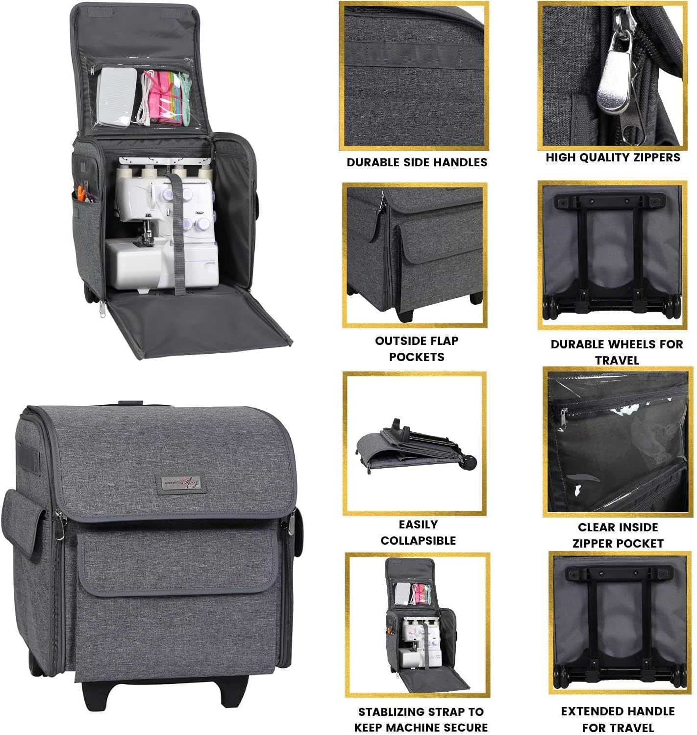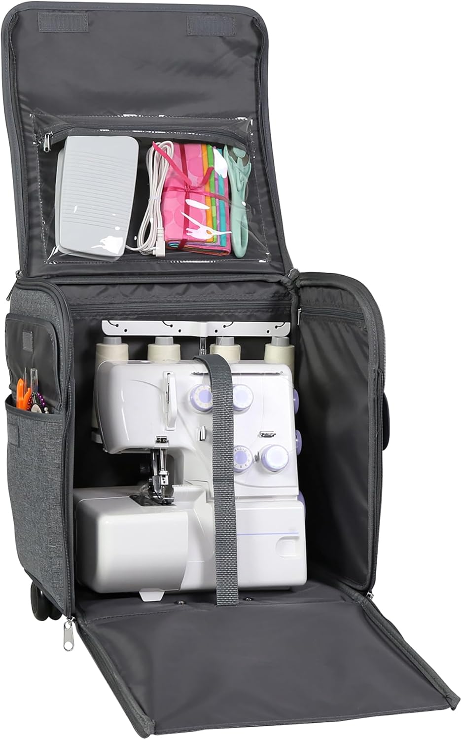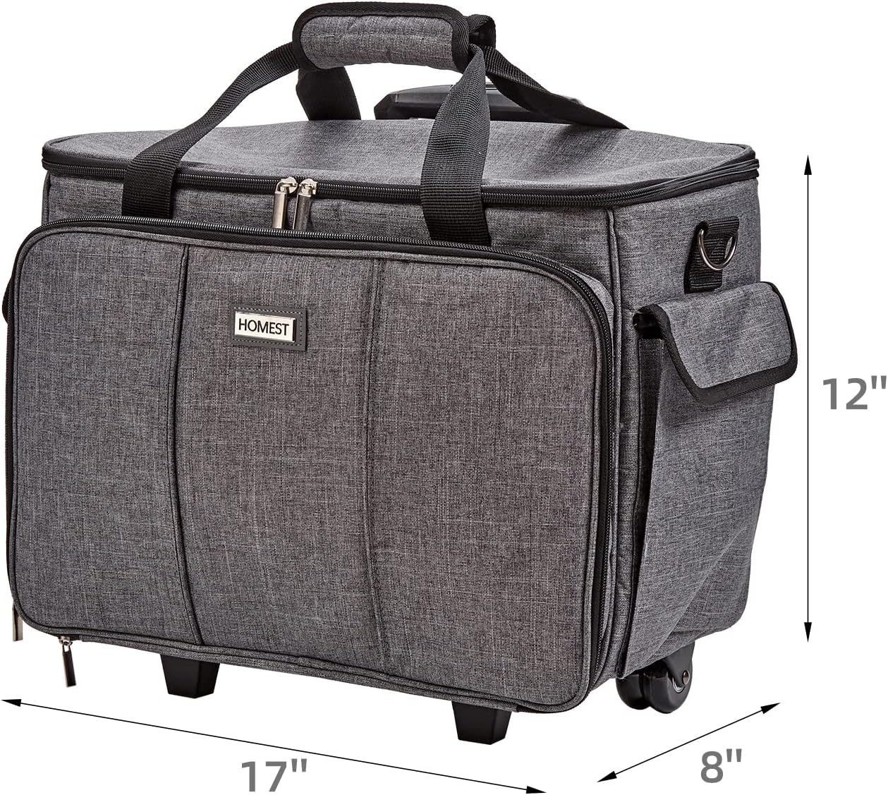 HOMEST Deluxe Sewing Machine Case with Wheels, Rolling Trolley Tote with Multiple Storage Pockets for Accessories, Compatible with Singer & Brother Machine, Grey (Patent Design)