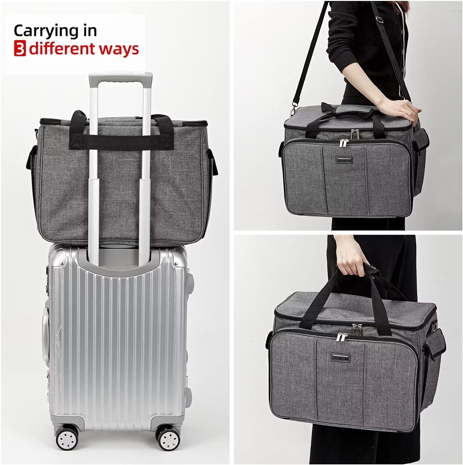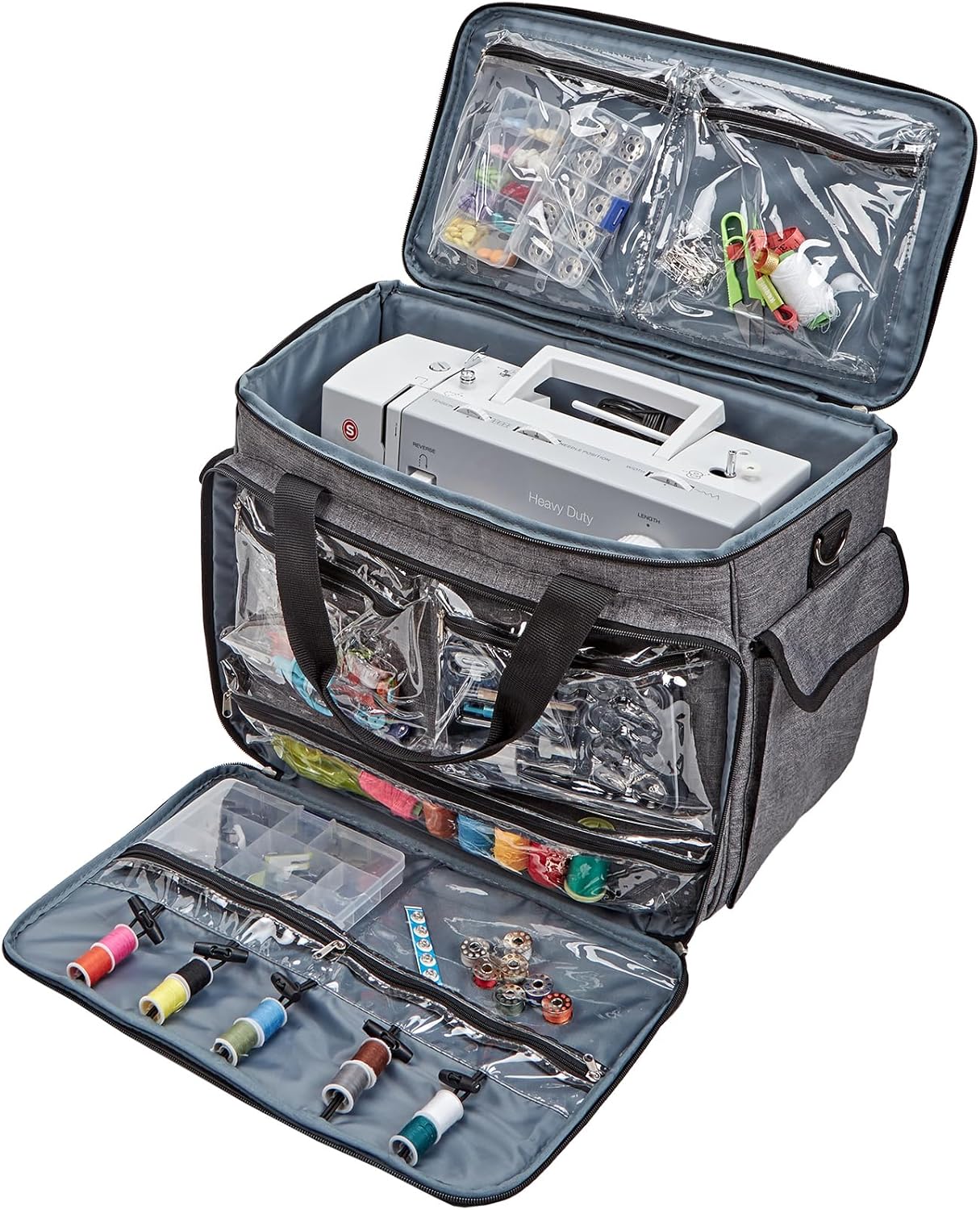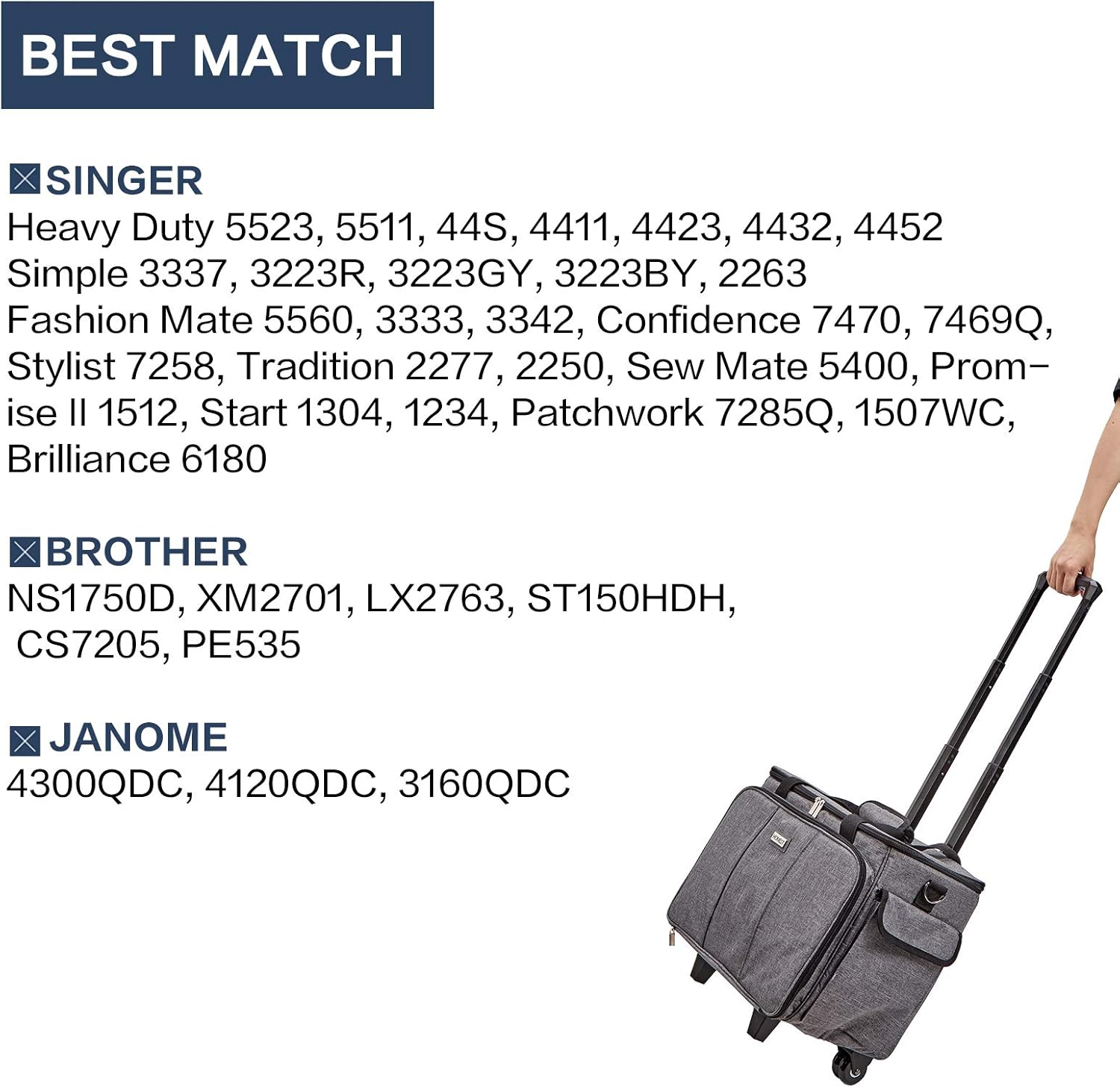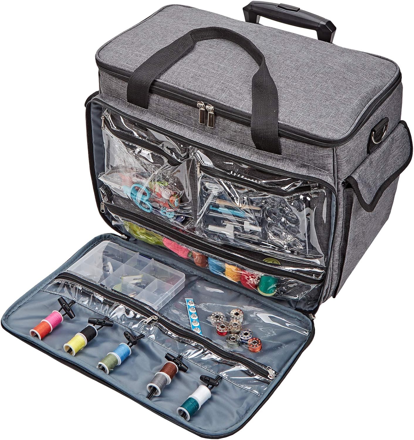 HOMEST Deluxe Sewing Machine Case with Wheels, Rolling Trolley Tote with Multiple Storage Pockets for Accessories, Compatible with Singer & Brother Machine, Grey (Patent Design)