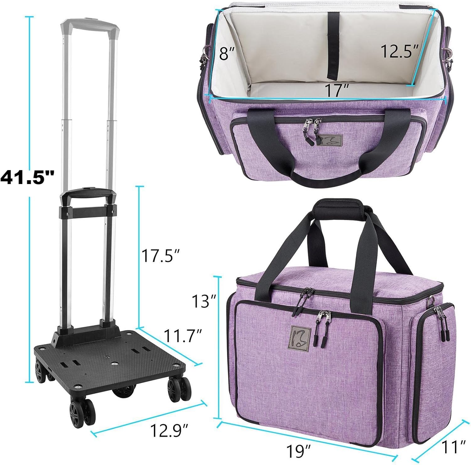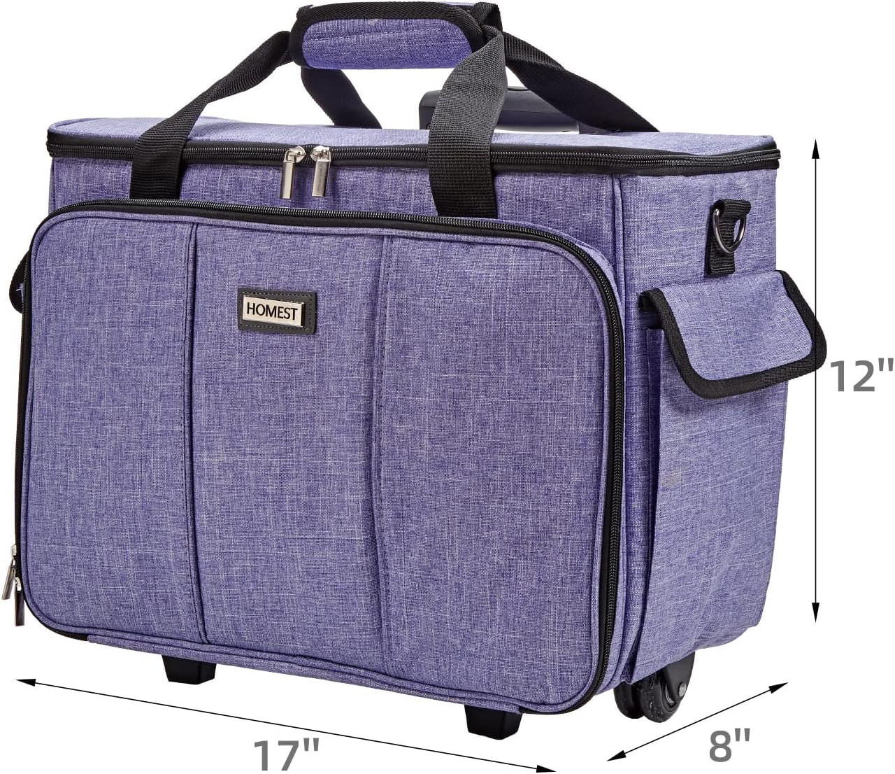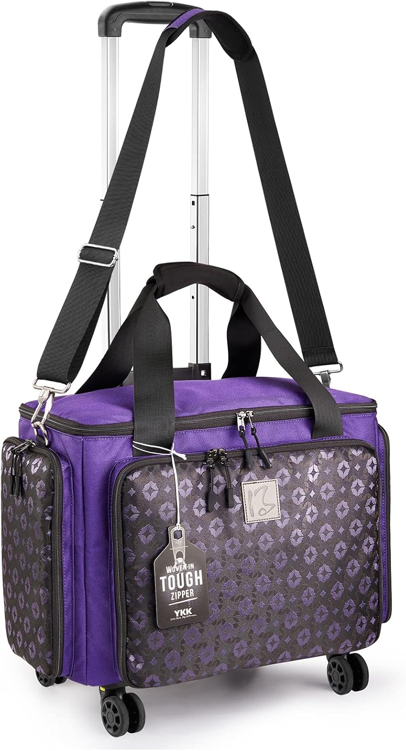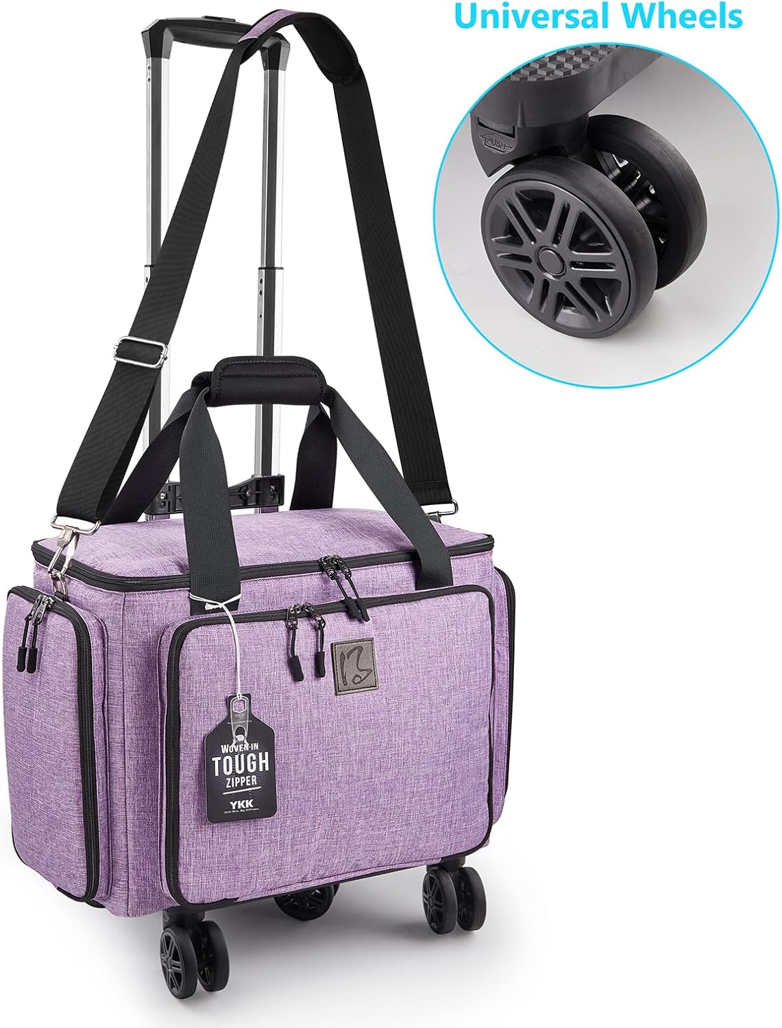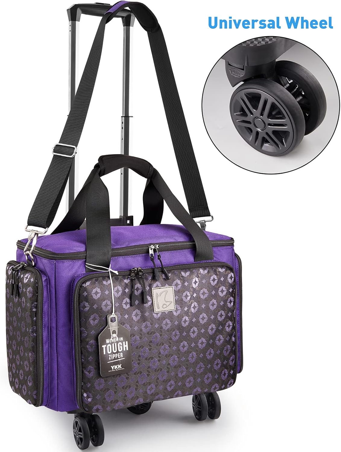 Rolling Sewing Machine Bag with Universal wheels,Sewing Machine Carrying Case with YKK zipers, Compatible most Standard Brother, Singer, Bernina, Sewing Machines (purple)