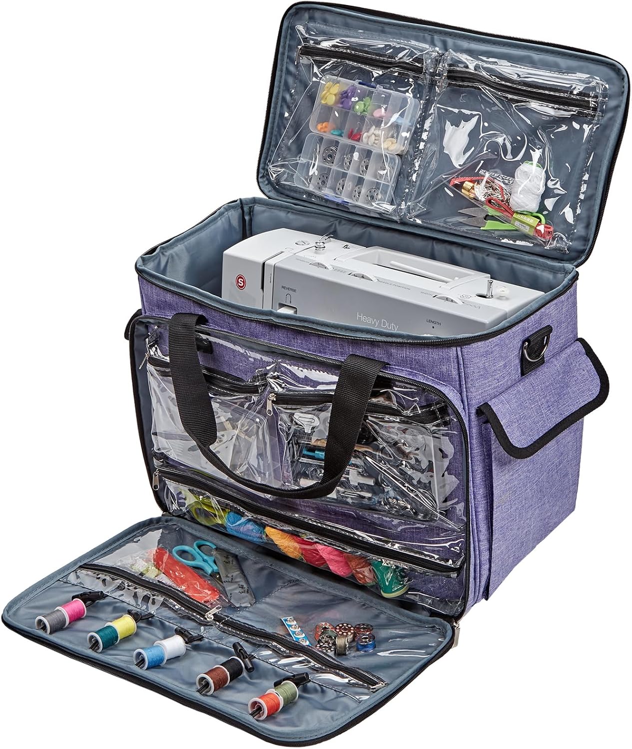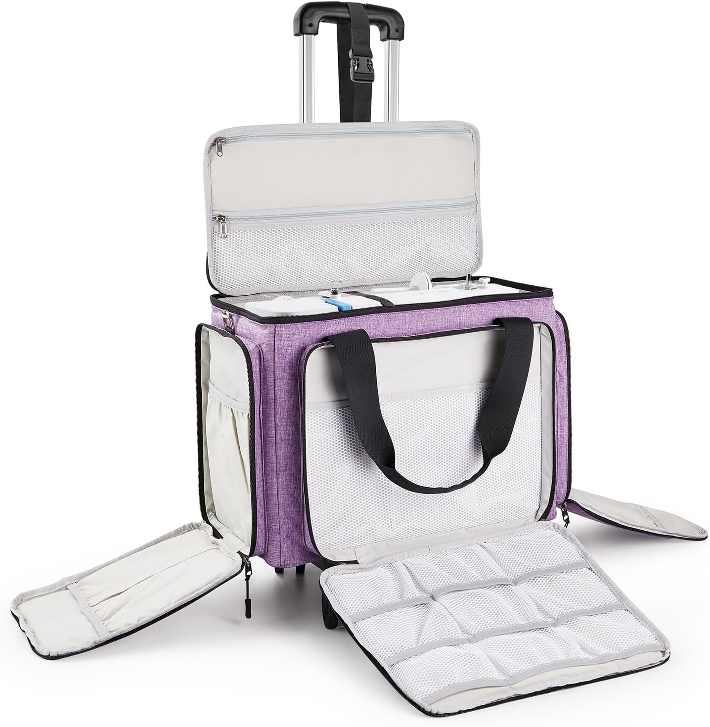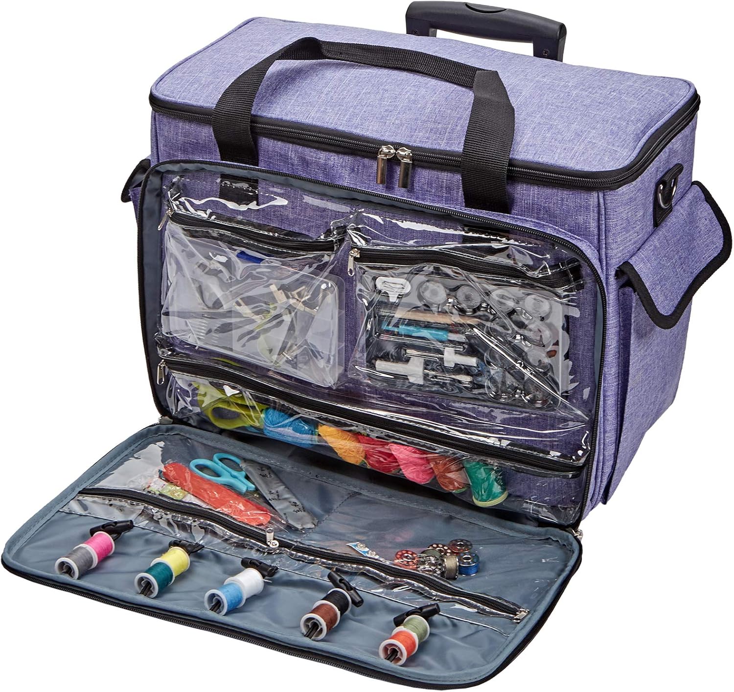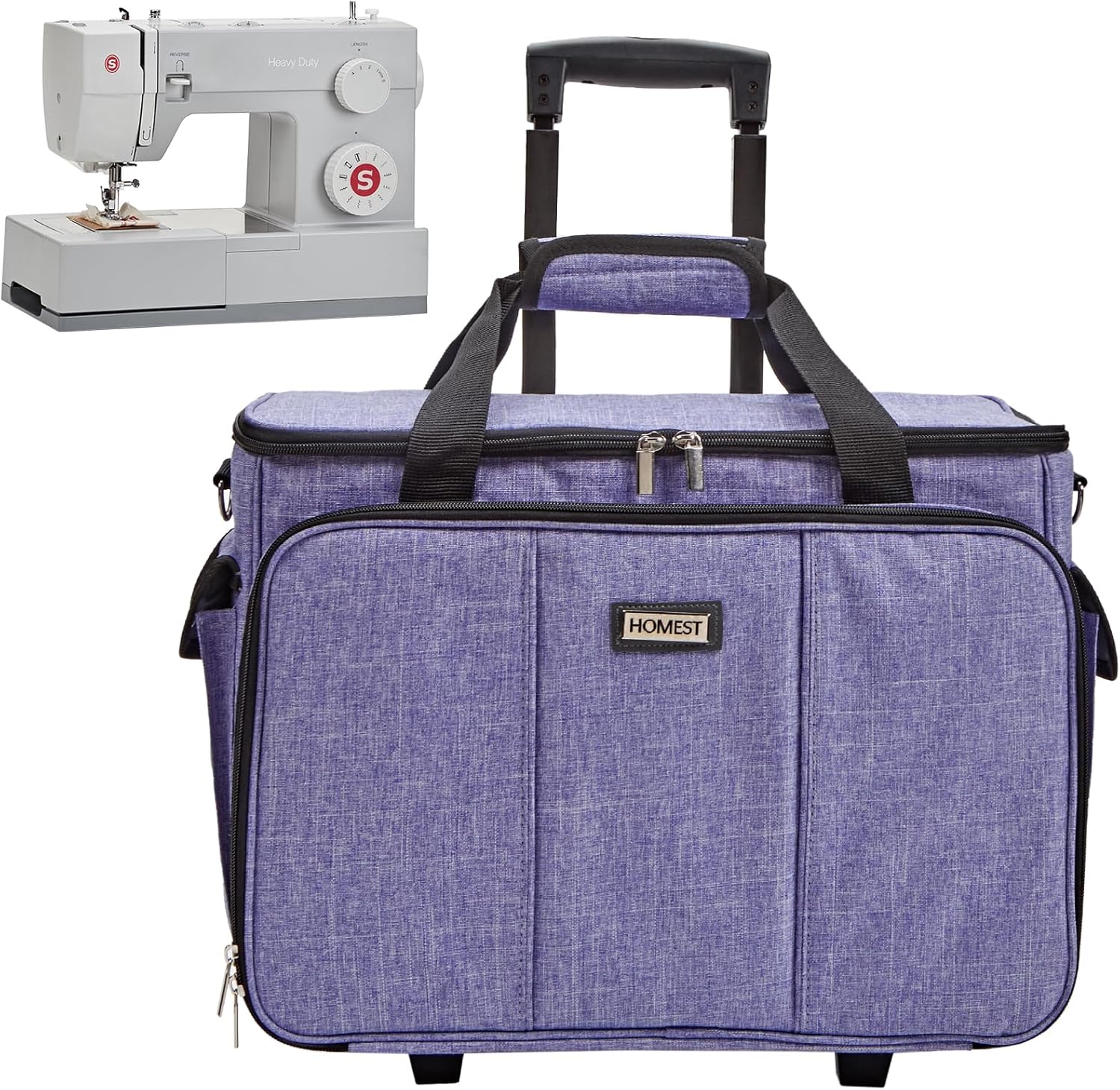 Rolling Sewing Machine Bag with Universal wheels,Sewing Machine Carrying Case with YKK zipers, Compatible most Standard Brother, Singer, Bernina, Sewing Machines (purple)