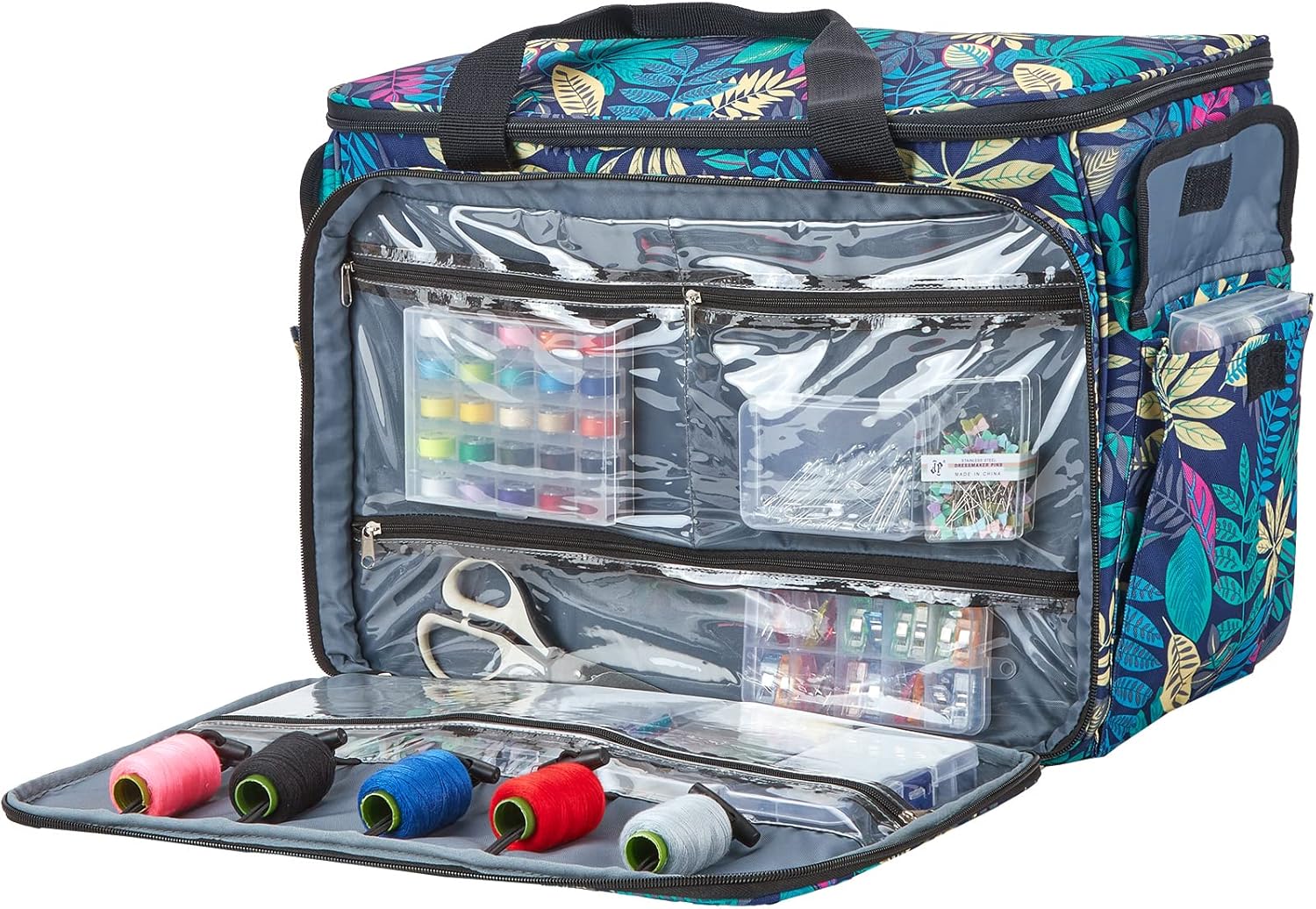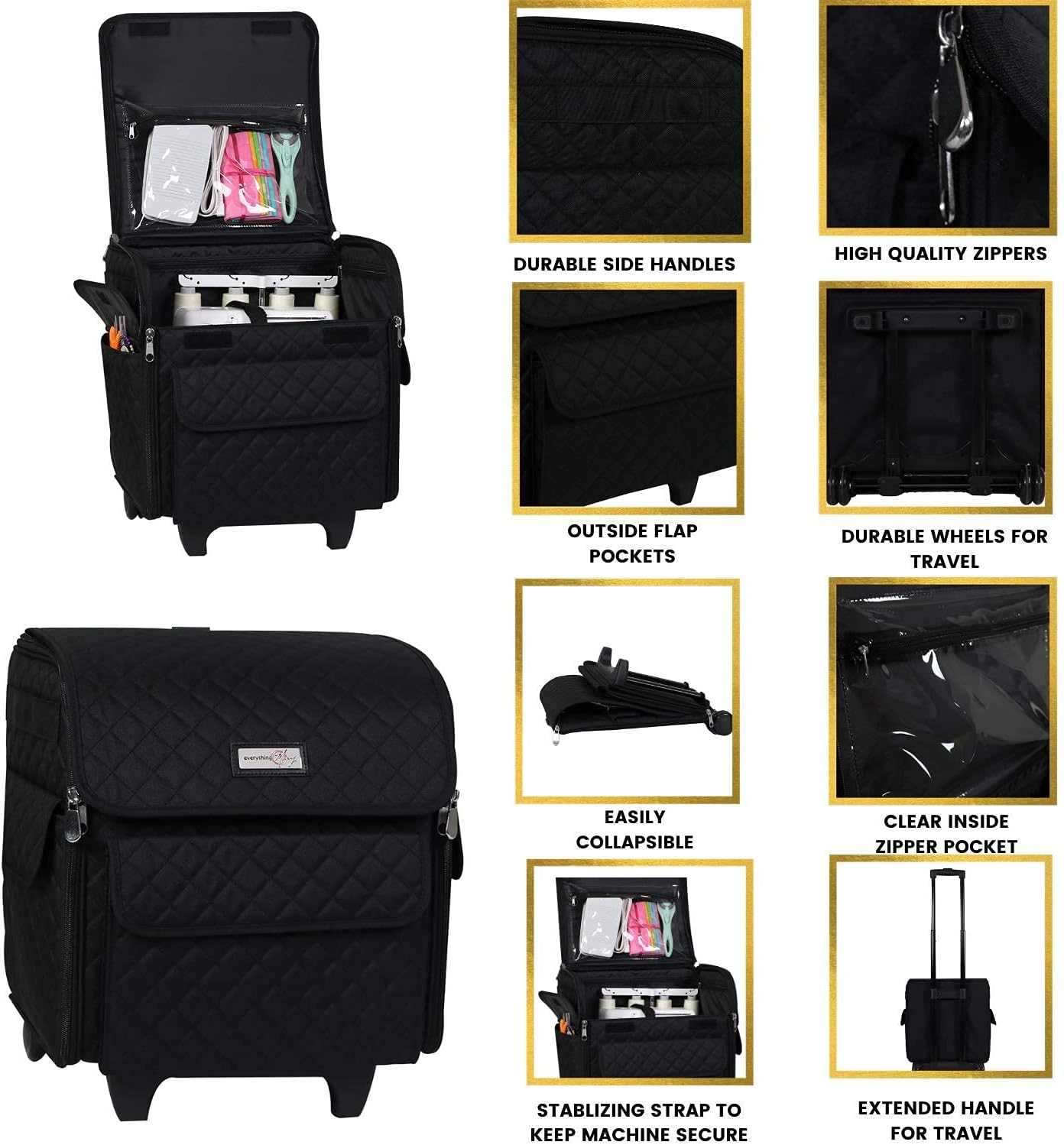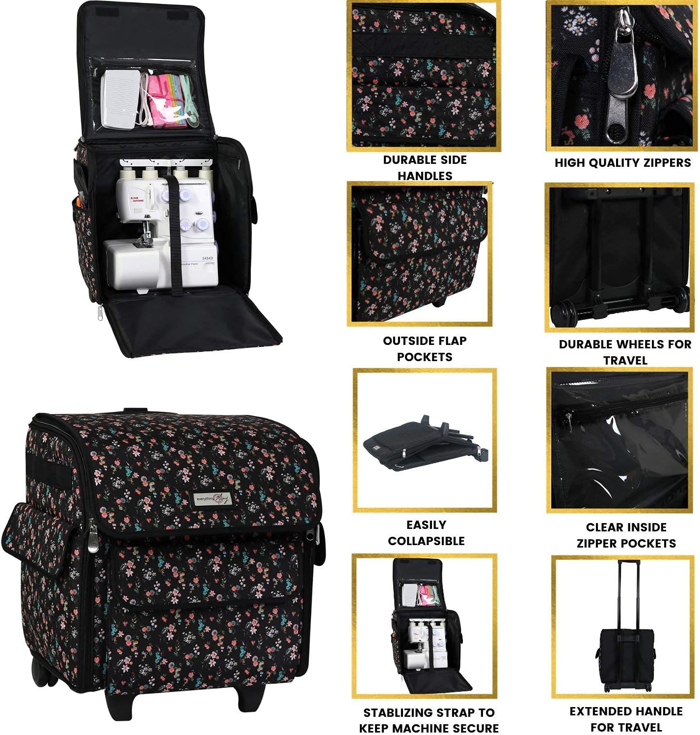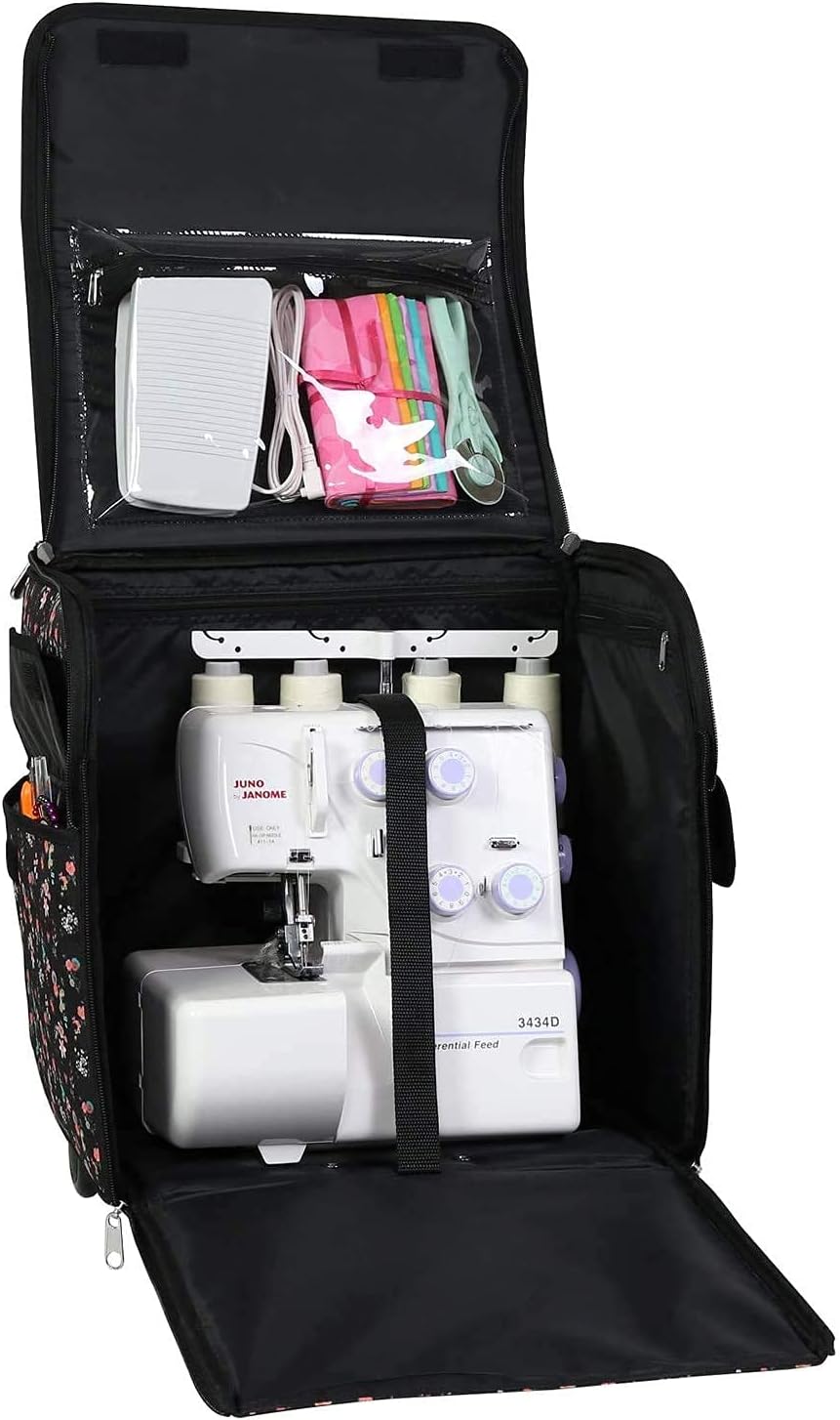Everything Mary Rolling Serger Machine Tote – Black Floral Carrying Case for Overlock Machines – Compatible with Brother, Singer & Juki – Sewing Thread & Supplies Organizer