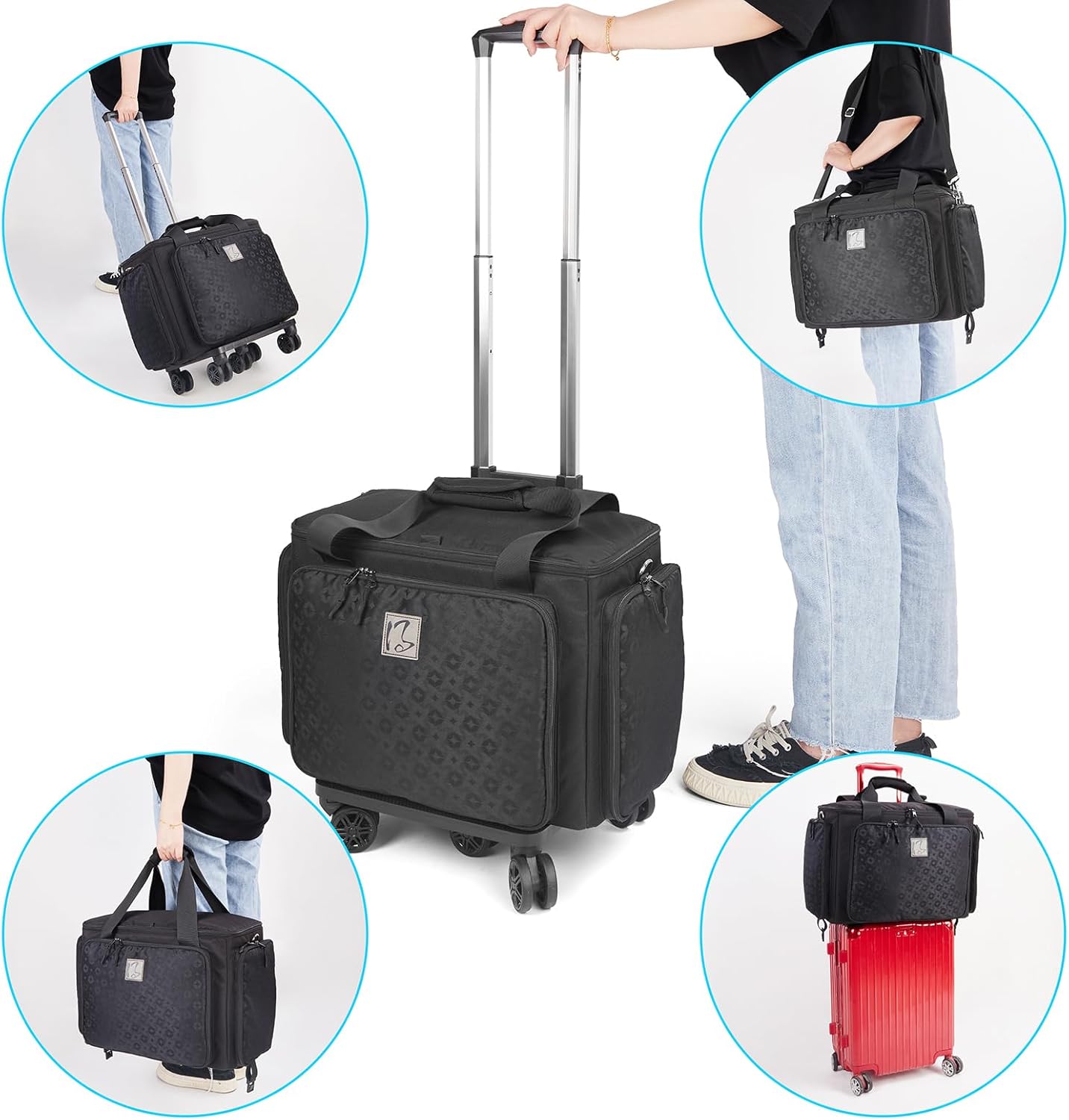 Rolling Sewing Machine Bag with Universal wheels,Sewing Machine Carrying Case with YKK zipers, Compatible most Standard Brother, Singer, Bernina, Sewing Machines (black)