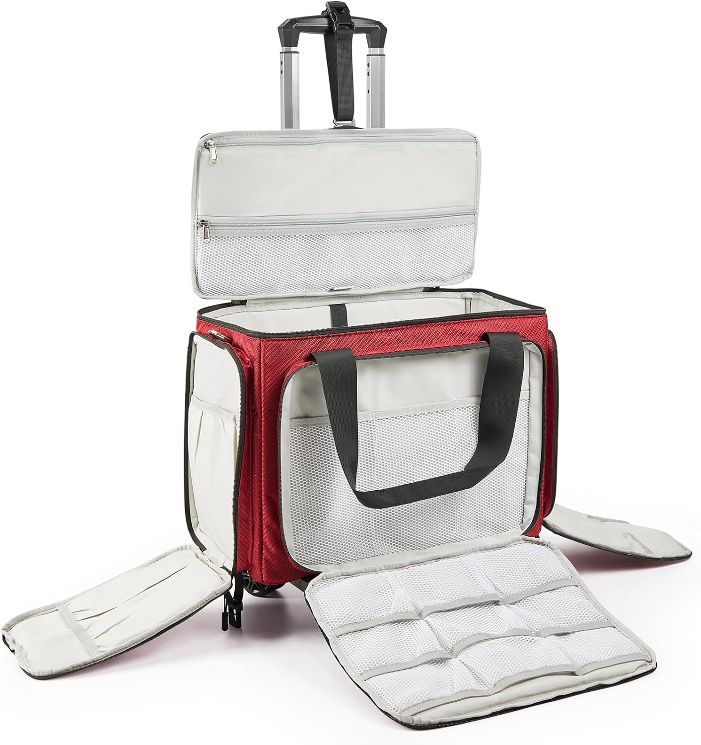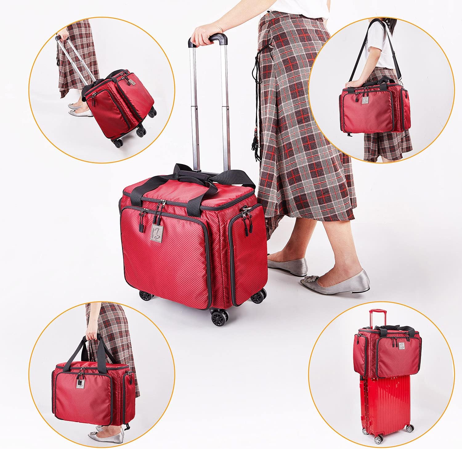 Rolling Sewing Machine Bag with Universal wheels,Sewing Machine Carrying Case with YKK zipers, Compatible most Standard Brother, Singer, Bernina, Sewing Machines(red)