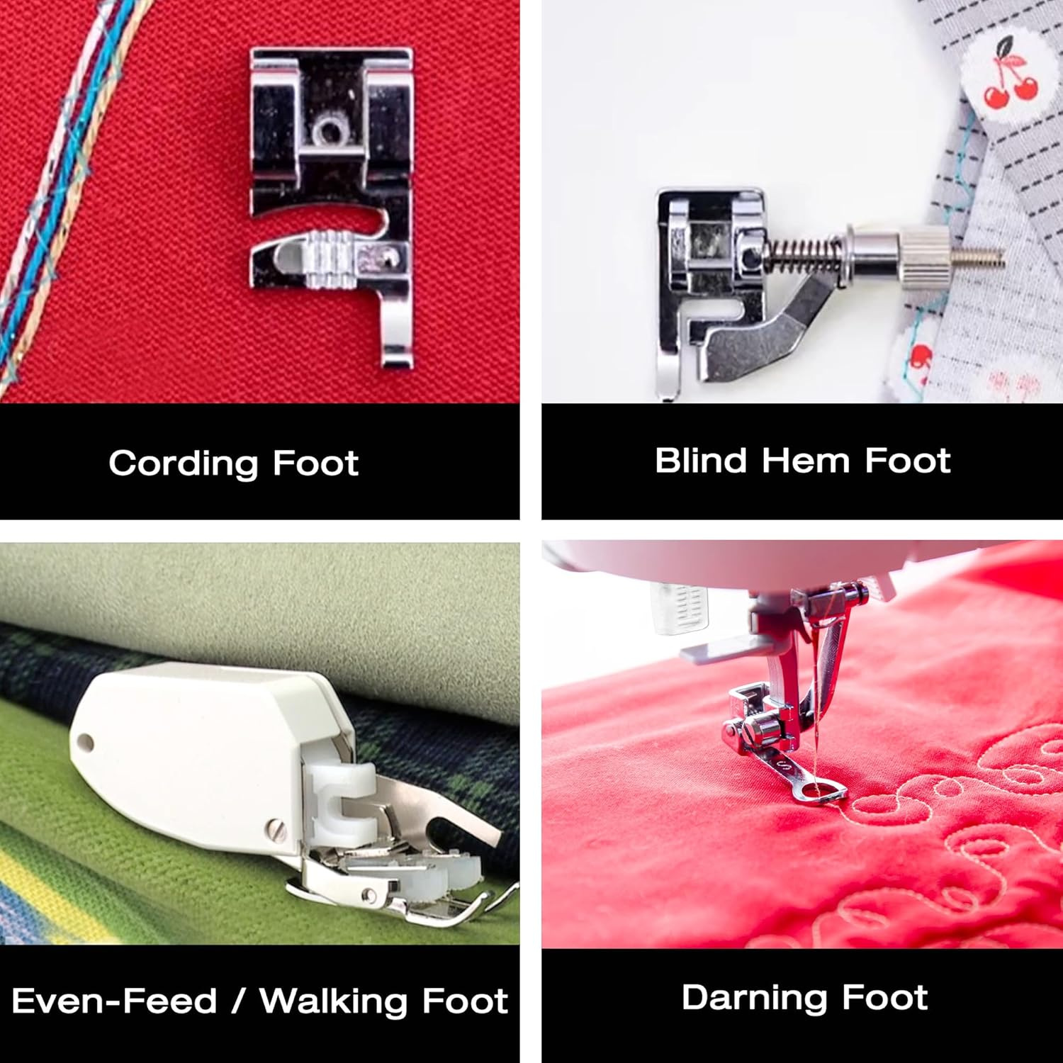 SINGER 9 Presser Feet Sewing Machine Accessory Kit Set Suitable for Household Multi-Function Sewing Machines with Twin Needle, Clear Durable Storage Case for Quilting, Mending, Patchwork