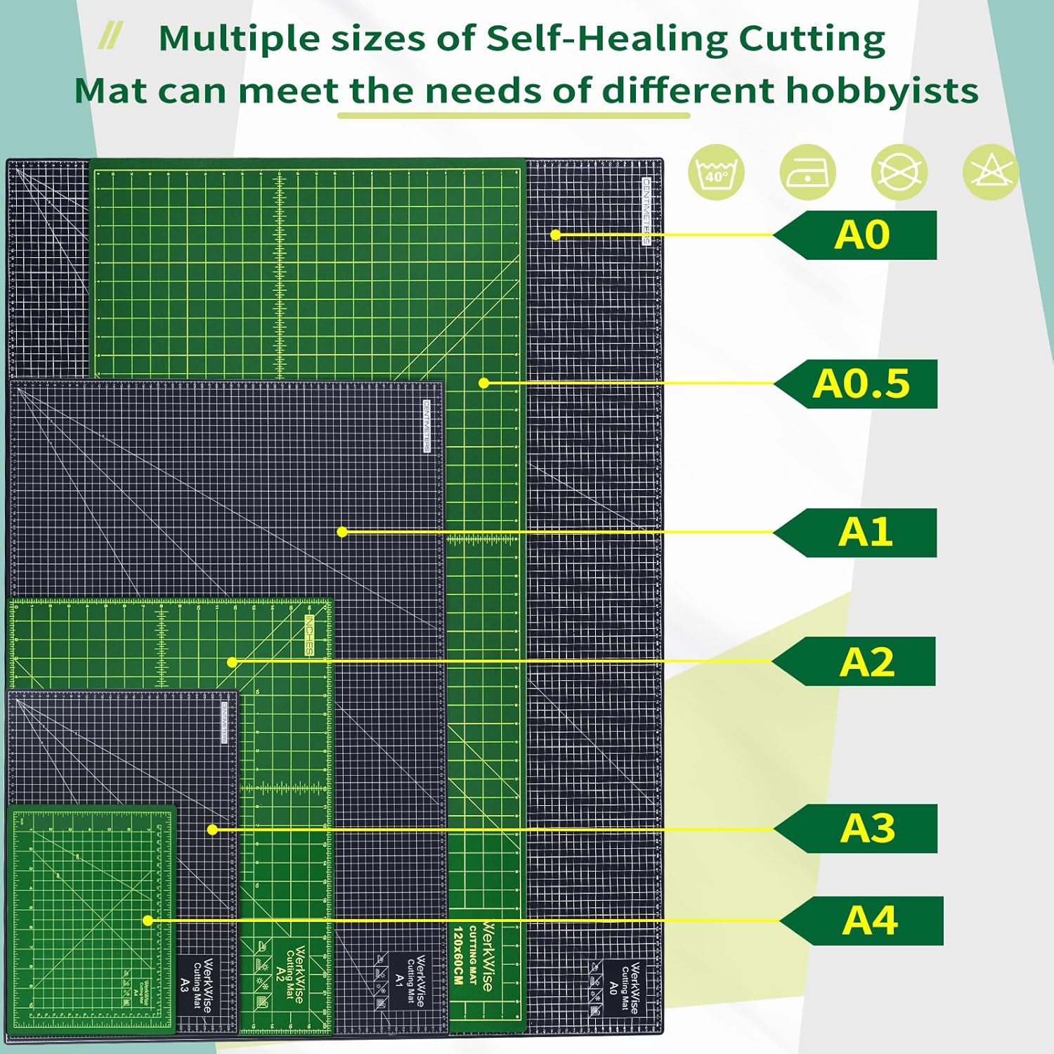 Extra Large 36" x 48" Self Healing Sewing Mat, WerkWise Rotary Cutting Mat, Double Sided 5-Ply 36x48 Inch Board for Quilting, Fabric, & Crafts, Designed for Use with Rotary Cutters (Green & Black)