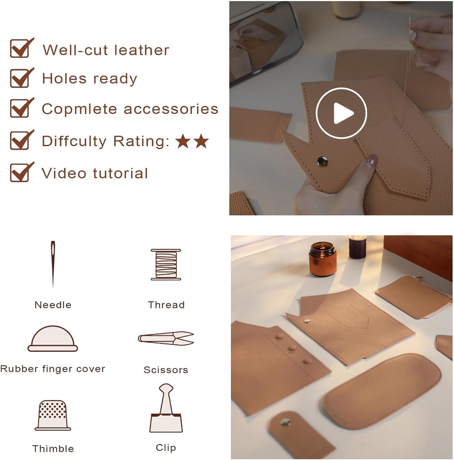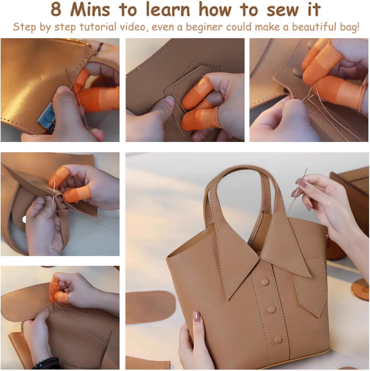 POPSEWING Leather Collar Handbag DIY Kit, DIY Crossbody Shoulder Bag with Sewing Kits, Handmade Bag Kit for Mom Girlfriend Birthday Gift (Brown)