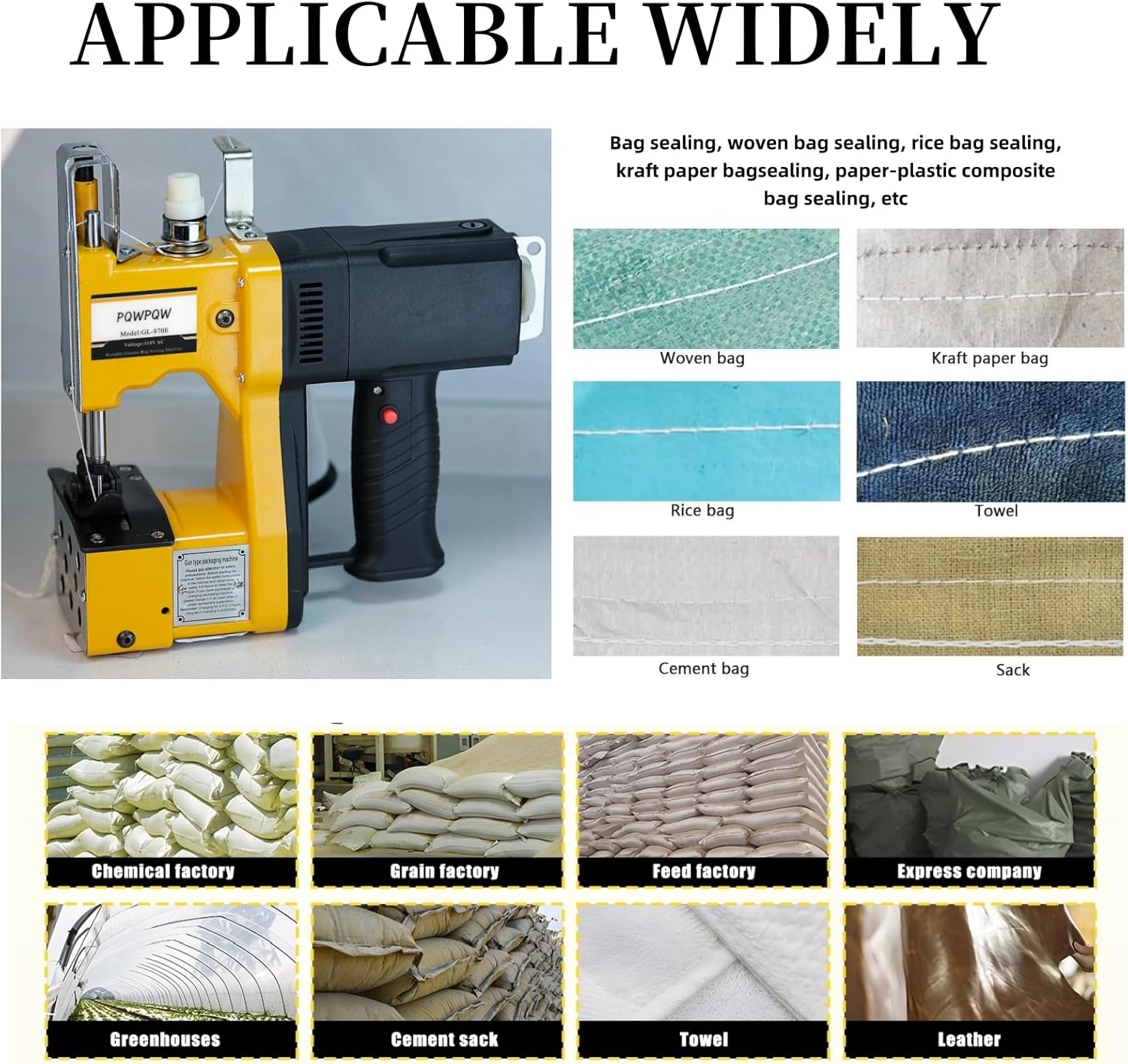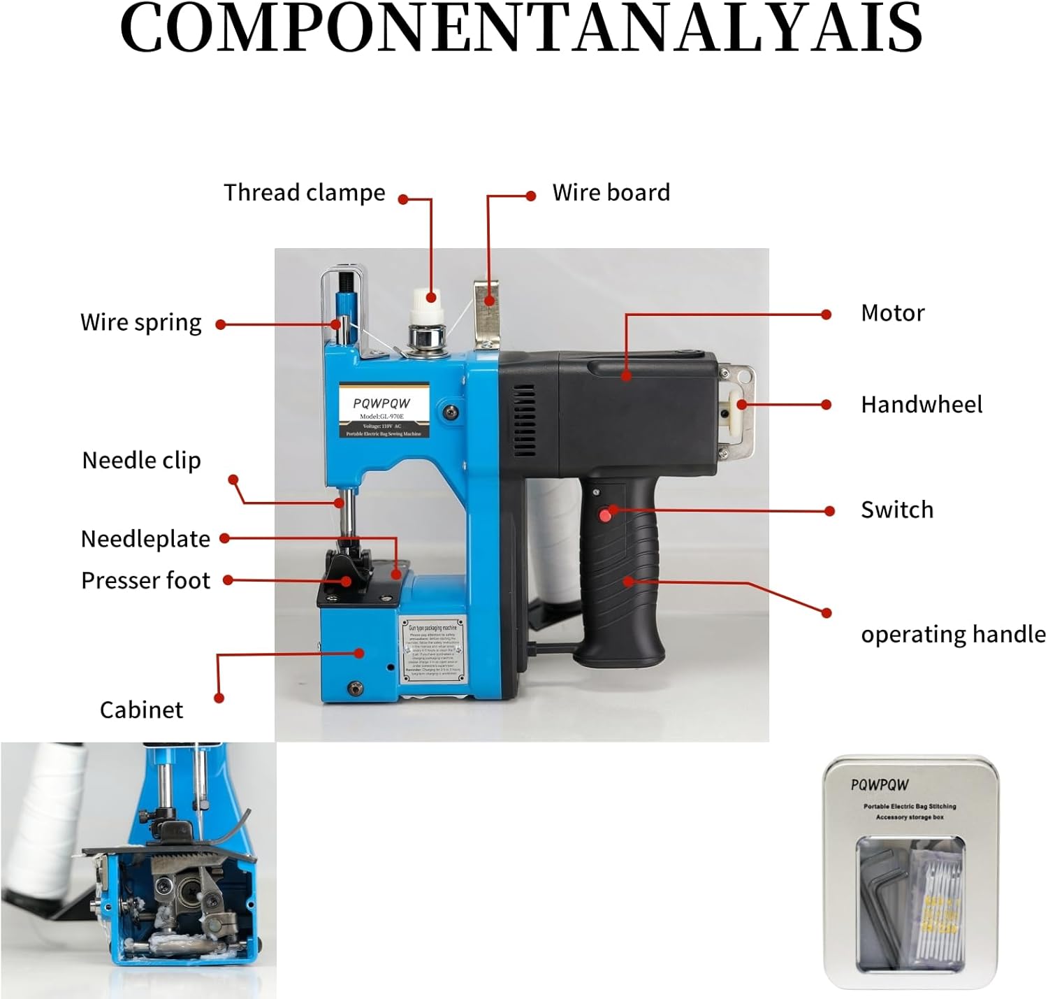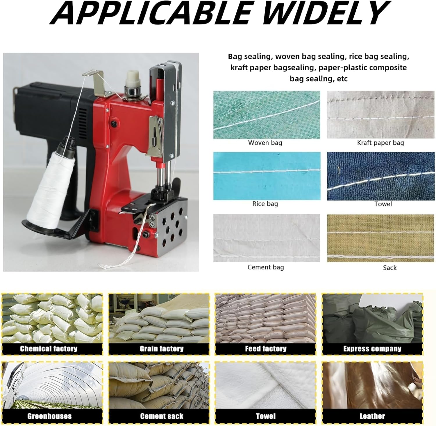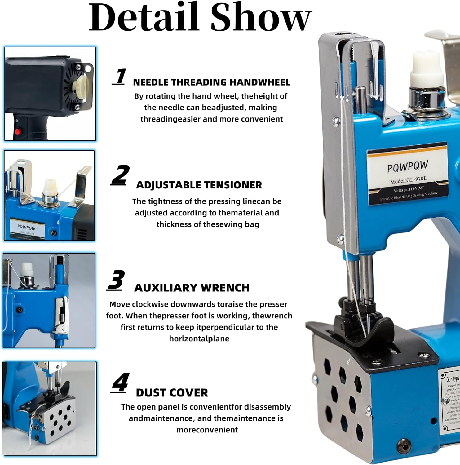 Portable Electric Sewing Machine, Leather Canvas Sewing Machine Industrial Bag Stitching Closer 110V Stitching Tool for Chemical Industry Clothing Chemical Home Textile