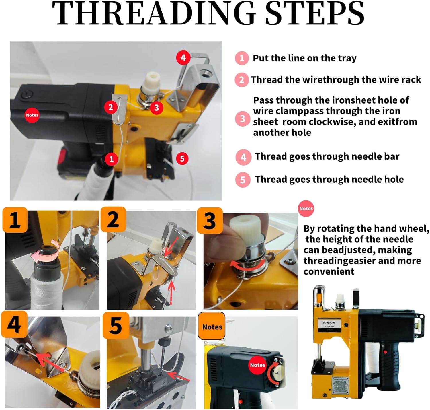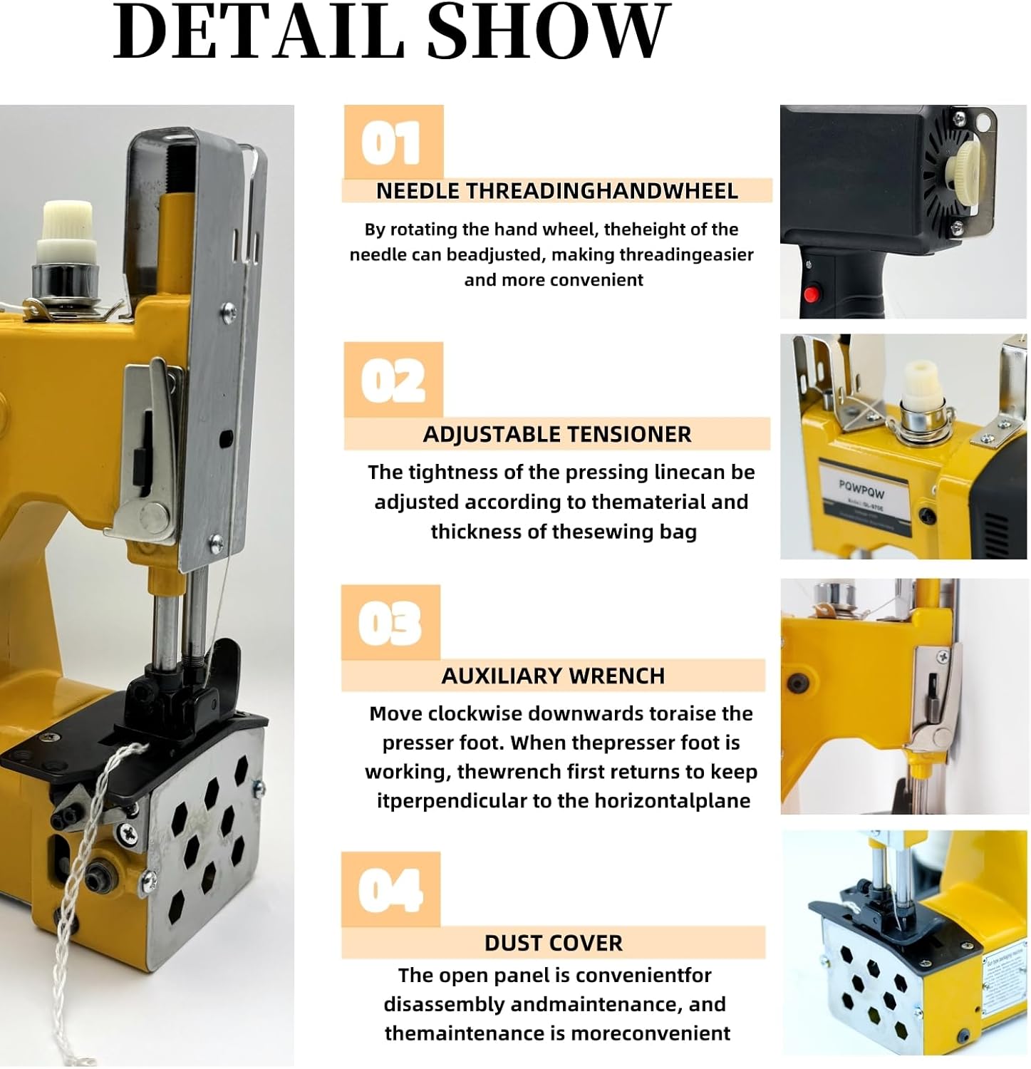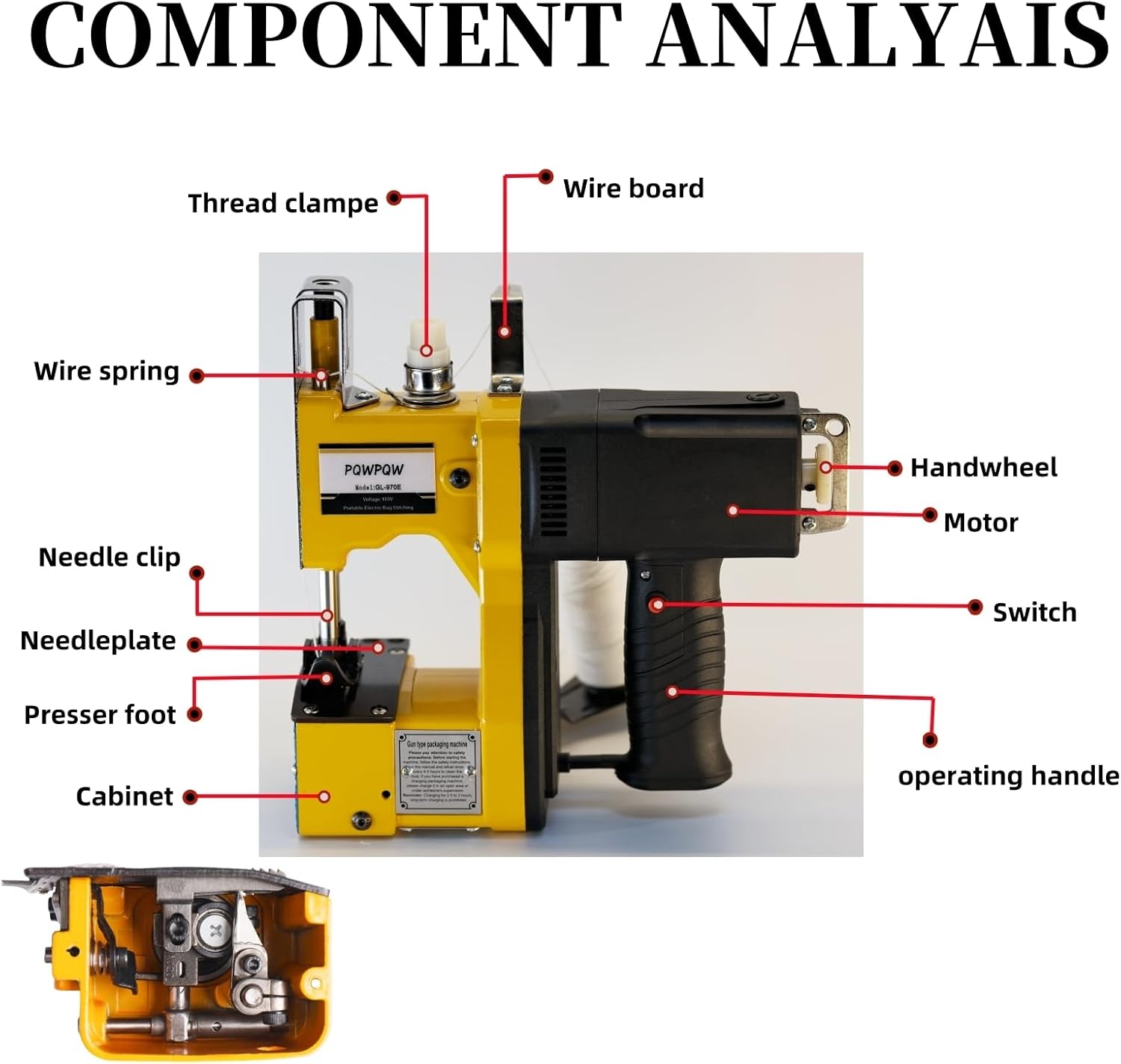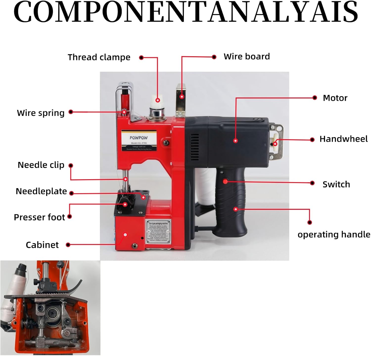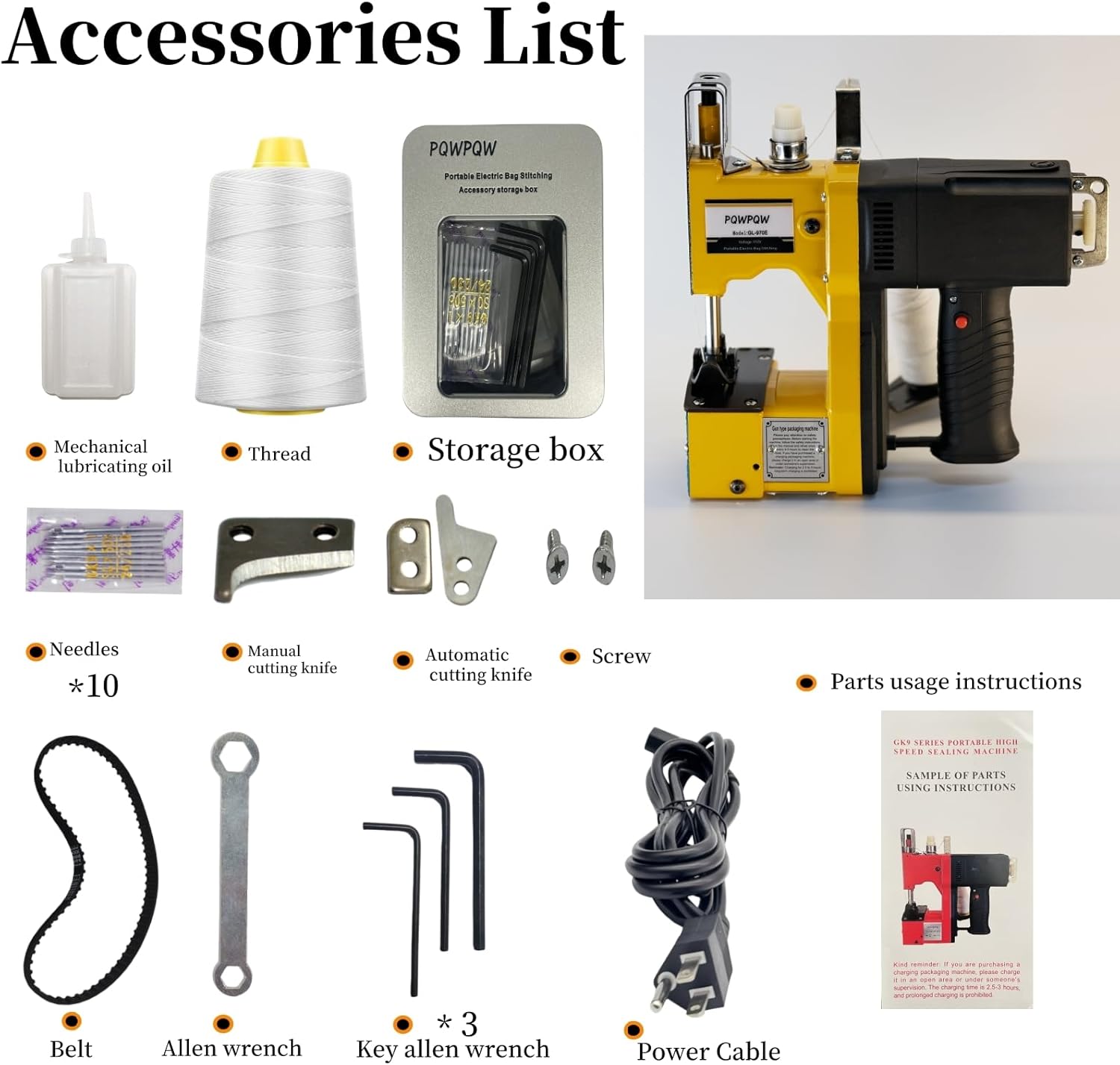 Portable Electric Sewing Machine, Leather Canvas Sewing Machine Industrial Bag Stitching Closer 110V Stitching Tool for Chemical Industry Clothing Chemical Home Textile