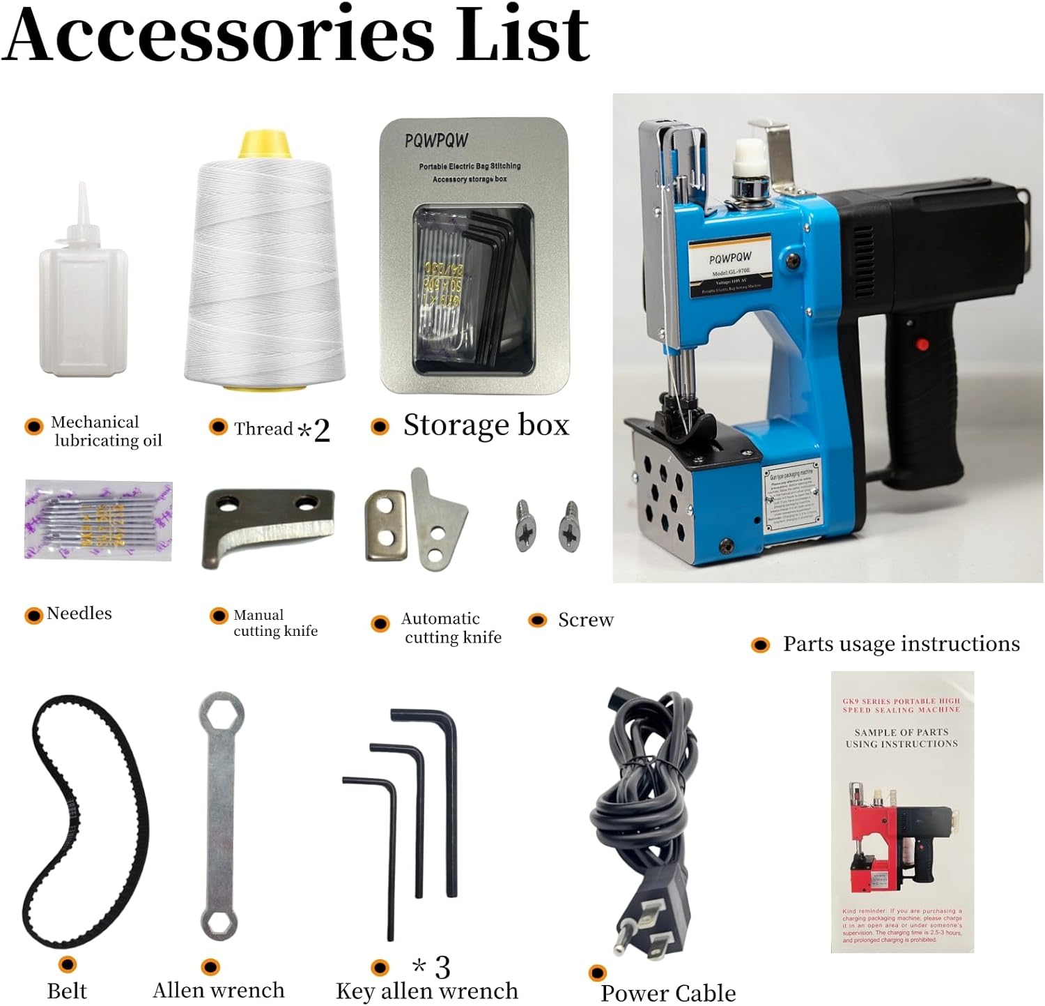 Bag Sewing Machine, 2s/bag Portable Bag Sewing Machine, Industrial Bag Closing Machine for Packing Woven Bags Non-woven Fabrics Leather (Blue, Corded - 110V)
