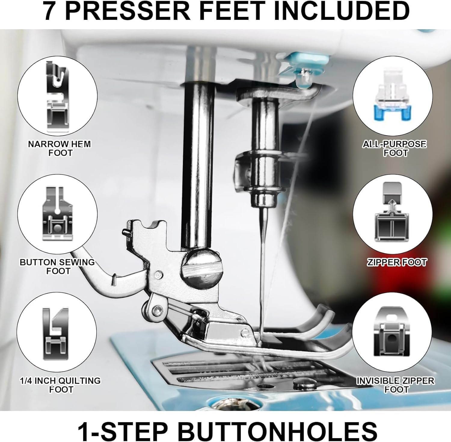 Sewing Machine for Beginners, Starter Sewing Machine For Adults, 505 New Upgraded Pro Starter Sewing Machines with Extension Table -7 Presser Feet, Foot Pedal