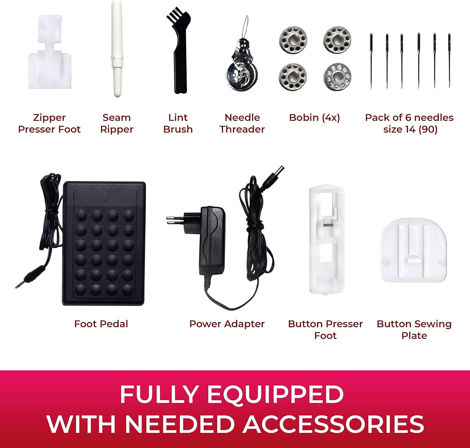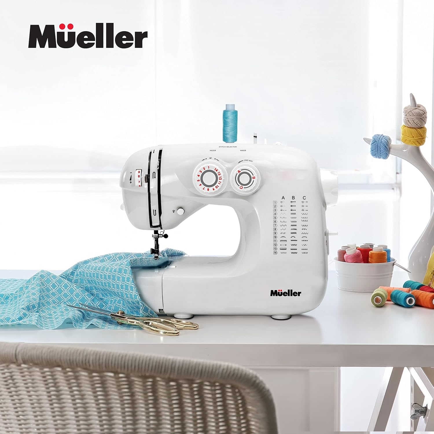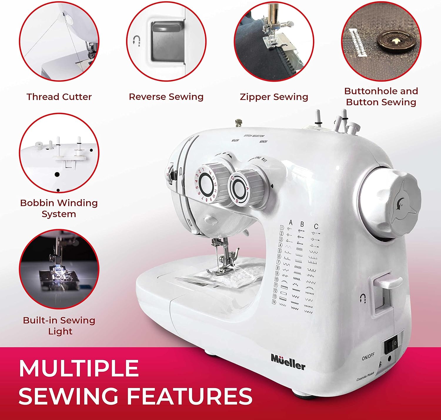 Mueller Machine For Sewing,110 Stitch Applications, Foot Pedal, LED Light, Buttonhole, Button & Zipper Sewing, User friendly, Thread Cutter and Removable Accessories Storage, White