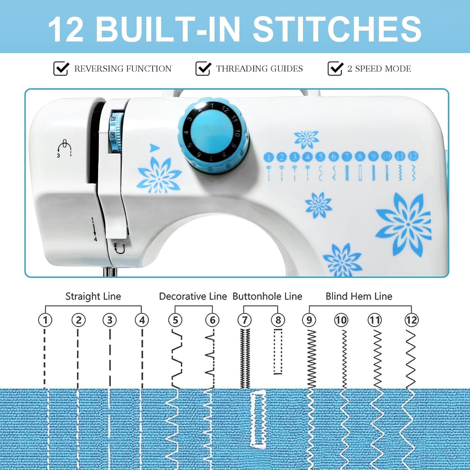 Mini Sewing Machine for Beginners – Portable 16 Built-In Stitches, Dual Speed, Double Needle – Compact Sewing Machine for Home Use,ldeal forAdults & Beginners