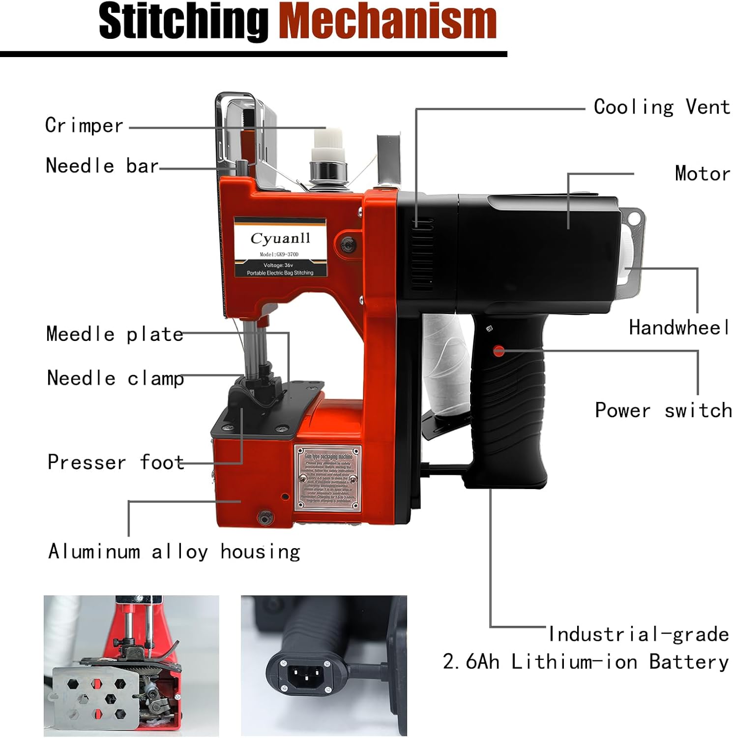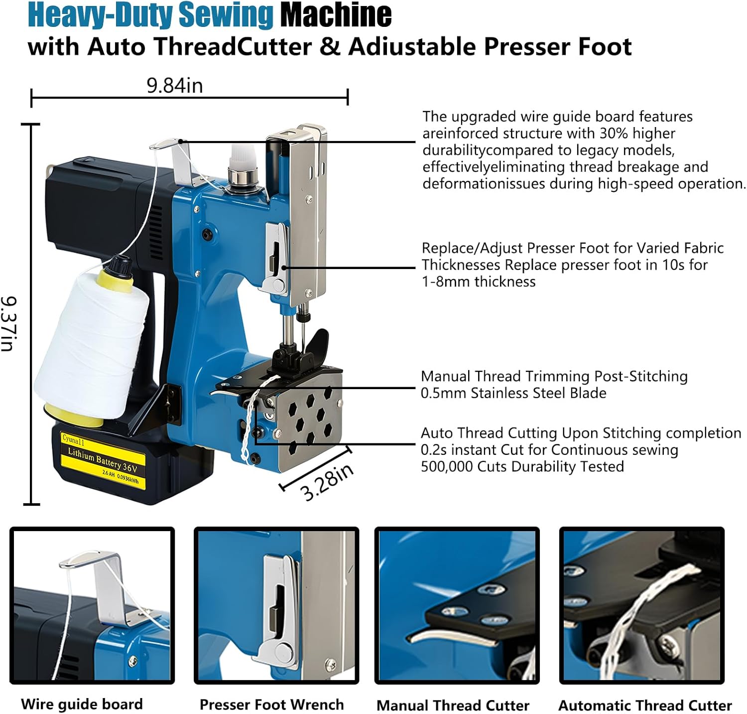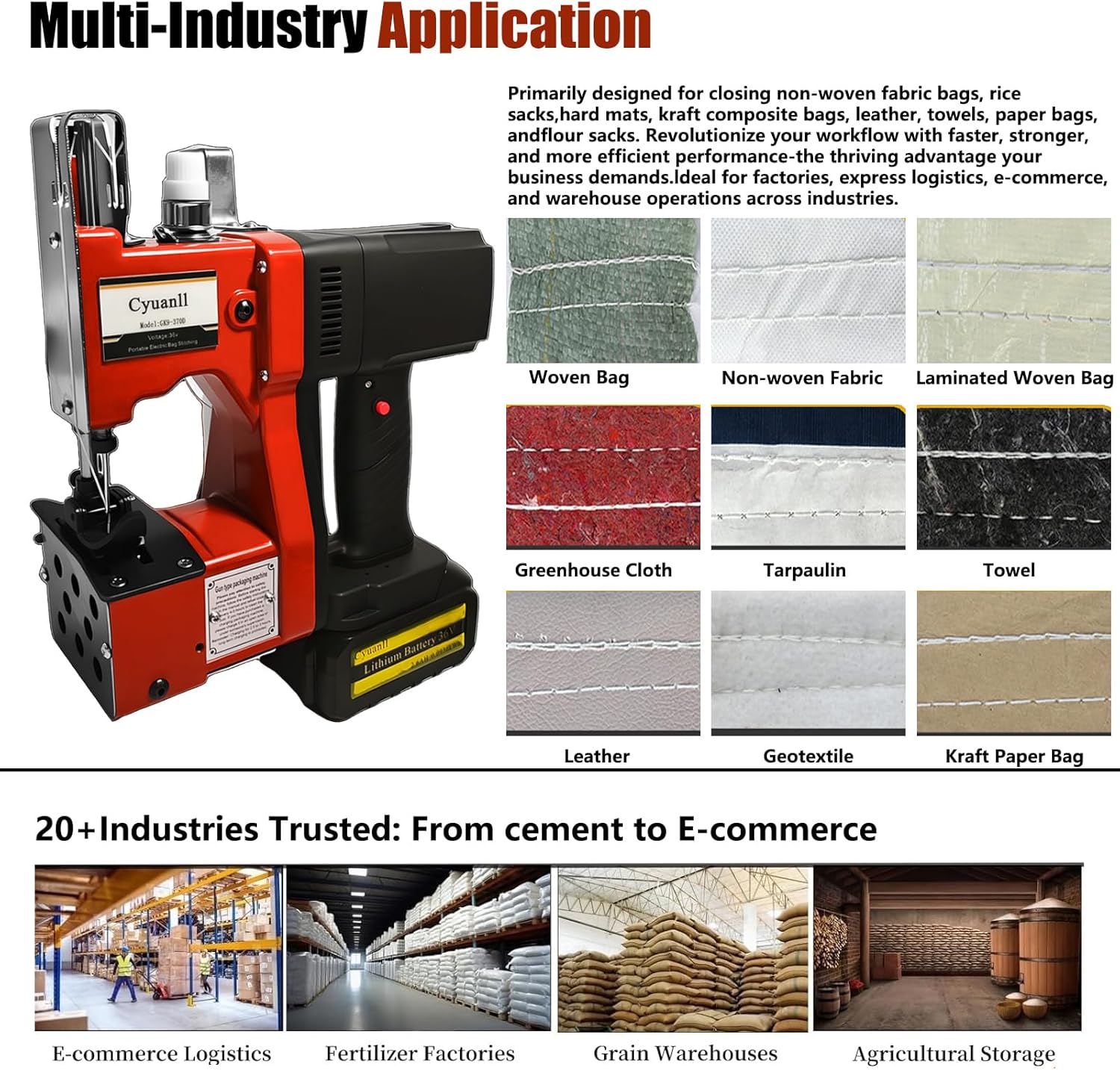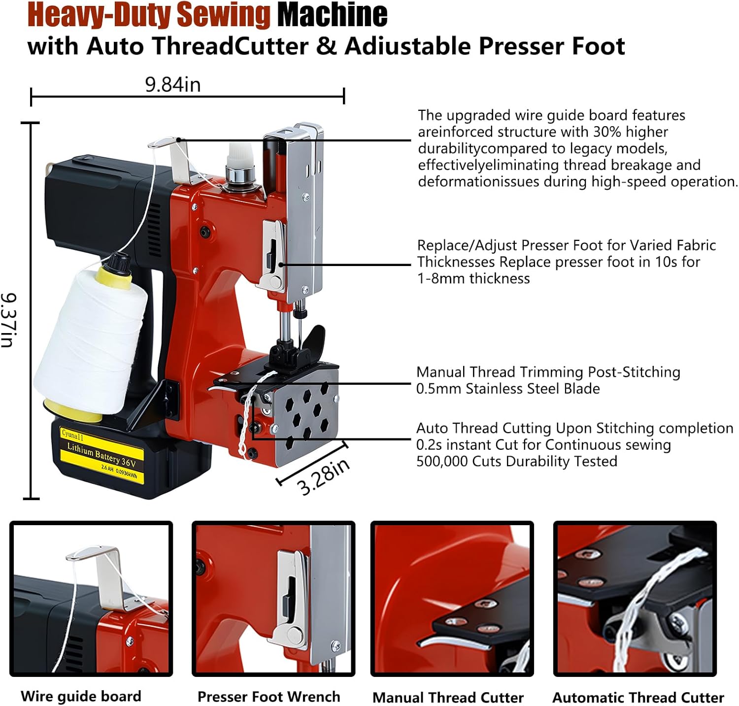 Cordless Bag Sewing Machine, Portable Bag Sewing Machine With Dust Cover And Adjustable Edge Remover,Heavy Duty Bag Closing Kits,3200 Stitches/Min For Burlap Bags Sand Bags Come With Thread
