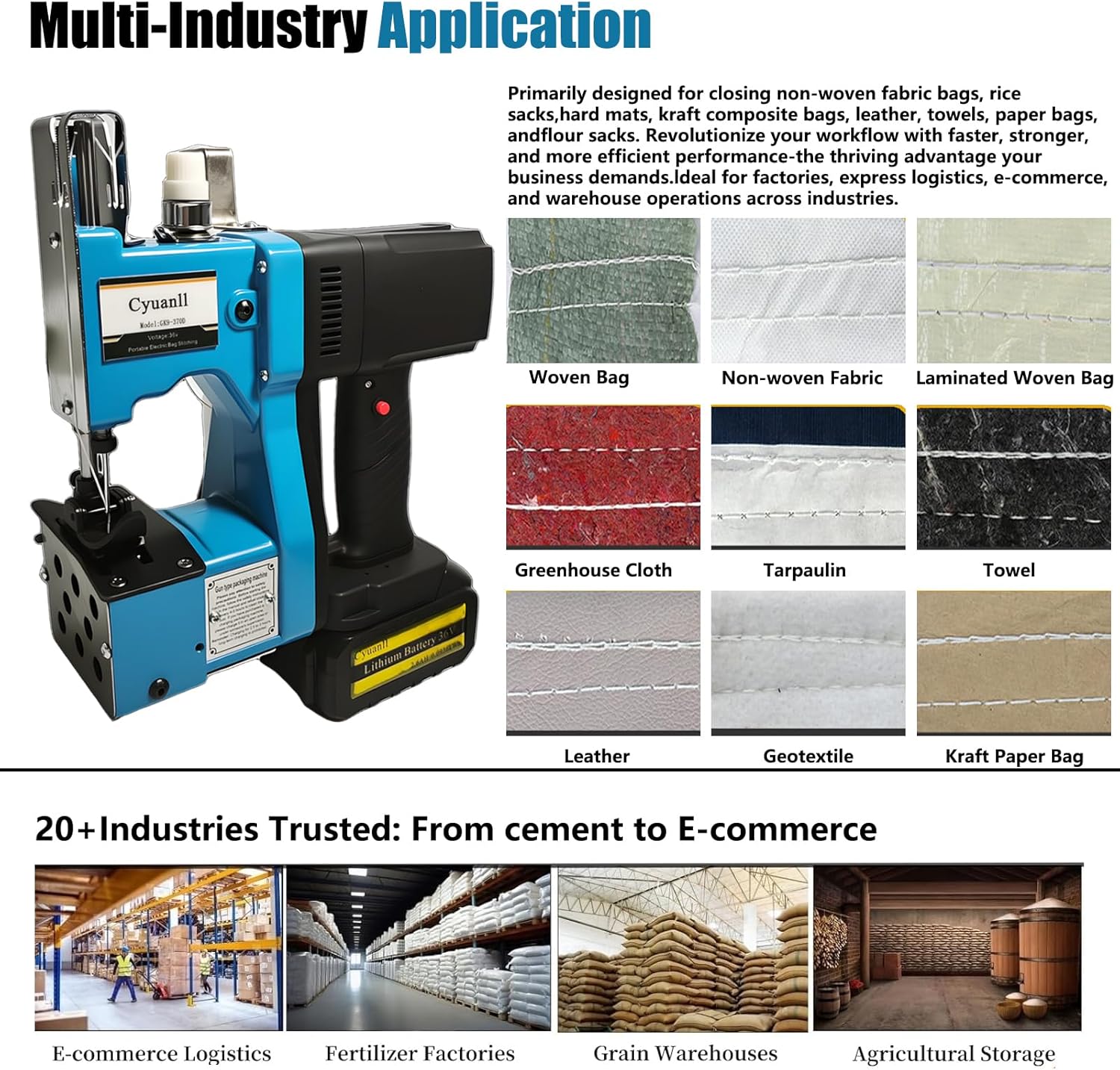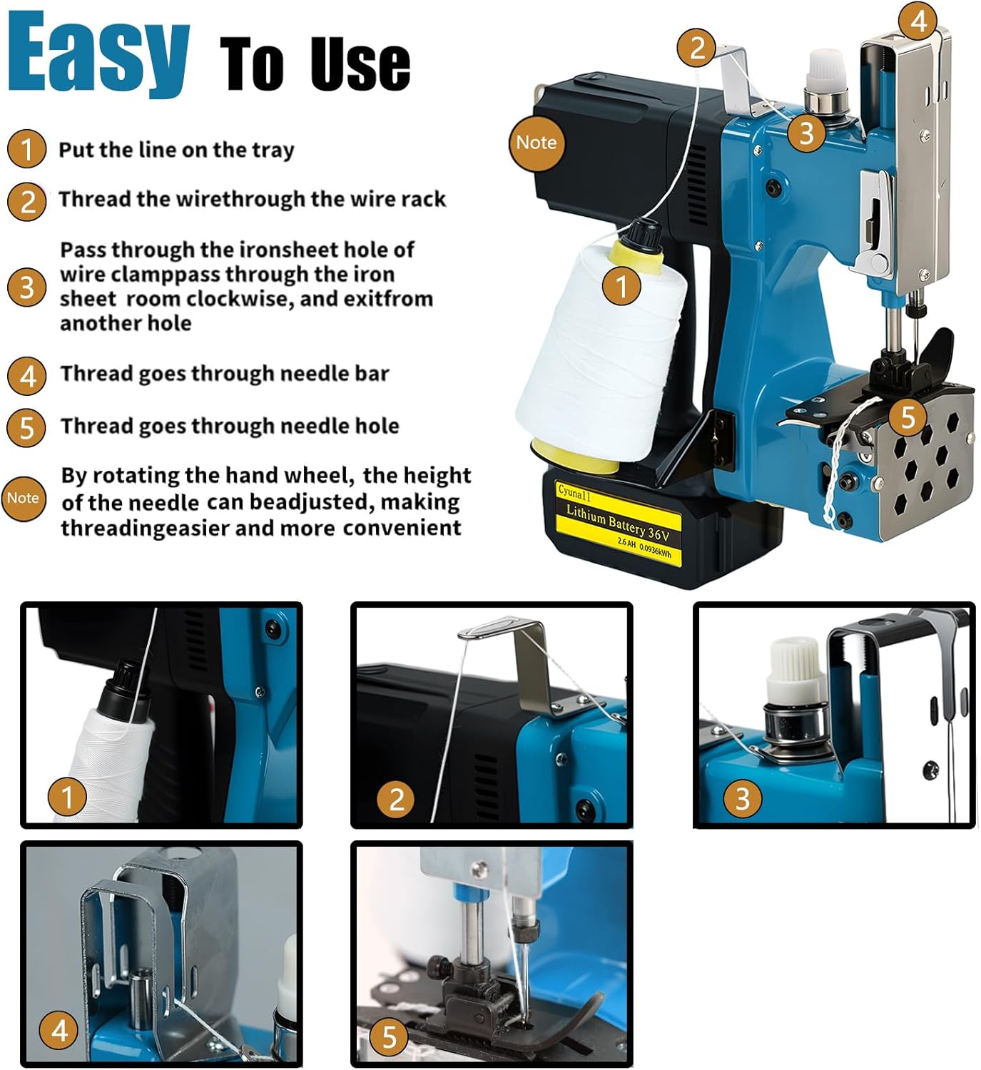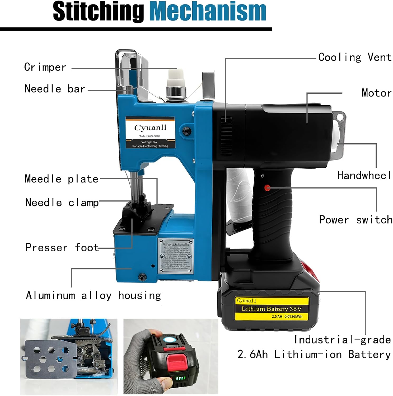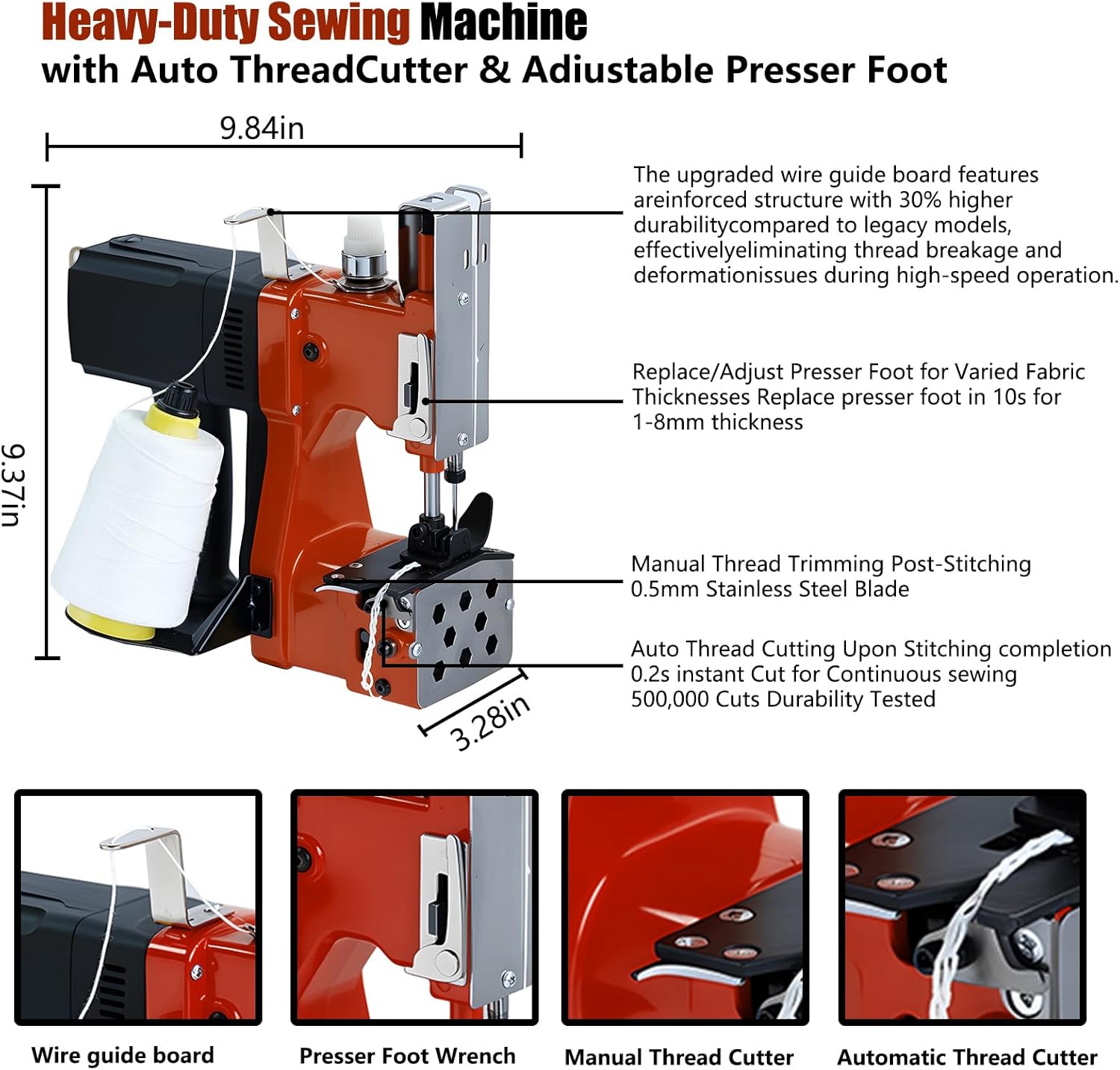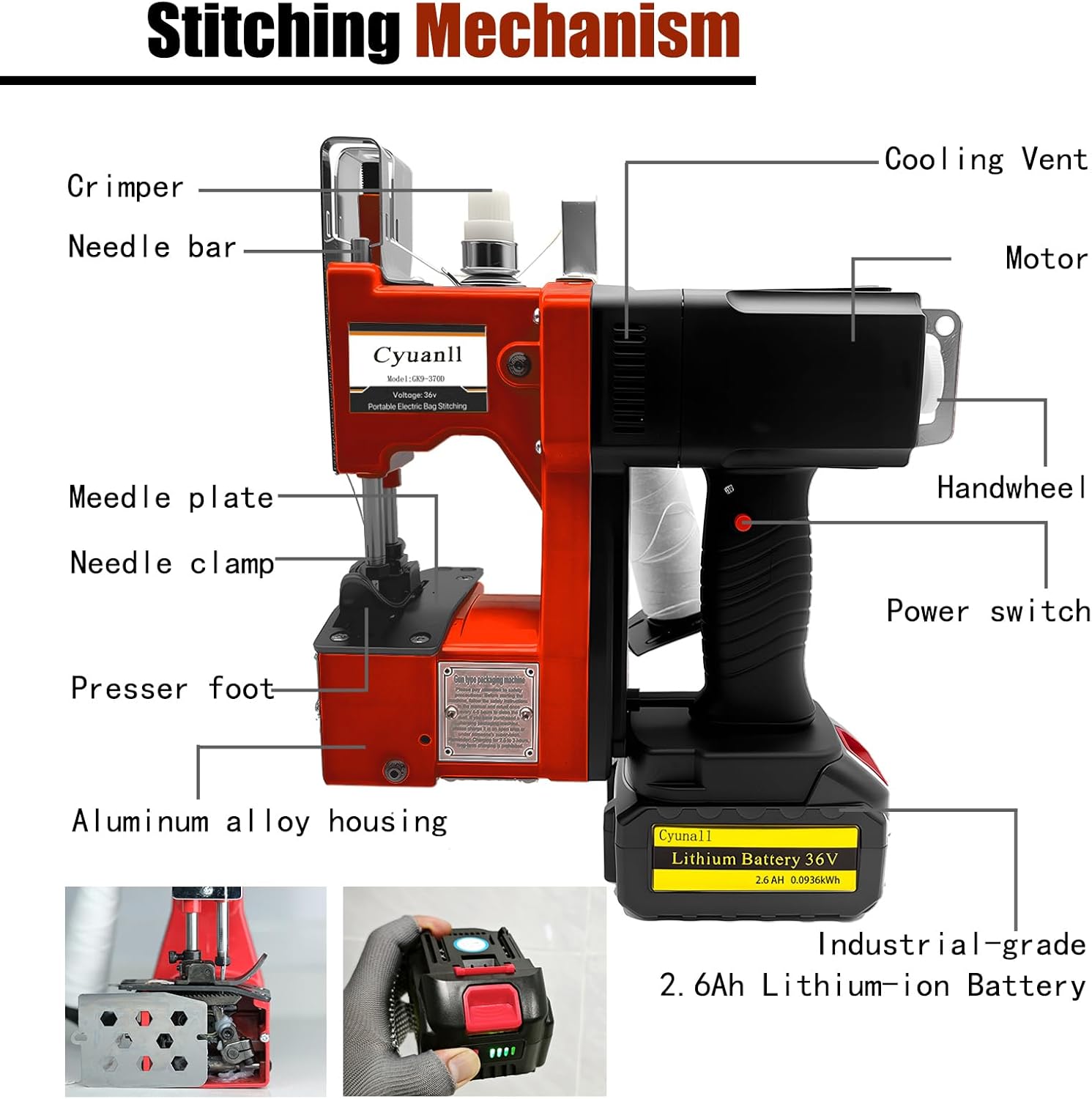 Cordless Bag Sewing Machine, Portable Bag Sewing Machine With Dust Cover And Adjustable Edge Remover,Heavy Duty Bag Closing Kits,3200 Stitches/Min For Burlap Bags Sand Bags Come With Thread