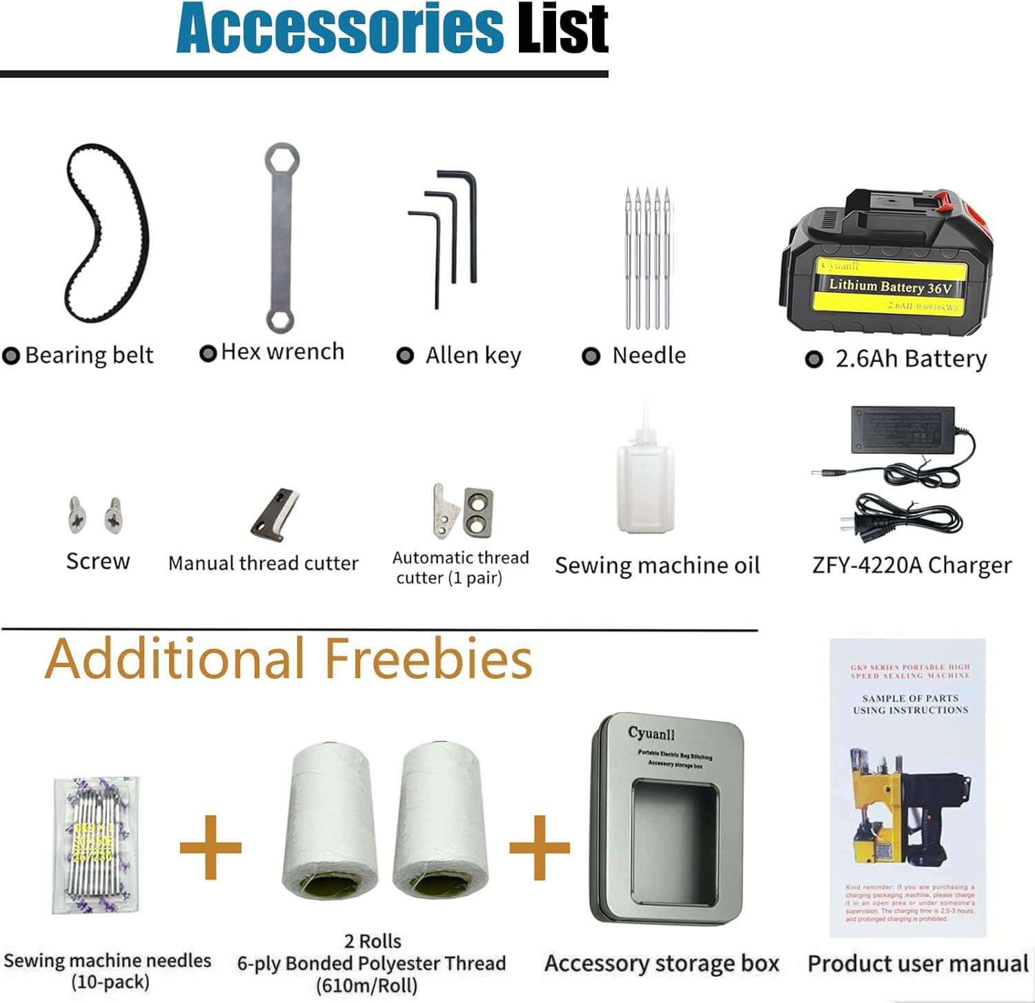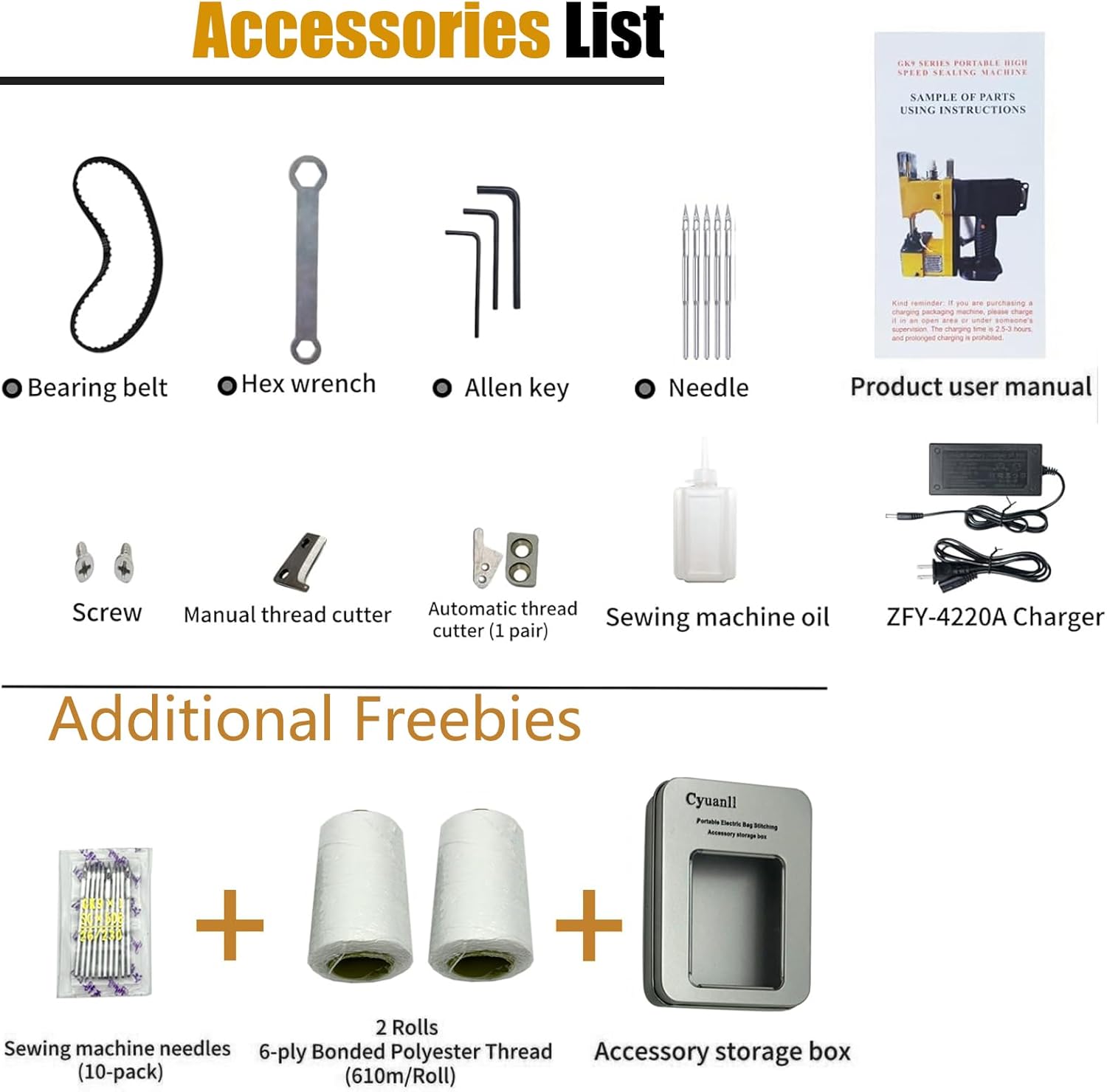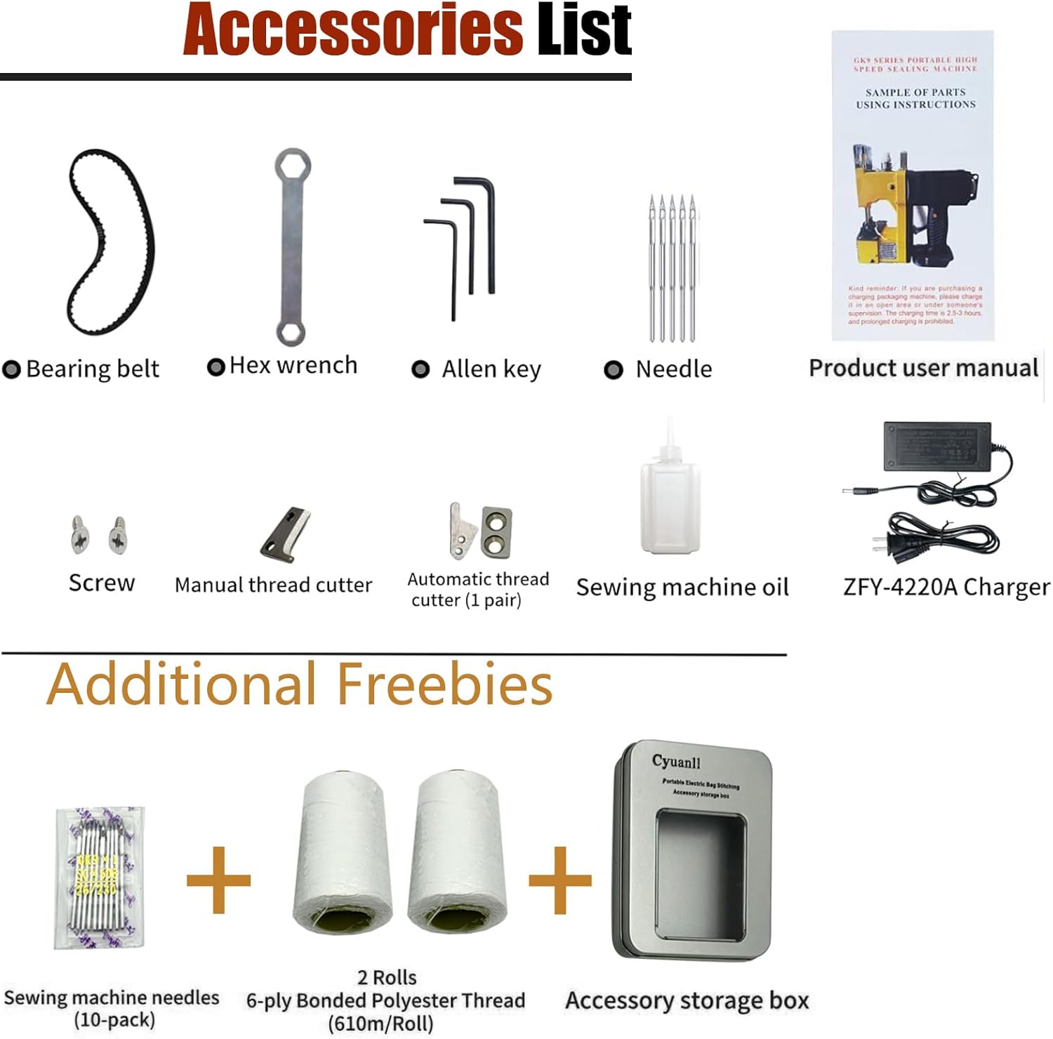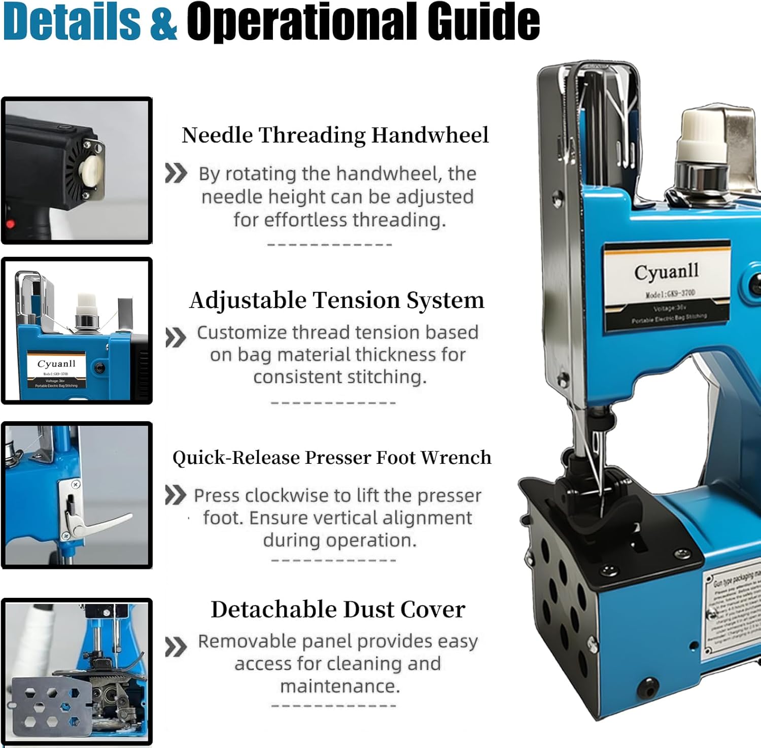 Cordless Bag Sewing Machine, Portable Bag Sewing Machine With Dust Cover And Adjustable Edge Remover,Heavy Duty Bag Closing Kits,3200 Stitches/Min For Burlap Bags Sand Bags Come With Thread