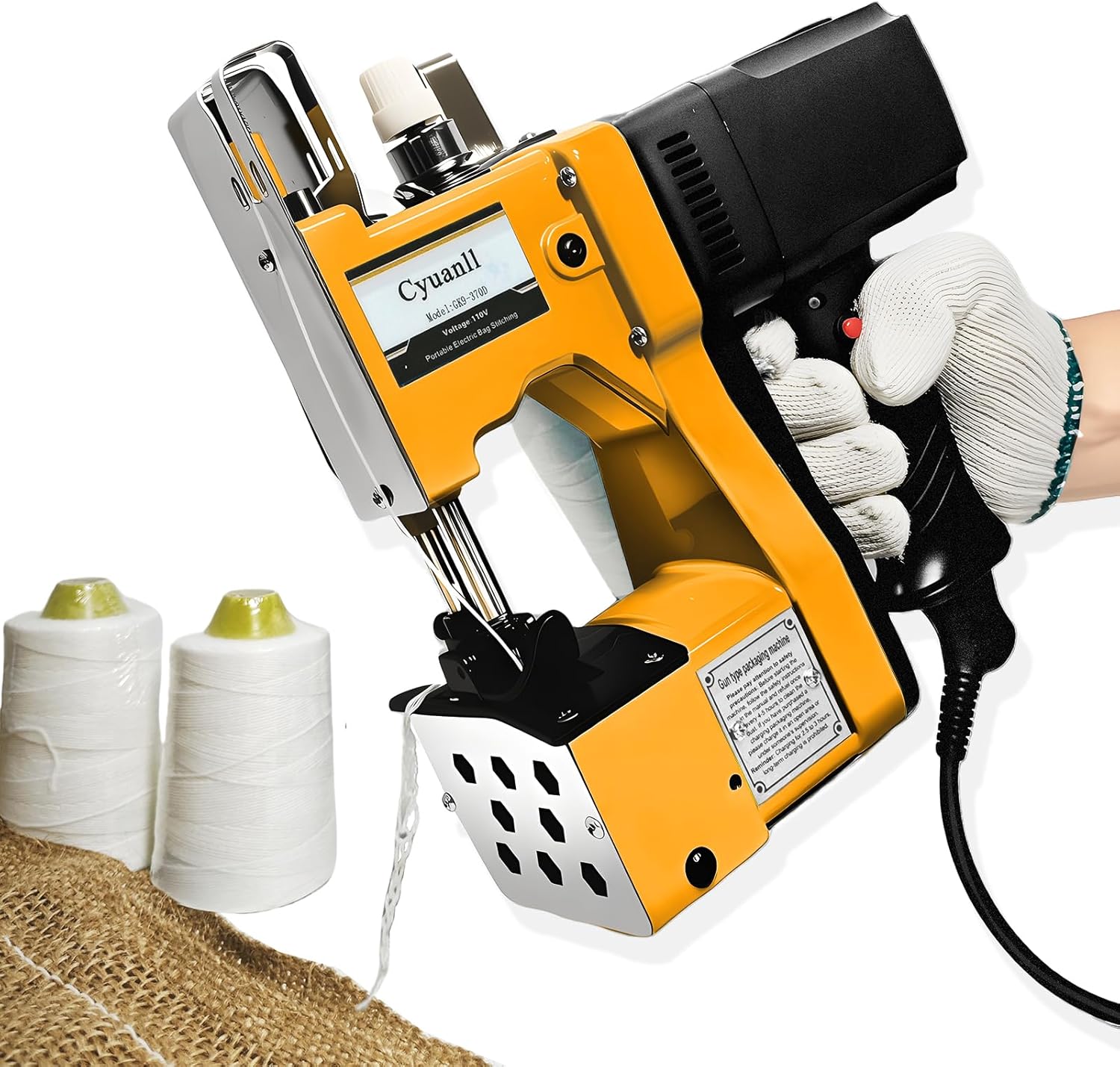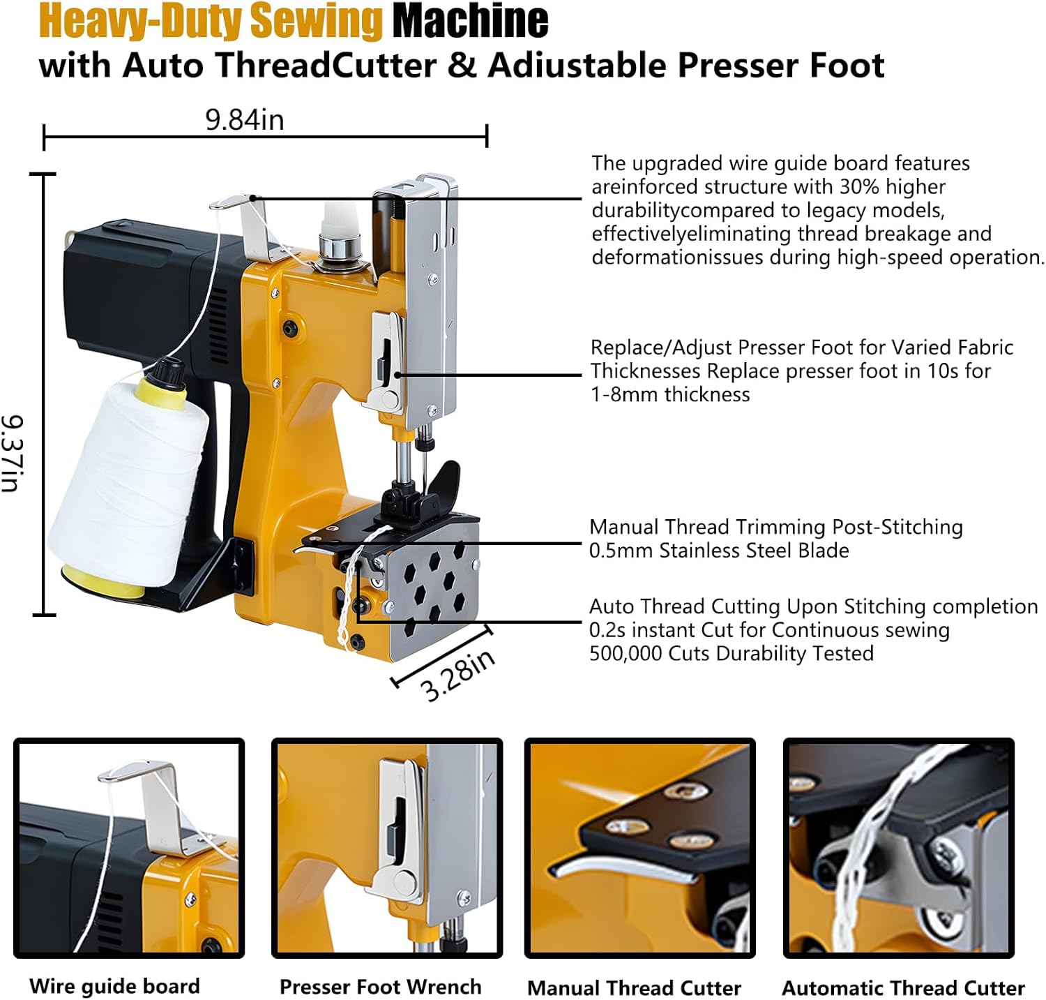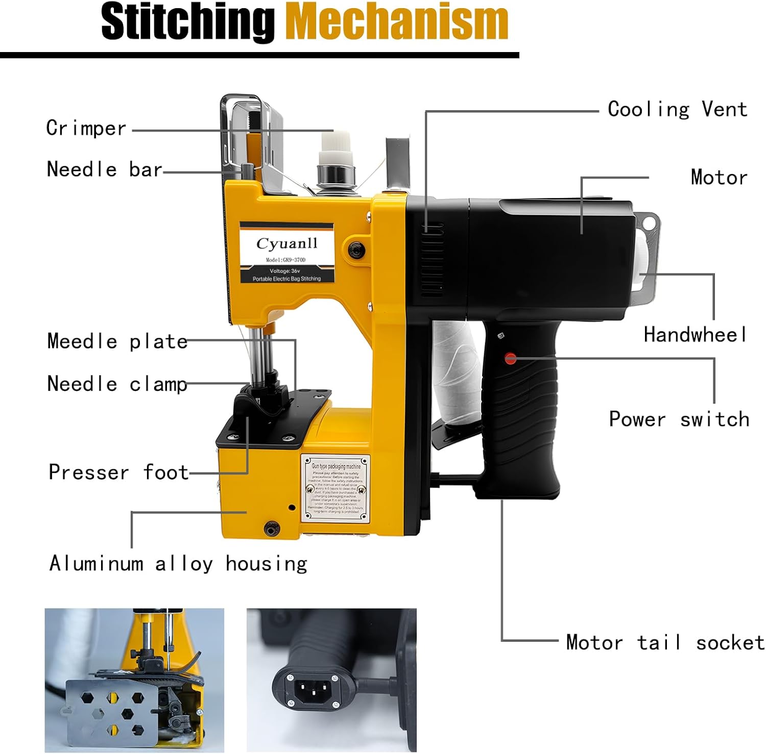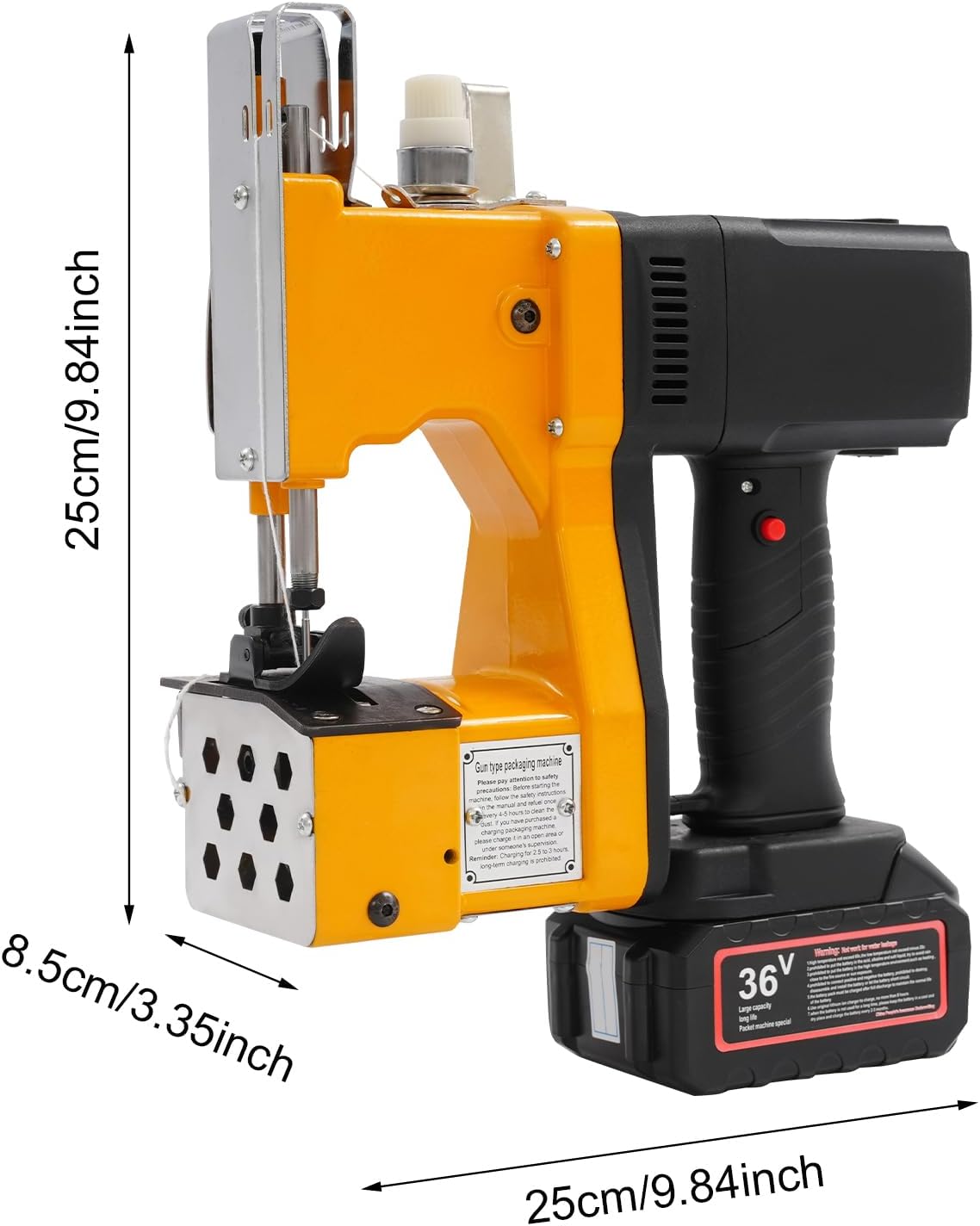 Cordless Bag Sewing Machine 36V Battery Powered Handheld High Speed Bag Sealing Machine Industrial Bag Closing Machine for Burlap Sack, Canvas, Feed Sacks, Woven (Yellow)
