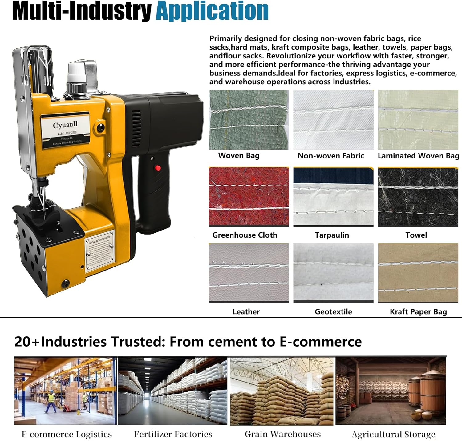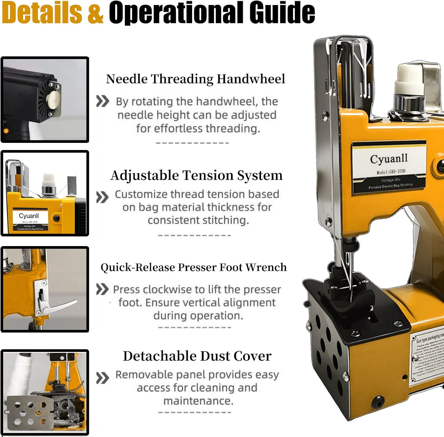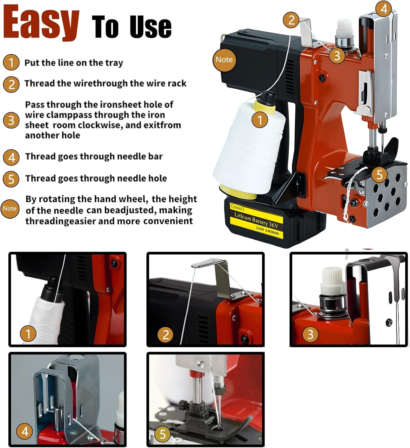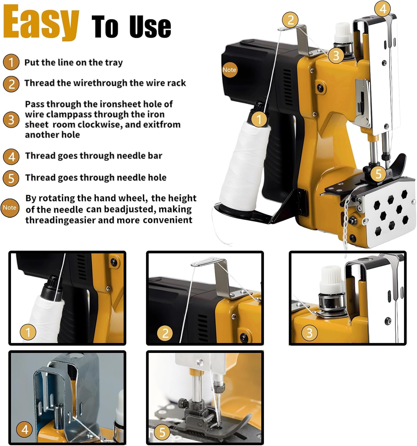 Cordless Bag Sewing Machine 36V Battery Powered Handheld High Speed Bag Sealing Machine Industrial Bag Closing Machine for Burlap Sack, Canvas, Feed Sacks, Woven (Yellow)