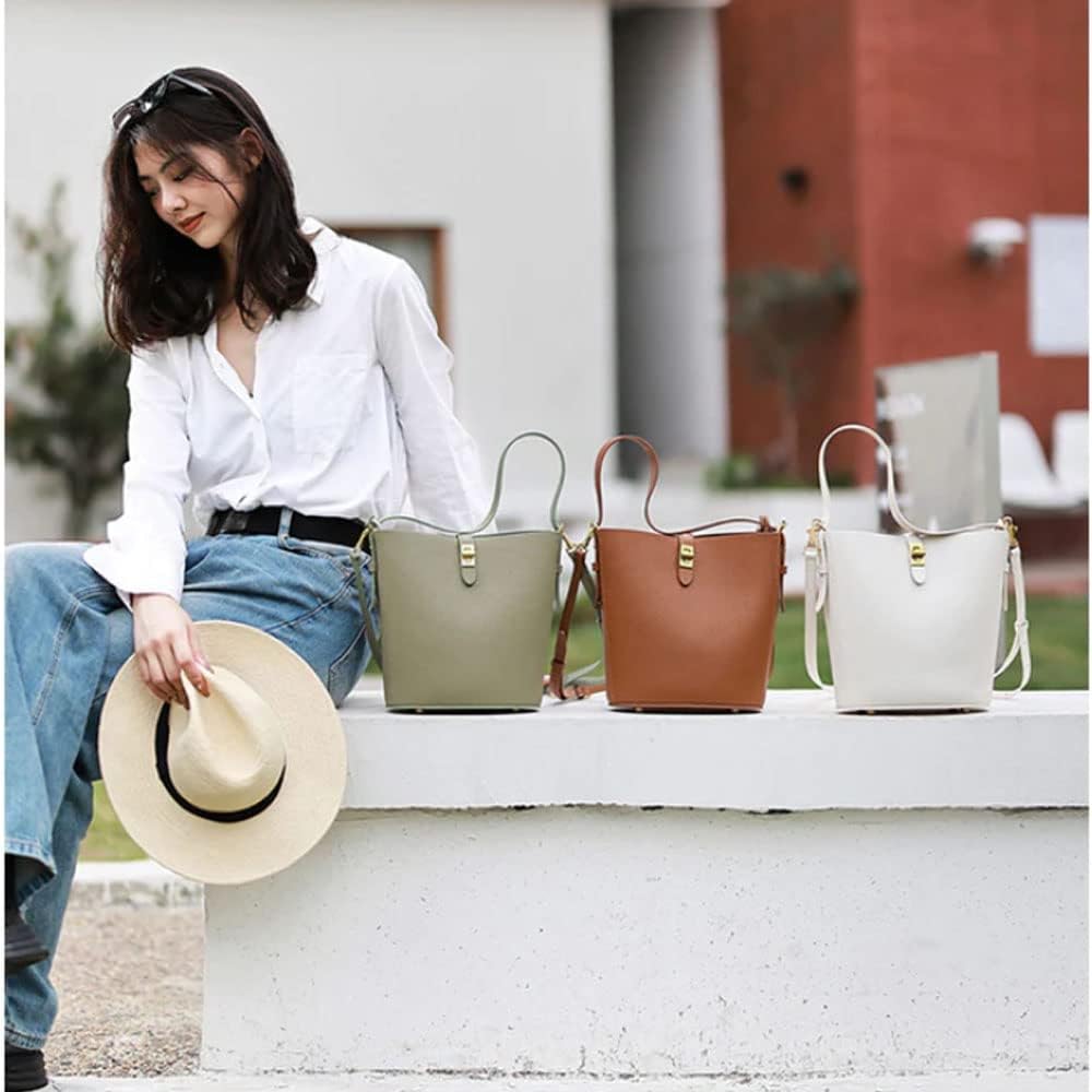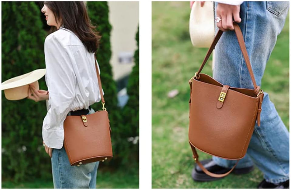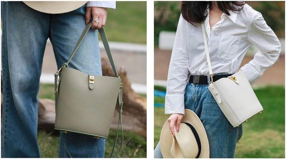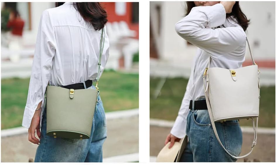 POPSEWING Leather Simple Bucket Crossbody Bag Kits, DIY Shoulder Purse with Sewing Kit, DIY Handmade Bag Kit for Mom Girlfriend (Green)