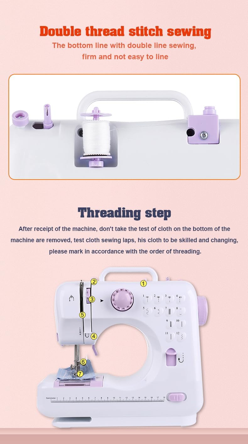 Portable Sewing Machine for Beginners, 16 Built-in Stitches and Reverse Sewing, adjustable sewing speed, small sewing machine with two needle types, foot pedal(with Extension Table)