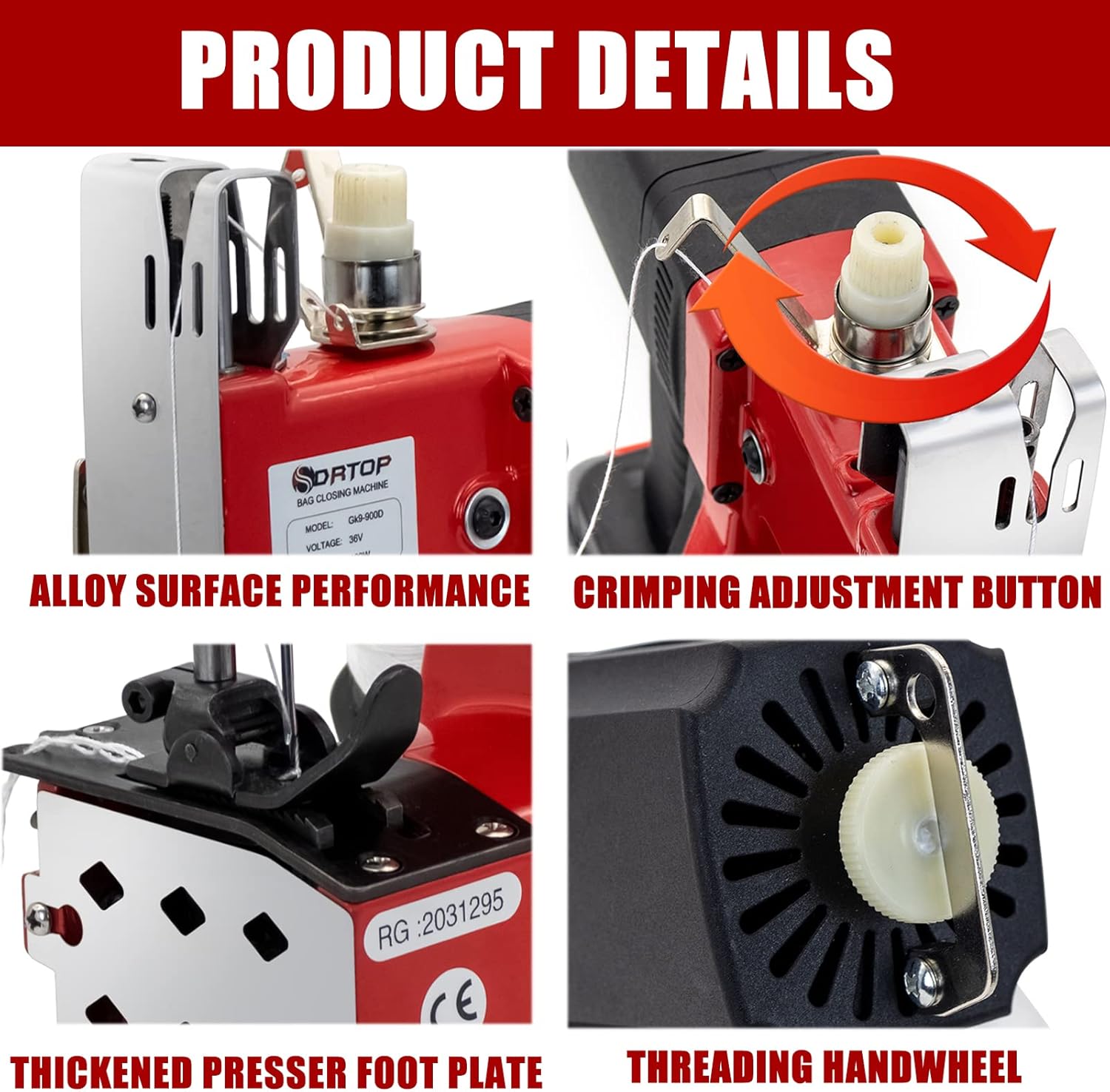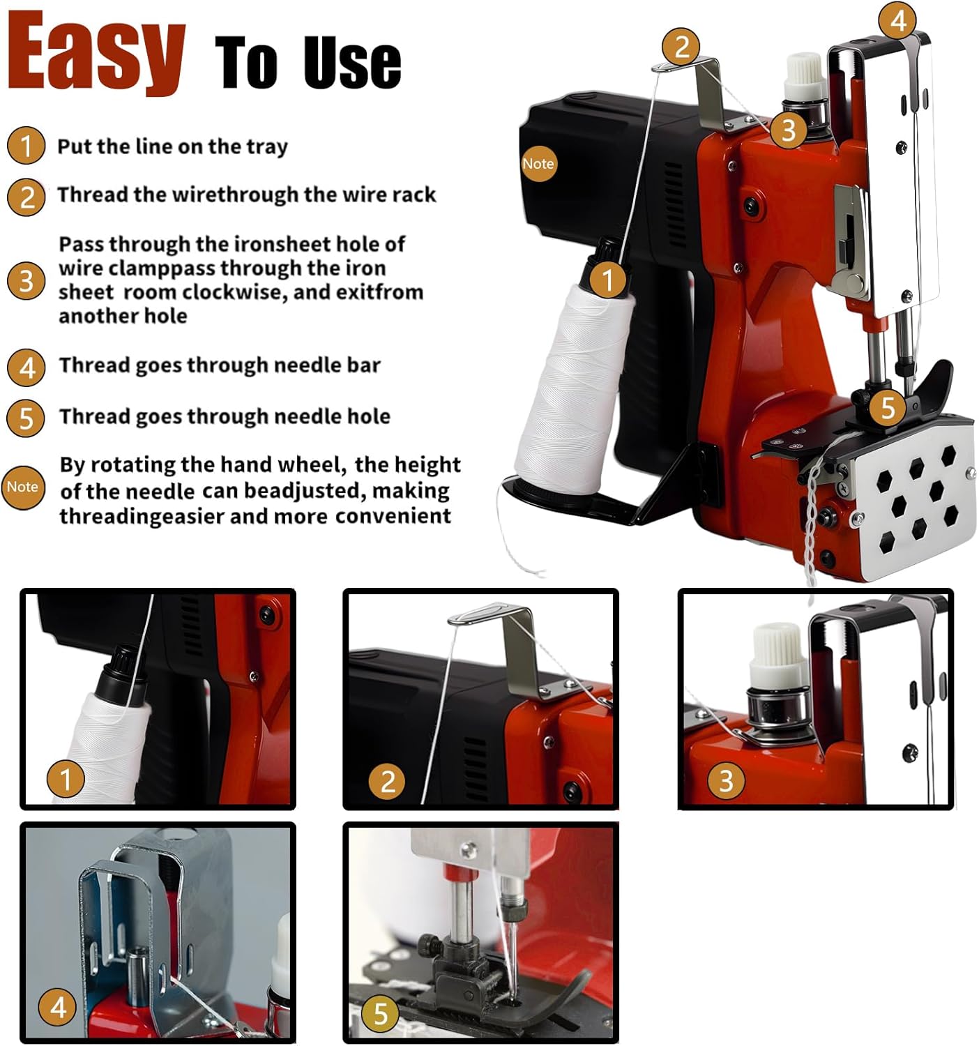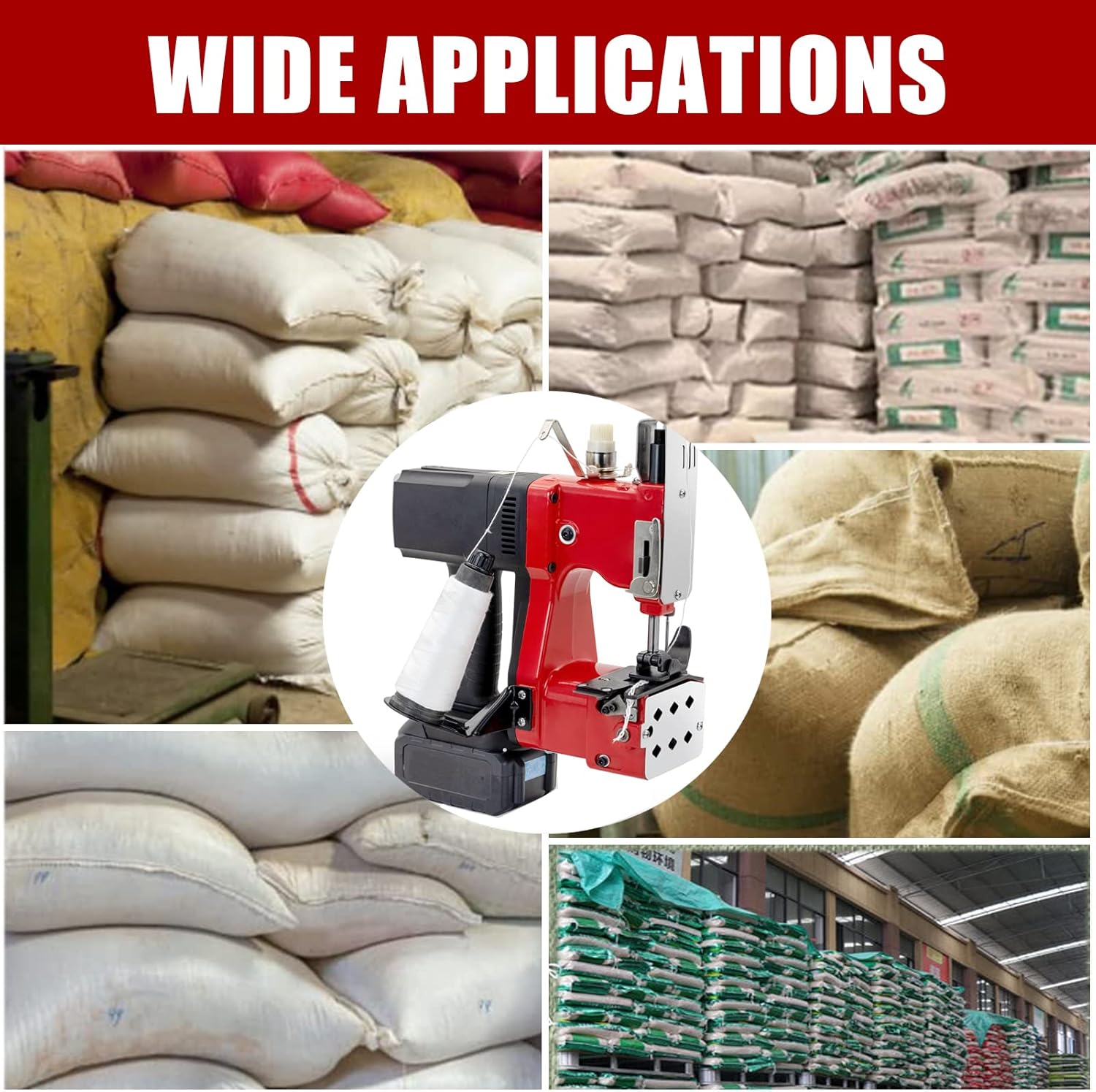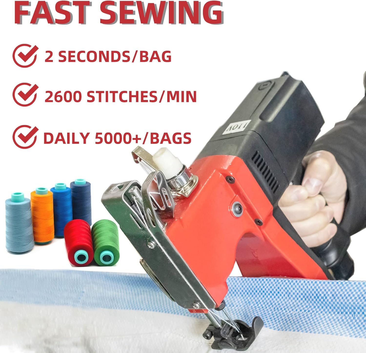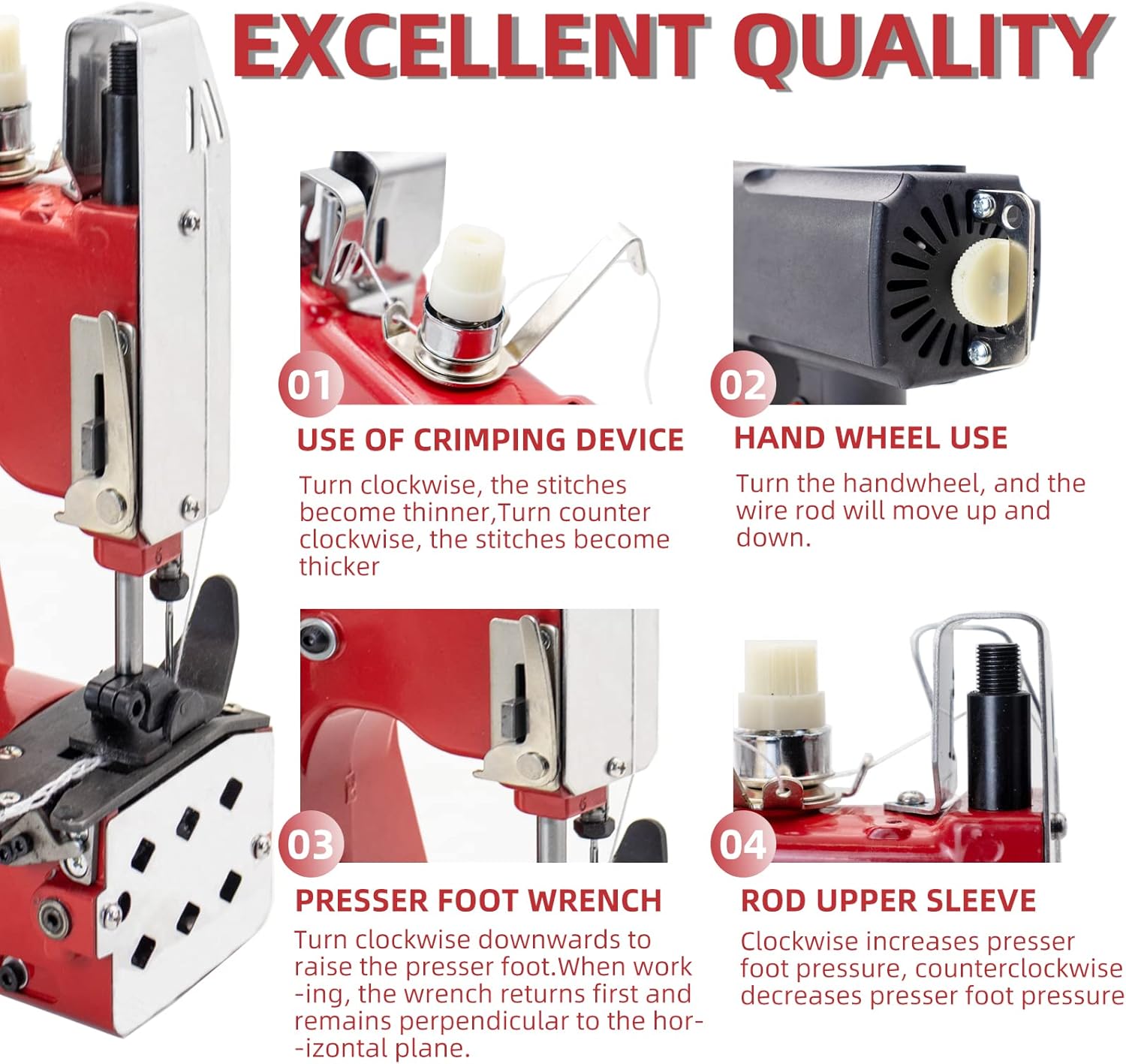 Bag Sewing Machine-Electric Portable Bag Sewing Machine 2s/bag,Bag Closer Automatic Woven Bag Sewer Packing Machine for Burlap PP Woven Kraft Paper Bag Feed Sacks Rice Bags Jute Bags-Red