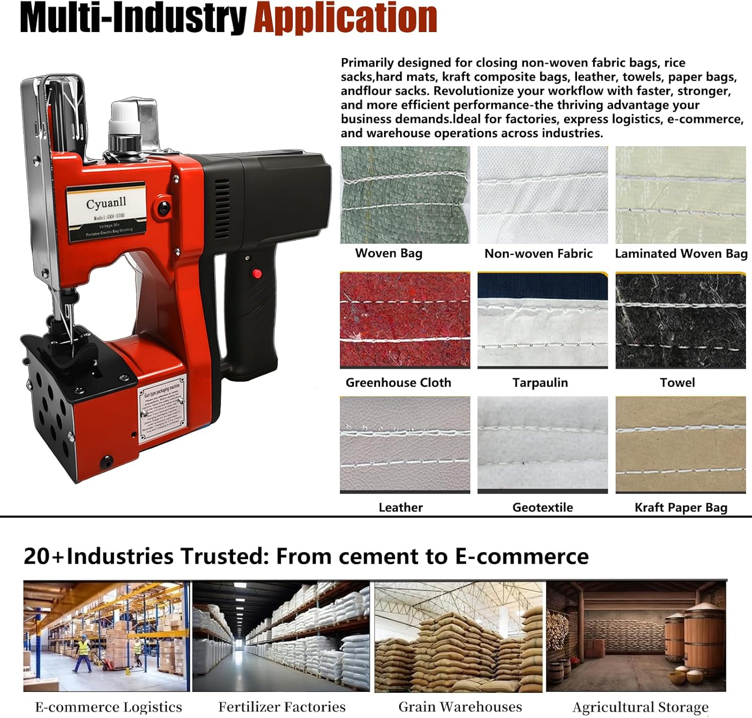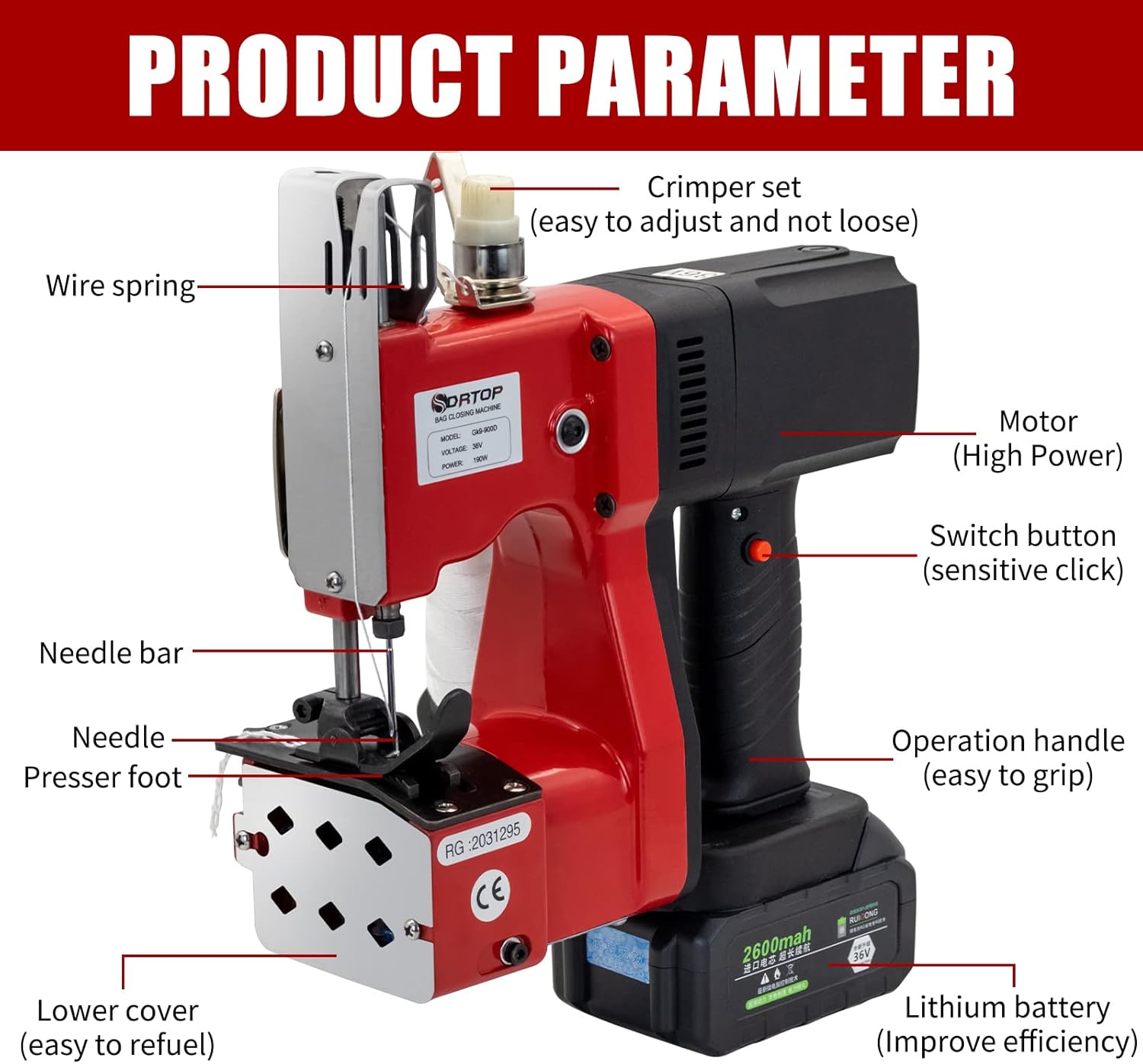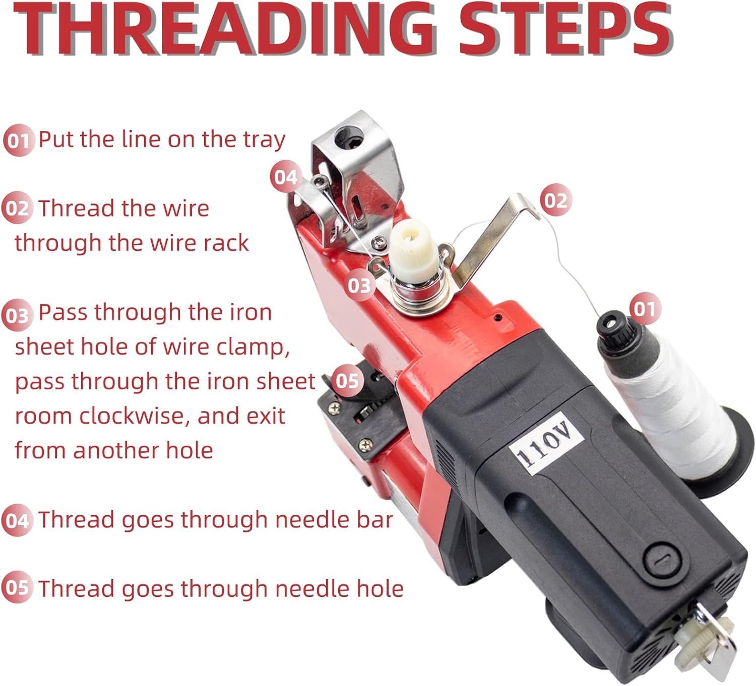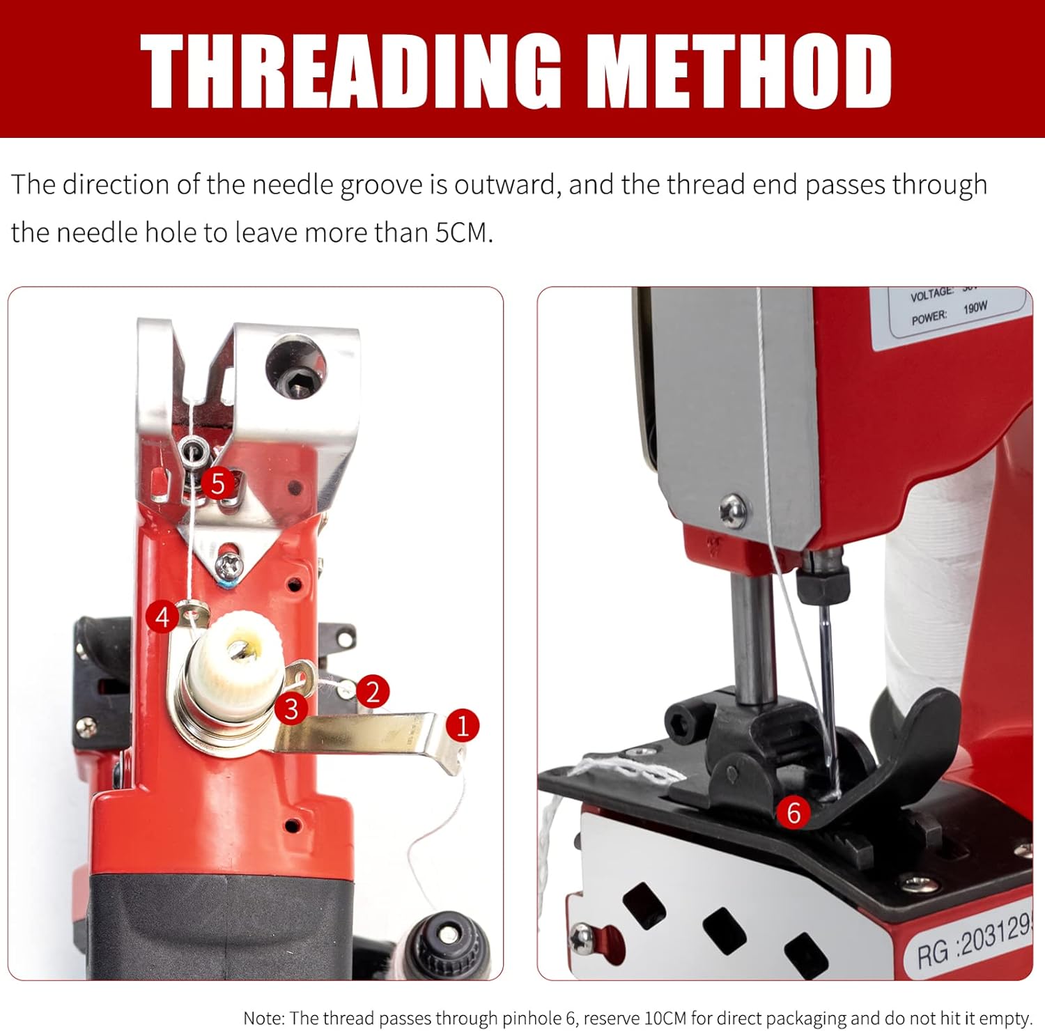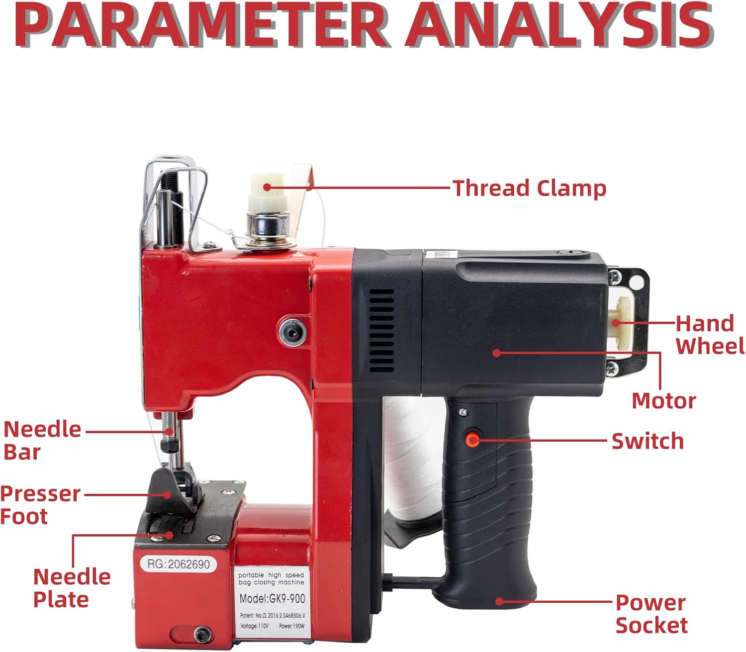 Bag Sewing Machine-Electric Portable Bag Sewing Machine 2s/bag,Bag Closer Automatic Woven Bag Sewer Packing Machine for Burlap PP Woven Kraft Paper Bag Feed Sacks Rice Bags Jute Bags-Red