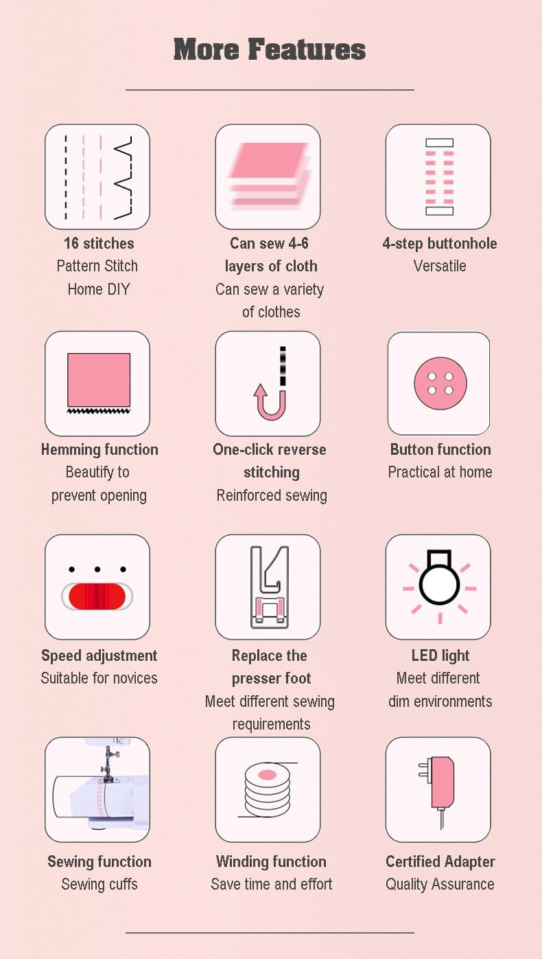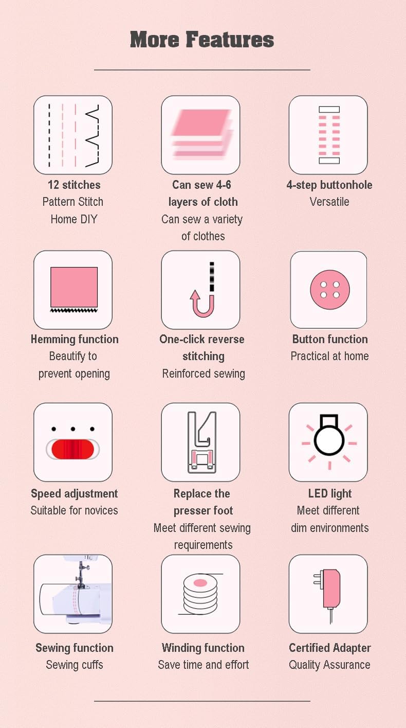 The Believe Beginner Sewing Machine by American Home Makes Sewing for Beginners Easy on Portable Small Sewing Machine with 12 Built-In Stitches, Automatic Stitch Control Plus Fun Decals, AH600