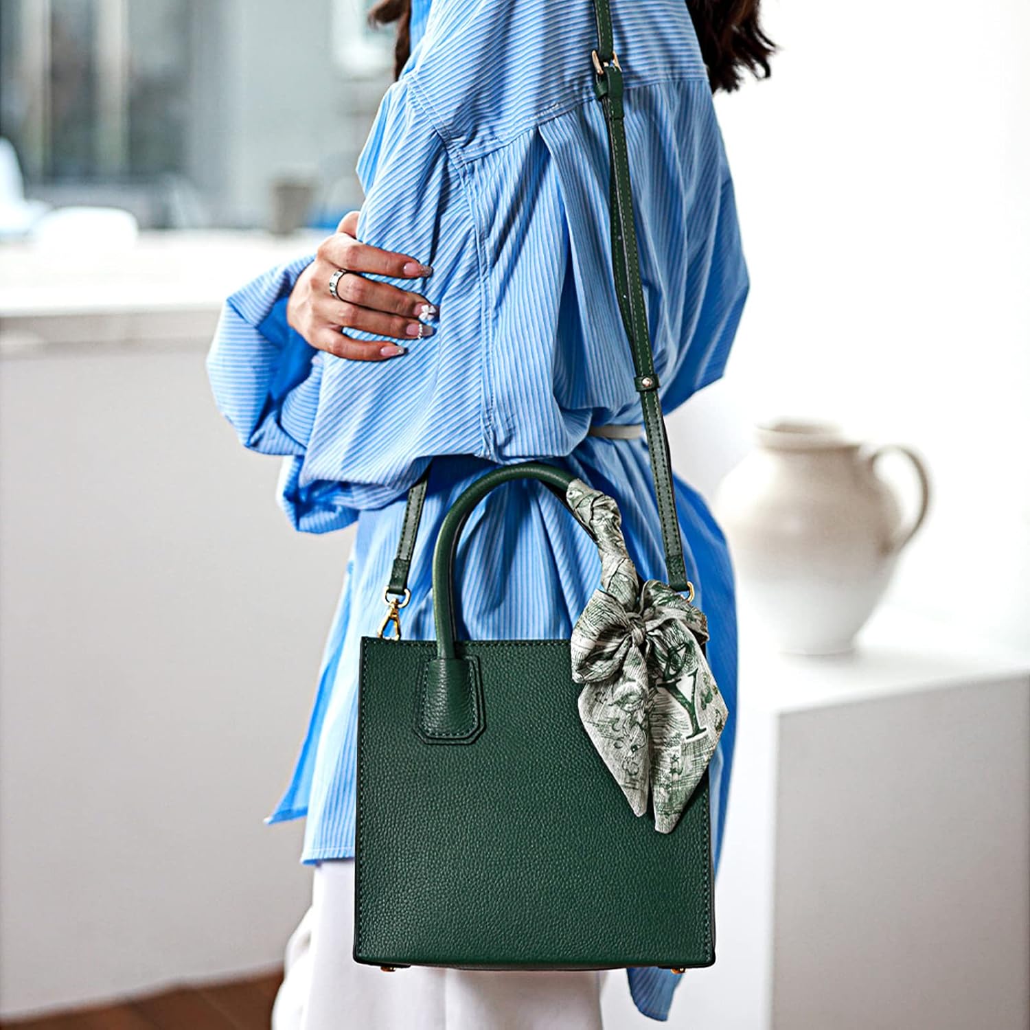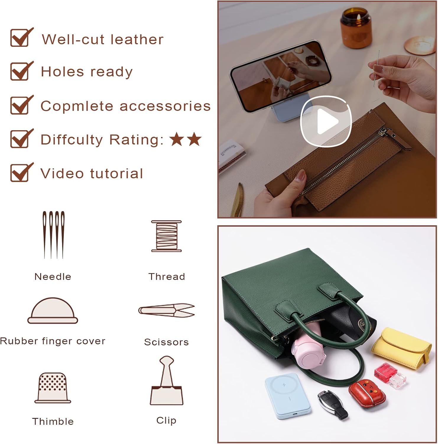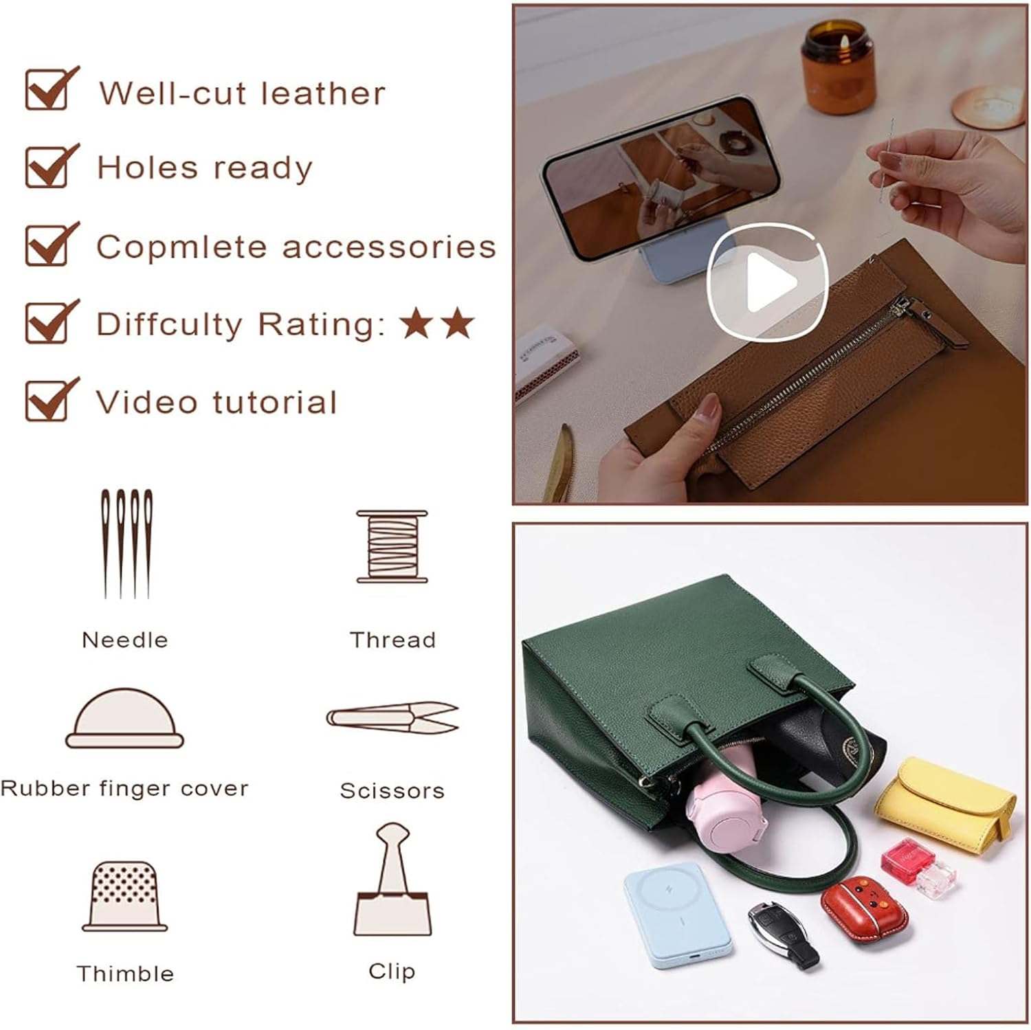 POPSEWING Top Grain Leather Mini Tote Handbag DIY Kit, Crossbody Shoulder Bag with Sewing Kits for Women, Girls, DIY Leather Bag Kit for Personalized Gift (Green)