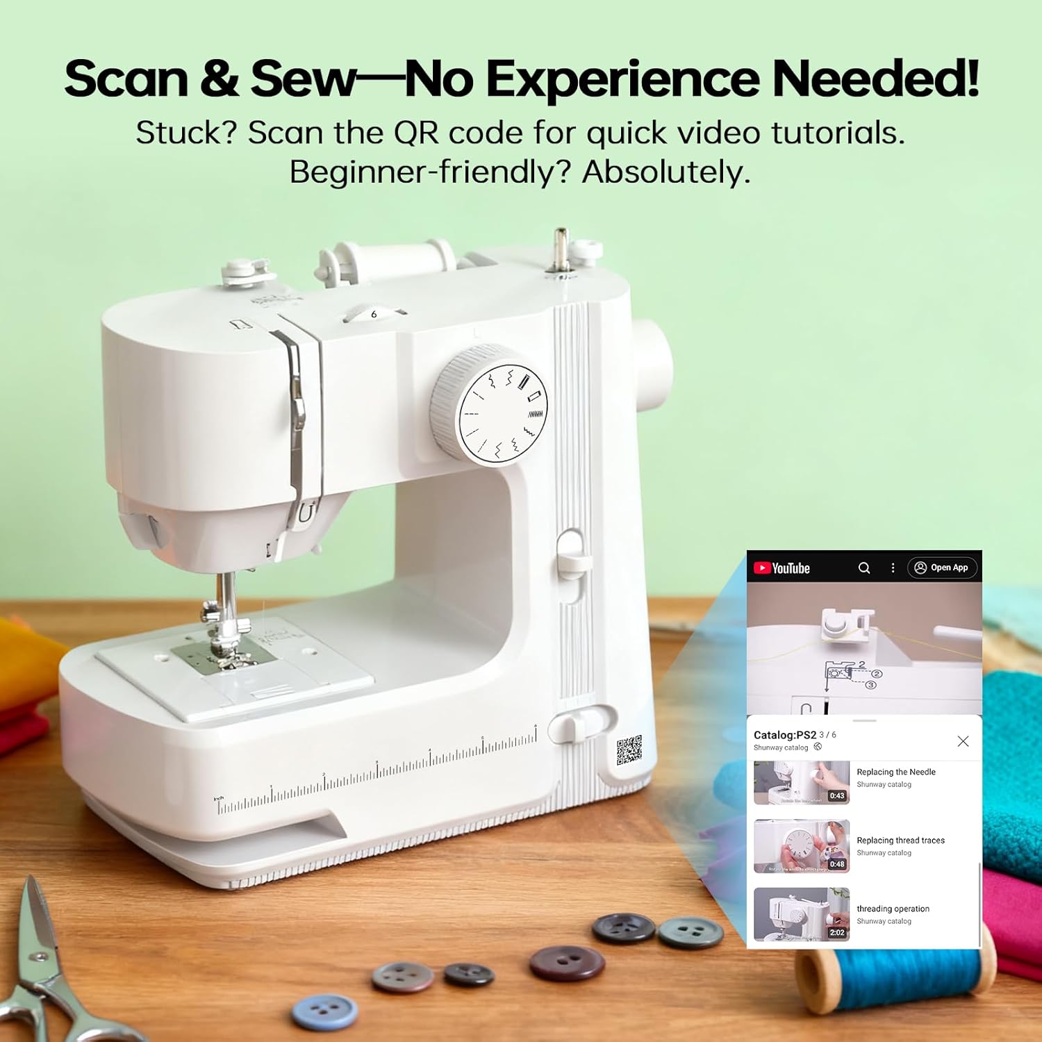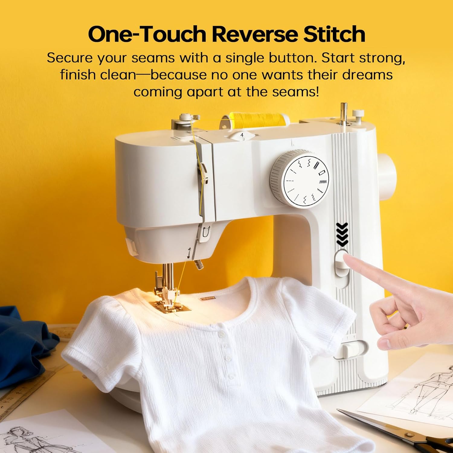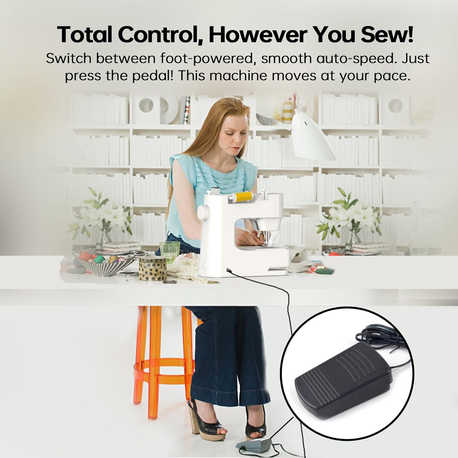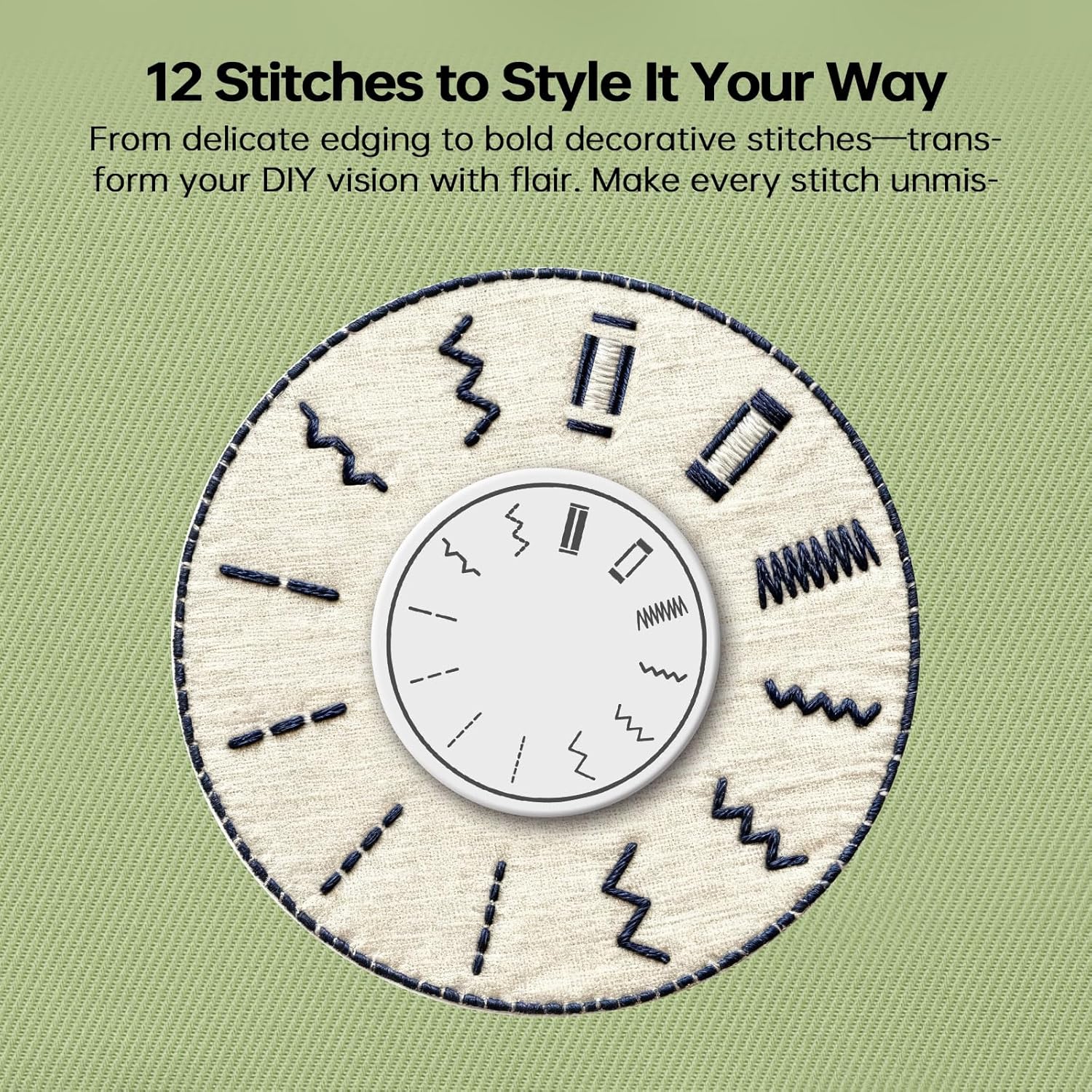 LuckySew:Make Your Own Luck.Sewing machine,sewing machine for beginners with 12 Built-in Stitches,Dual-speed and foot pedal,Home portable sewing machine with accessory kit included.(White)