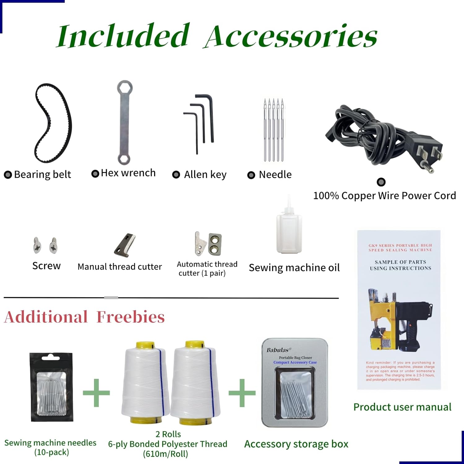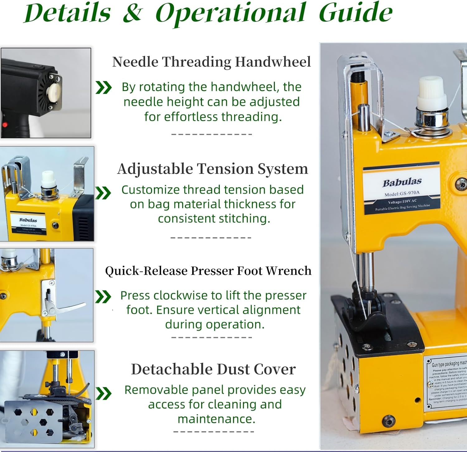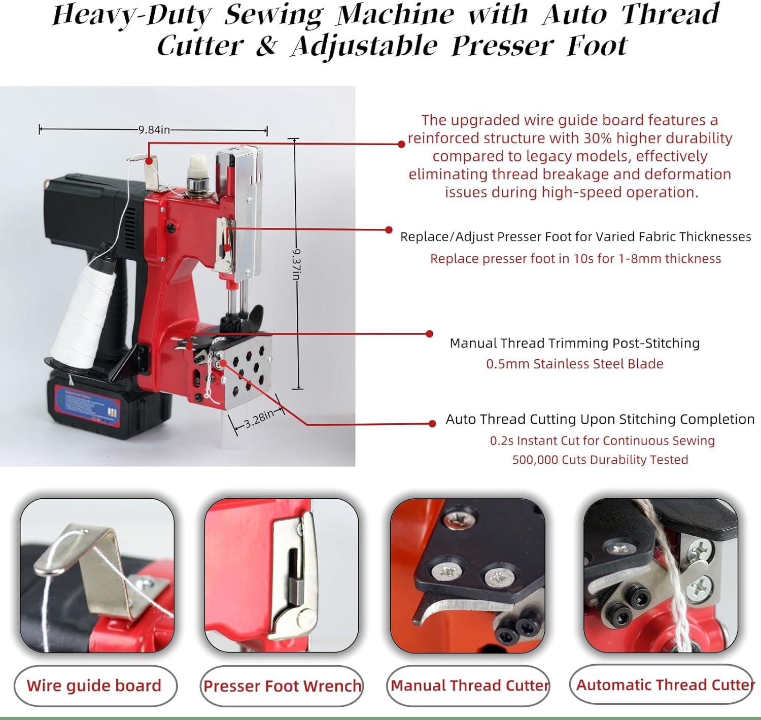Portable Bag Sewing machine, Heavy Duty Bag Closing Machine For Burlap Bags Sand Bags Come With Thread