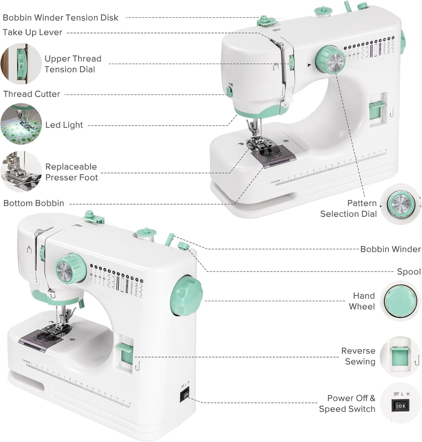 Sewing Machine for Beginners, Mini Sewing Machine with Sewing Kits, Electric Portable Sewing Machine with Full Featured, Built-in 12 Stitches, Twin Needle
