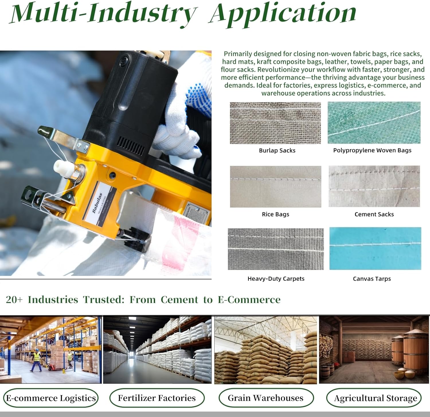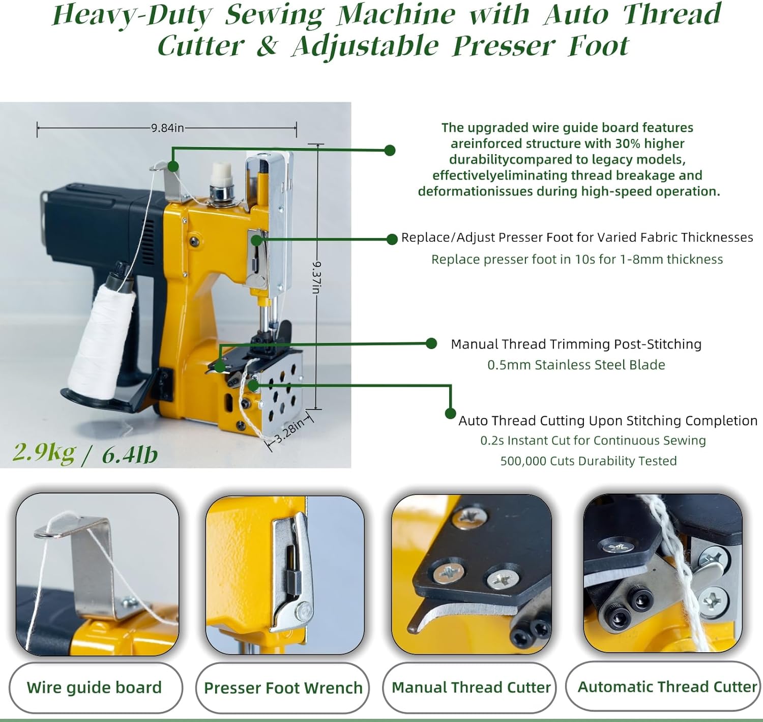 Bag Sewing Machine - 2s/bag Heavy Duty Portable Stitching Machine for Woven Bags, Non-Woven Fabrics, Leather | Warehouse & Farm Packing Tool (Yellow, Corded - 110V AC)