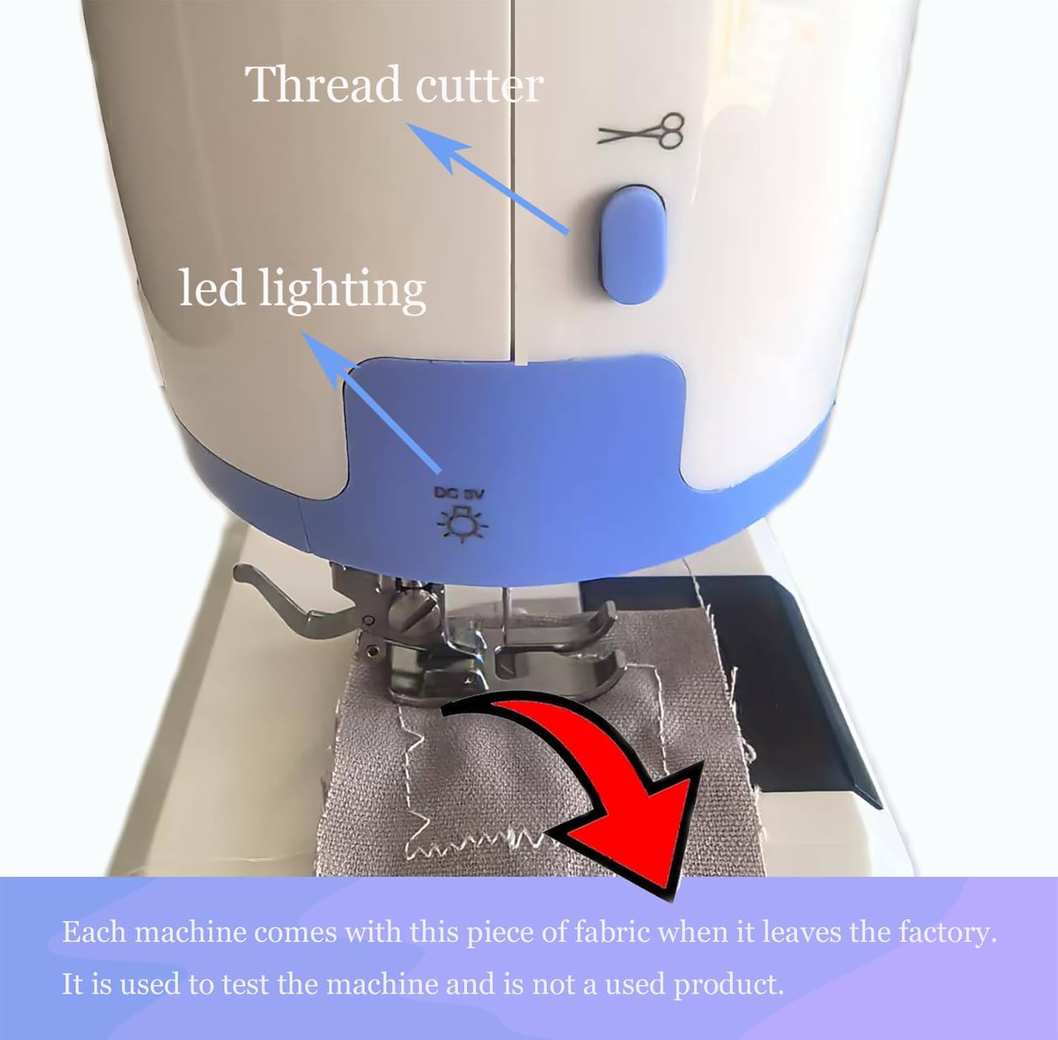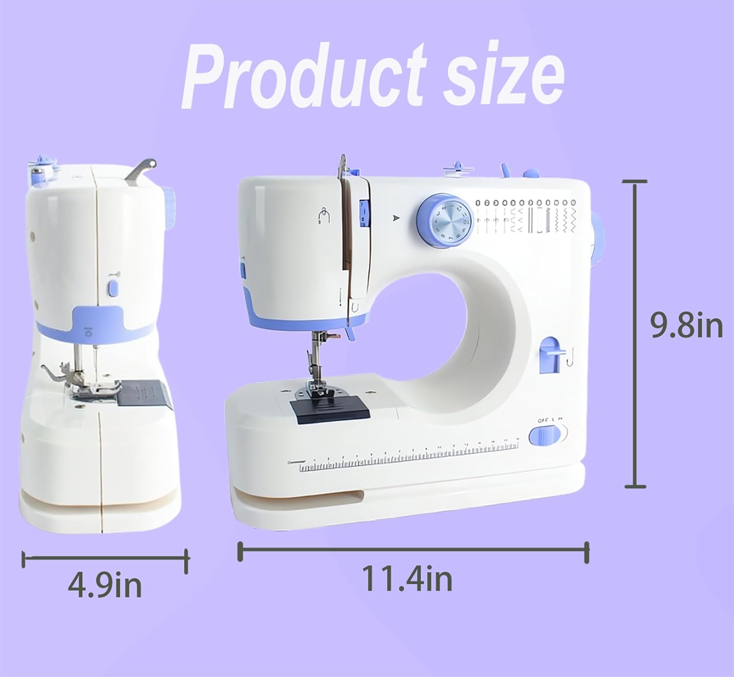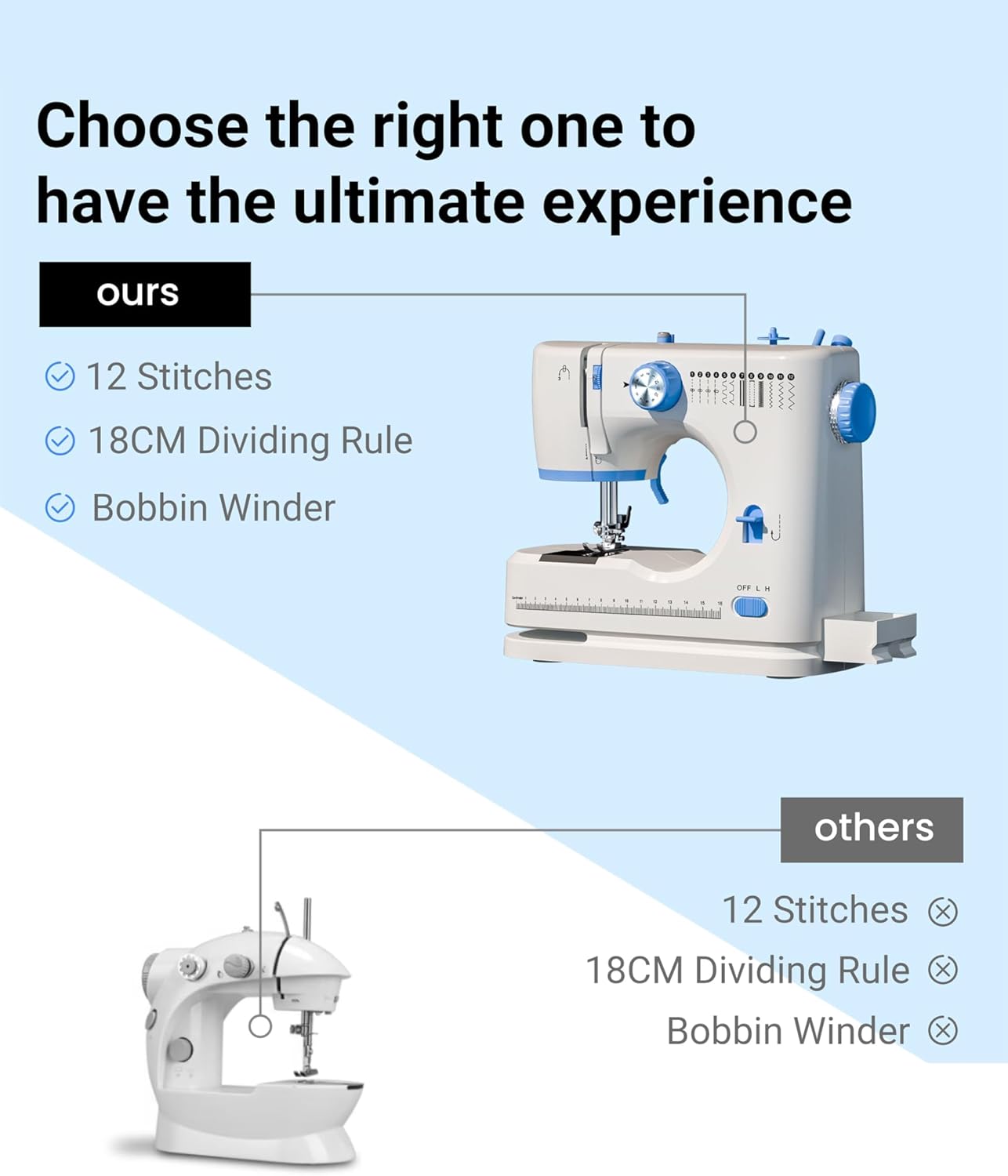 Portable Sewing Machine, Lncludes Beginner Basic Sewing Machine Kit, 12 Stitch Patterns Built-In, Versatile 2-Speed Foot Pedal, Great for Beginners, Adults, Home Use - Blue and White