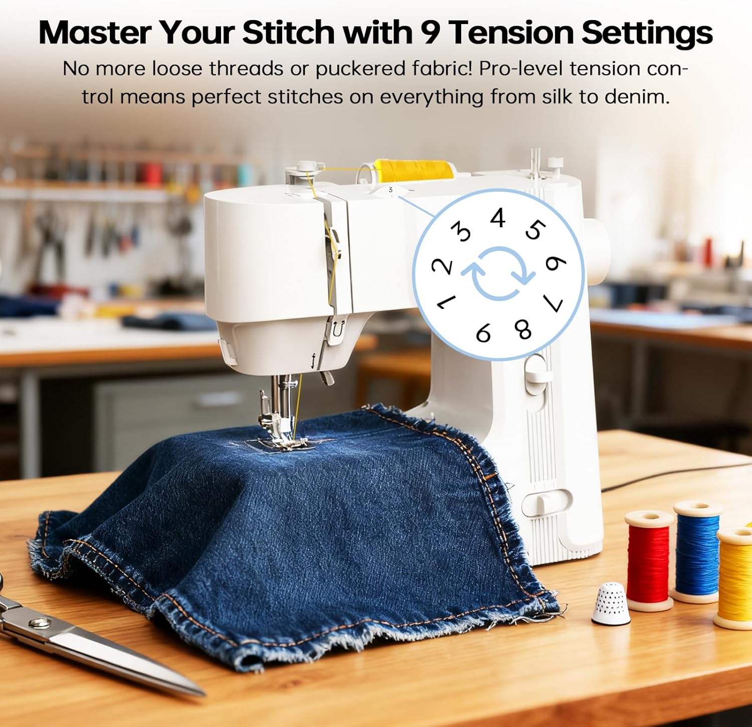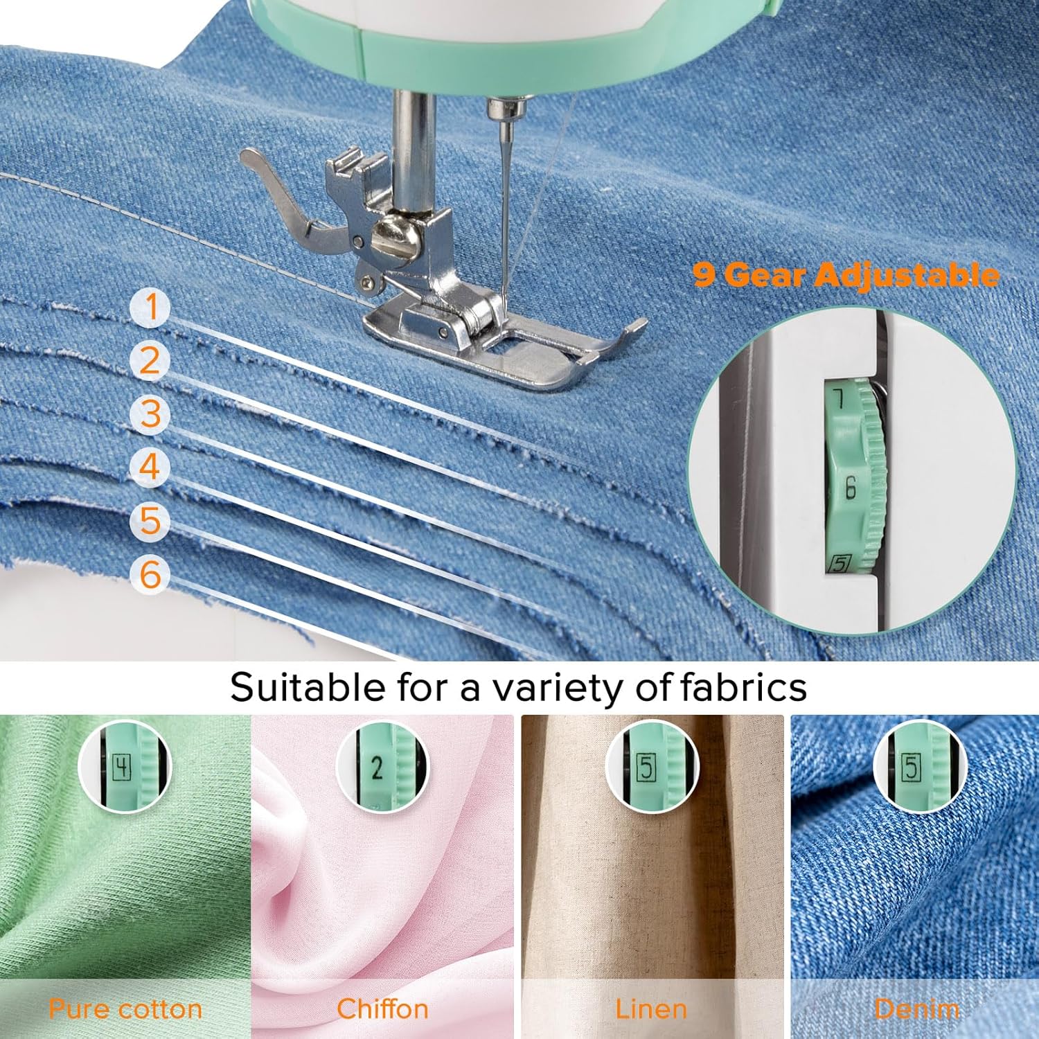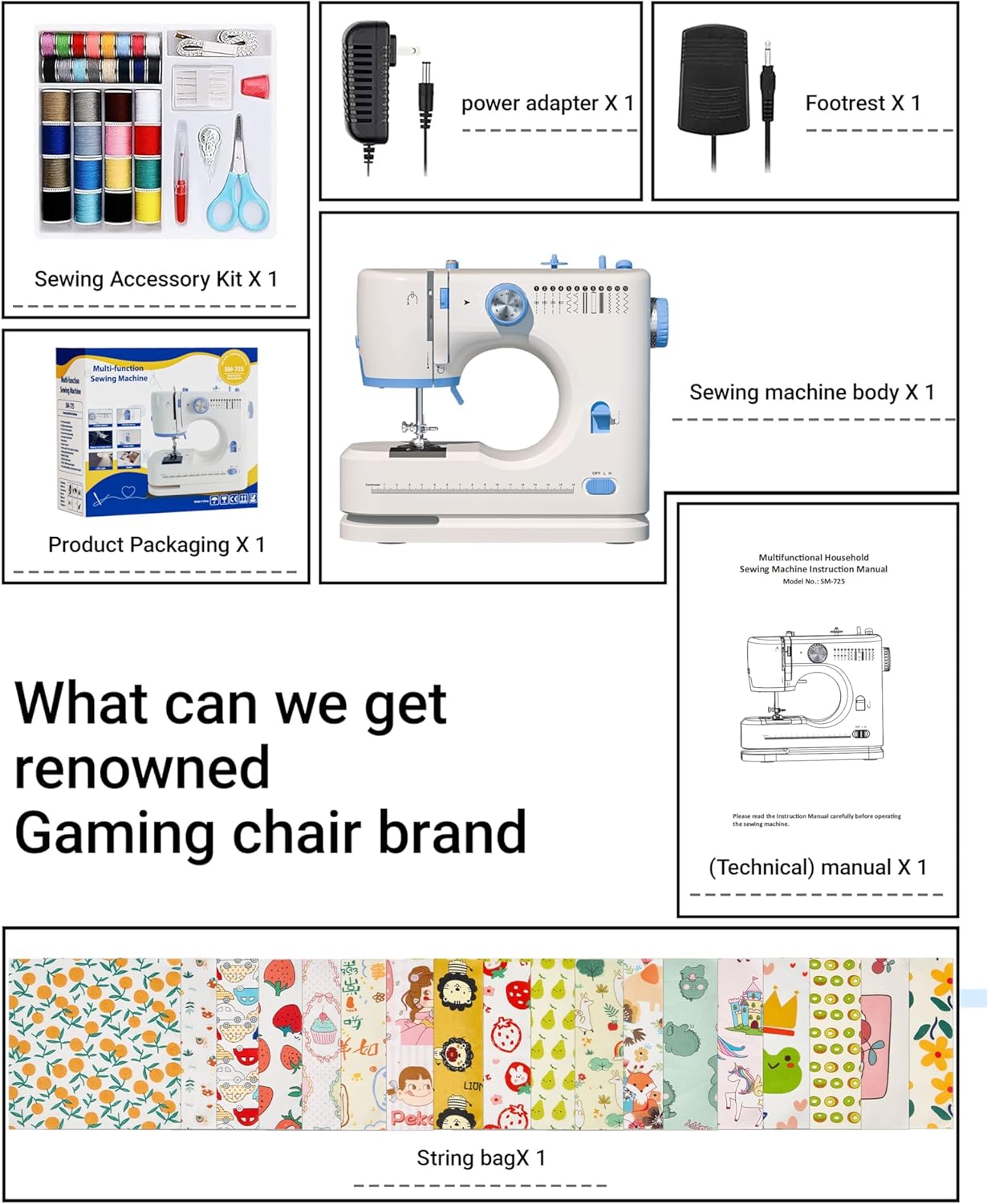 Portable Sewing Machine, Lncludes Beginner Basic Sewing Machine Kit, 12 Stitch Patterns Built-In, Versatile 2-Speed Foot Pedal, Great for Beginners, Adults, Home Use - Blue and White