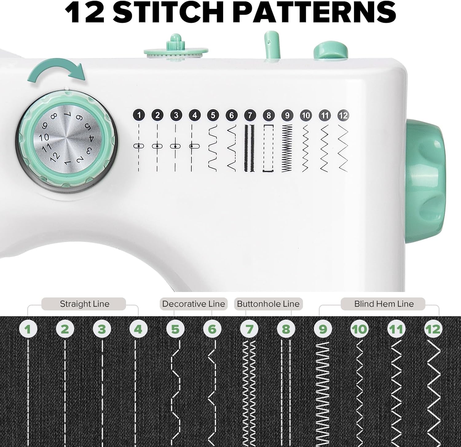 Beginner Sewing Machine Portable Sewing Machine with 12 Stitch Modes, Dual Needle & Adjustable Speed Lightweight Design, Foot Pedal Ideal for Adults, Home DIY & Crafts (12 Stitch)