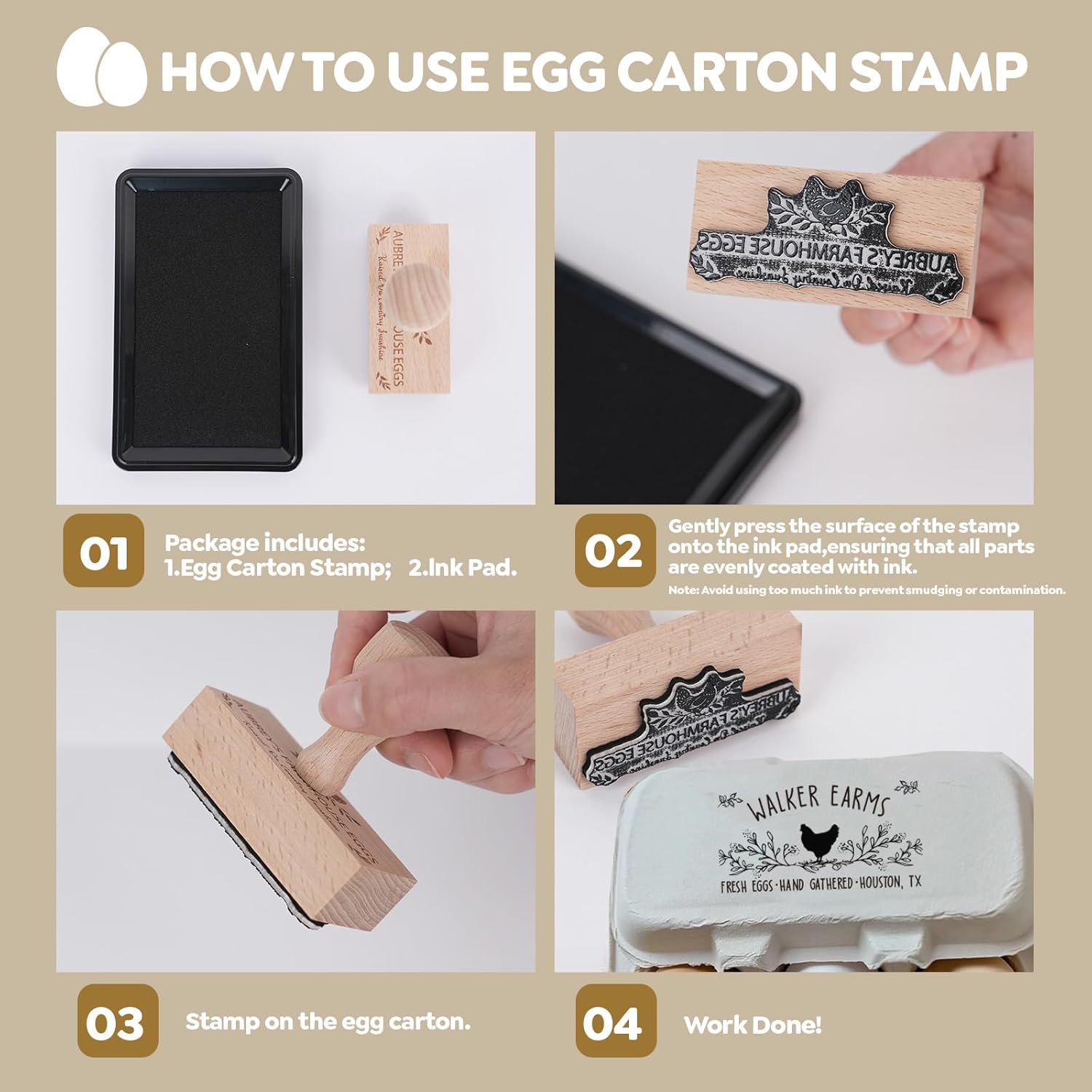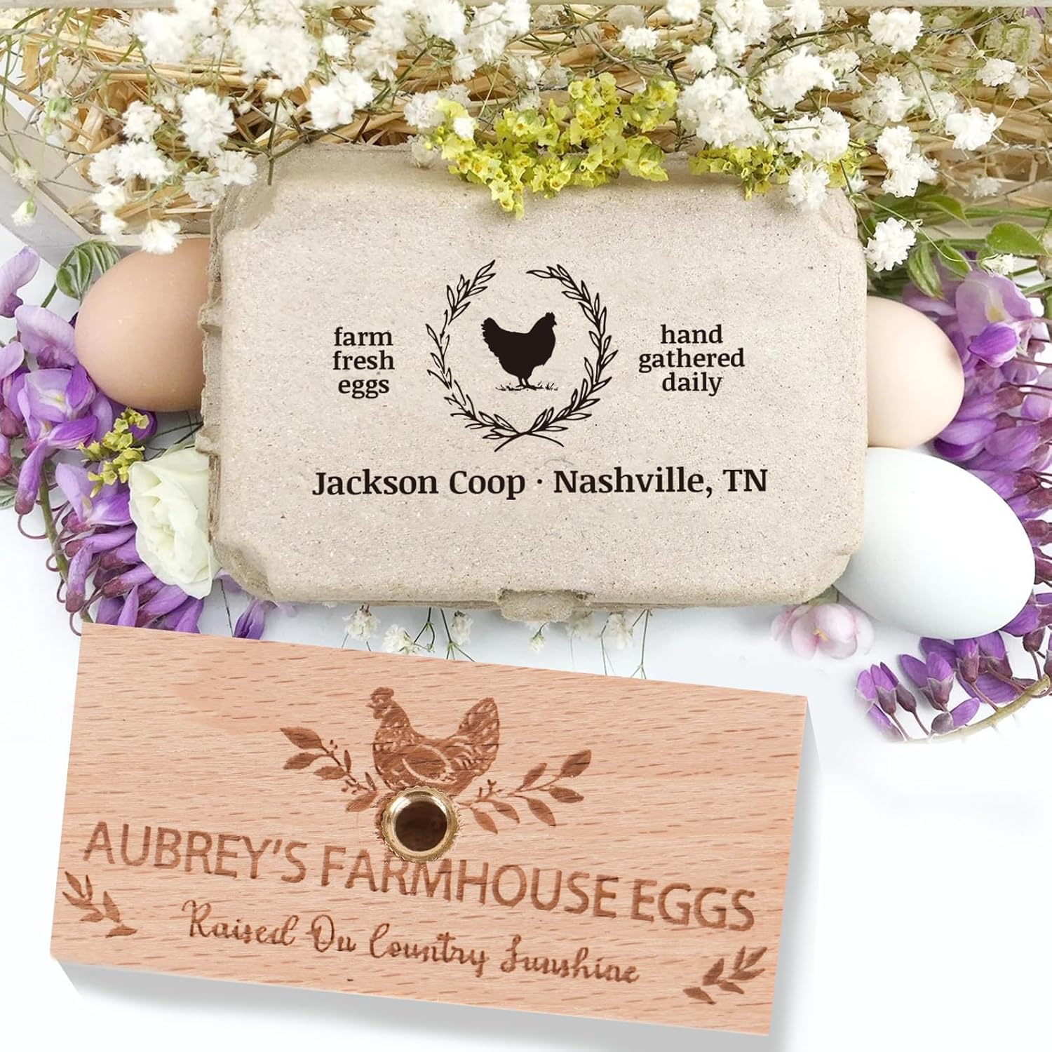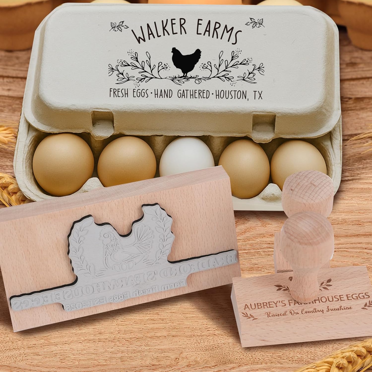 Egg Carton Stamps Personalized, Custom Egg Cartons Stamp, Rubber Stamp for Farm Fresh Eggs Cartons, Wooden Stamps for Farmhouse Homestead Chicken Coop Farmer, Chicken Accessories(4"x6")