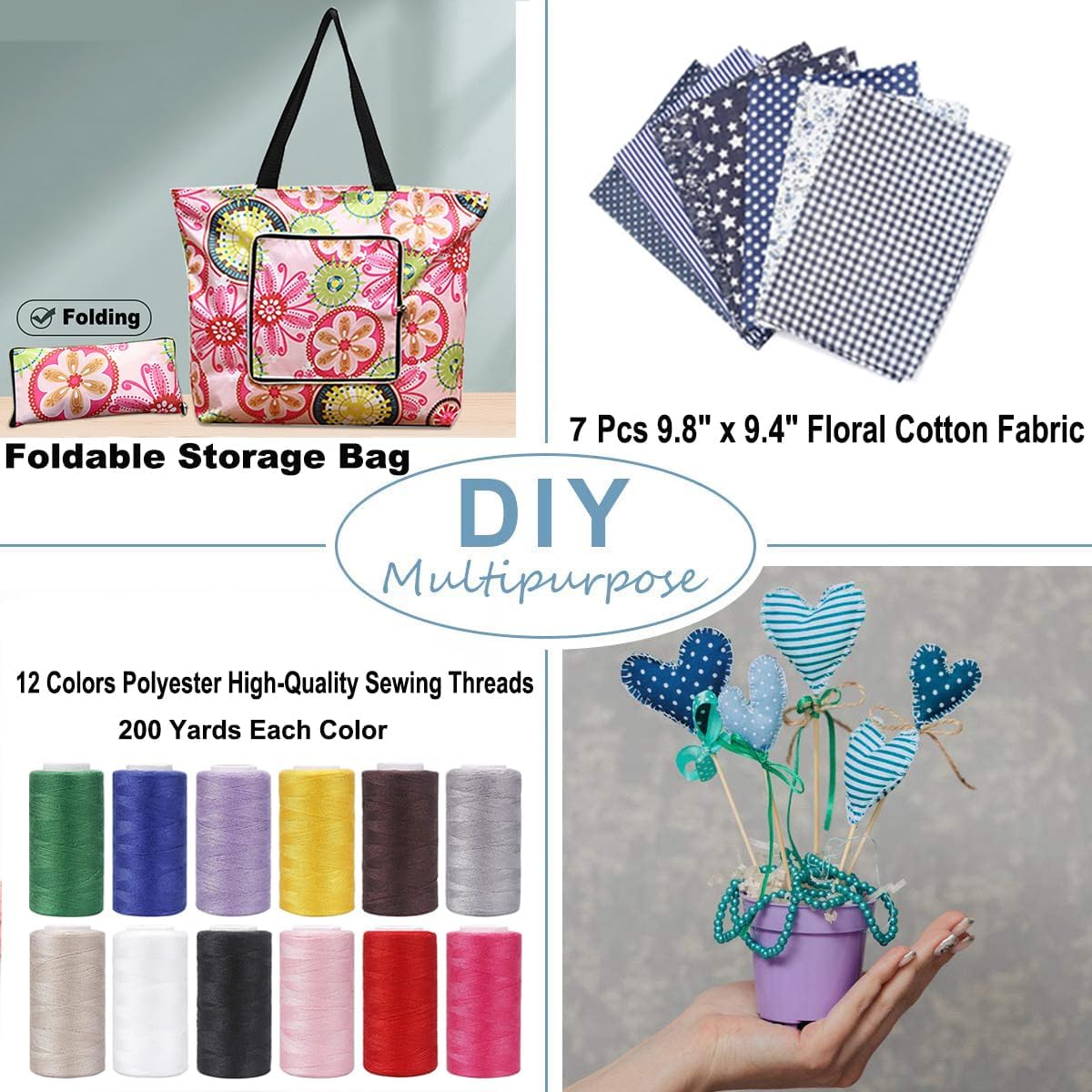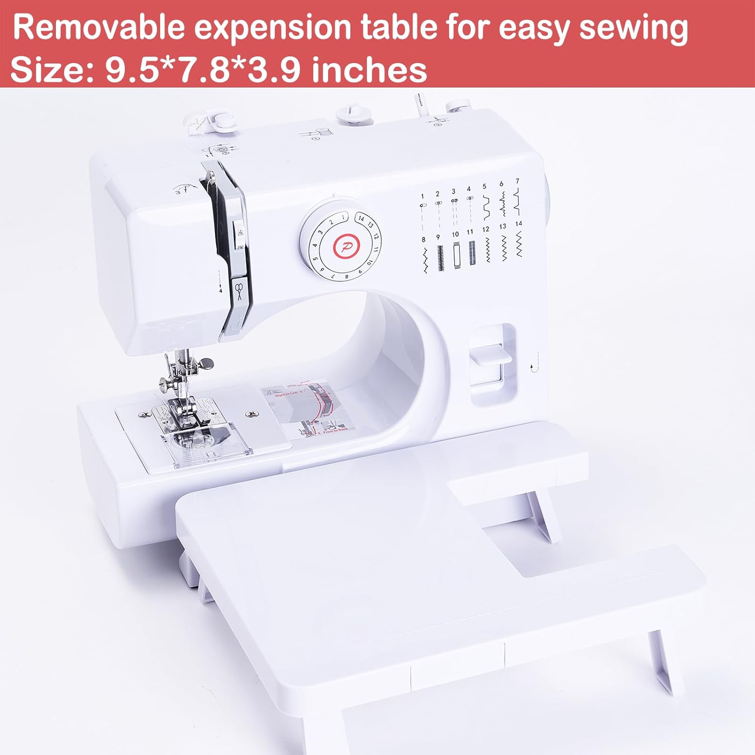 Sewing Machine for Beginners, Electric Mini Portable, 14 Built-in Stitches with Reverse Sewing, 2 Speeds Double Thread with Foot Pedal, Storage Bag, Cotton Fabric and Threads- Extension Table