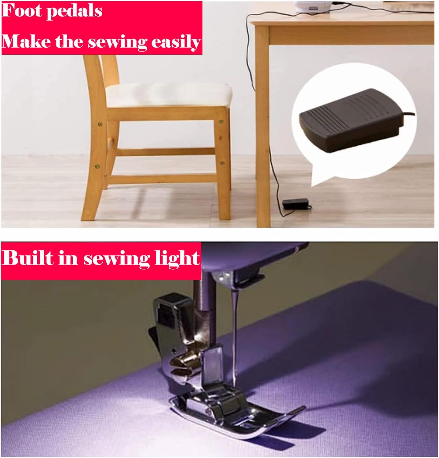 Sewing Machine for Beginners with 12 Built-in Stitches, 6 Included Feet, Portable Sewing Machine with Foot Pedal, High-Low Speeds