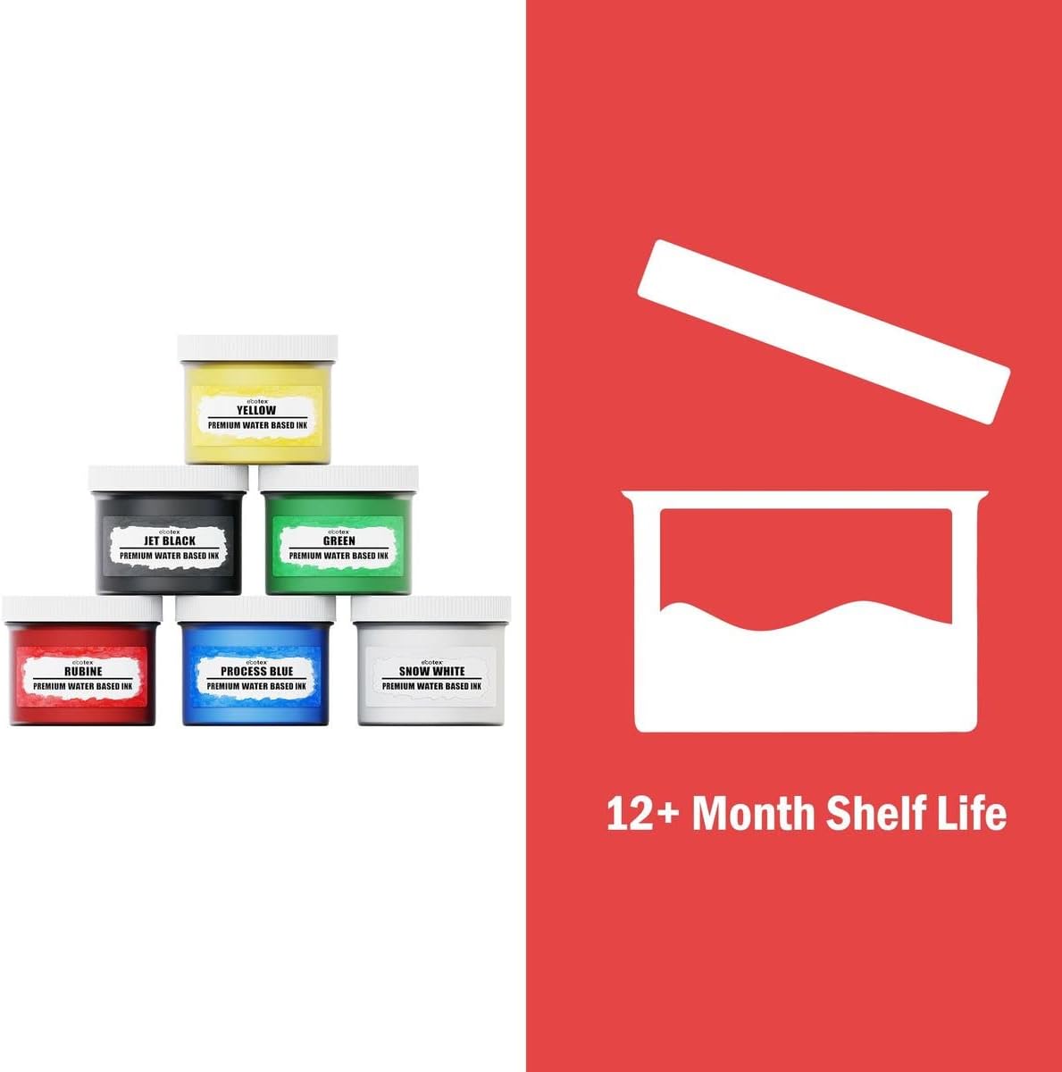 Screen Printing Ink Set (6 Color, 8 oz.) - Ecotex® Water Based Fabric Ink, Silk Screen Ink, Ink for Shirt Printing - Screen Printing Supplies for Screen Printing Kit, Includes Discharge Activator