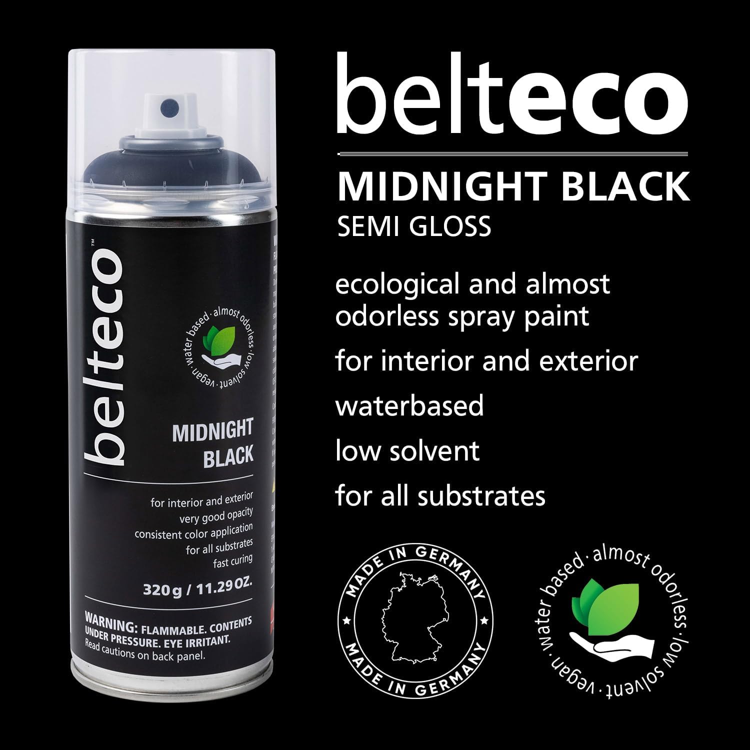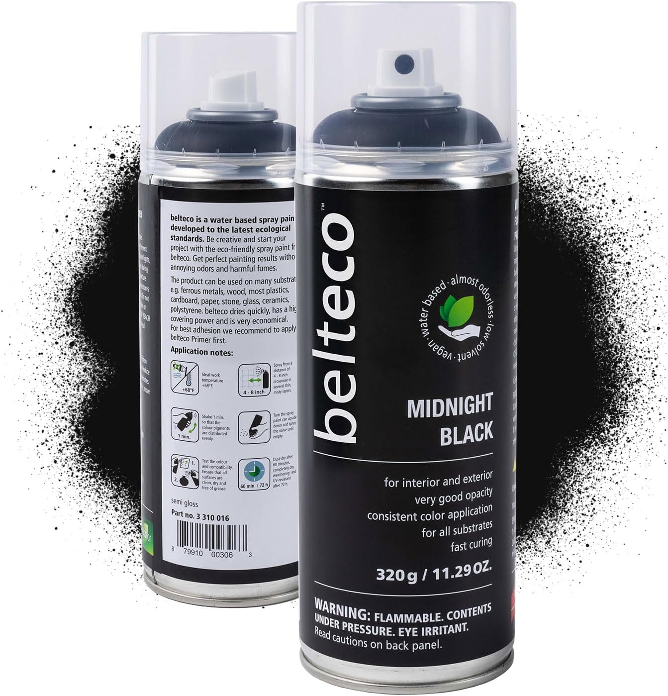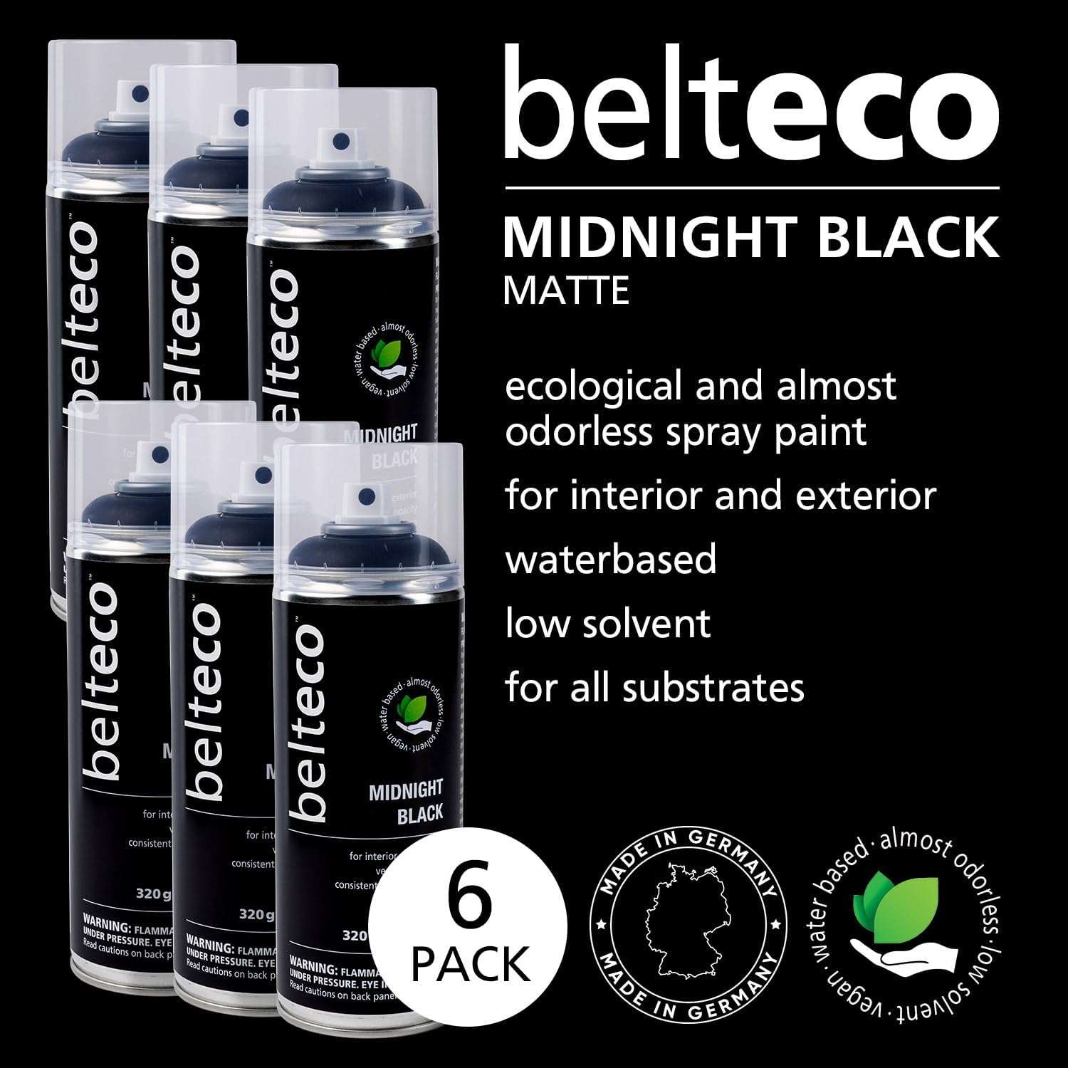 Midnight Black Matte Spray Paint - 6 pack | Water based & Odorless | Eco-Friendly & Vegan | Weather & UV-Resistant | For all Substrates | Fast Drying with High Coverage
