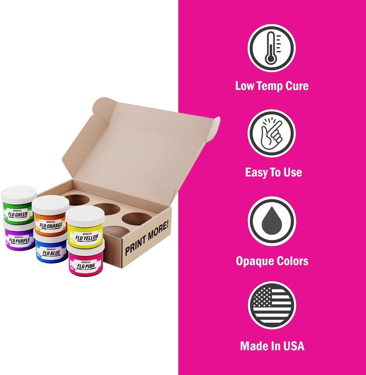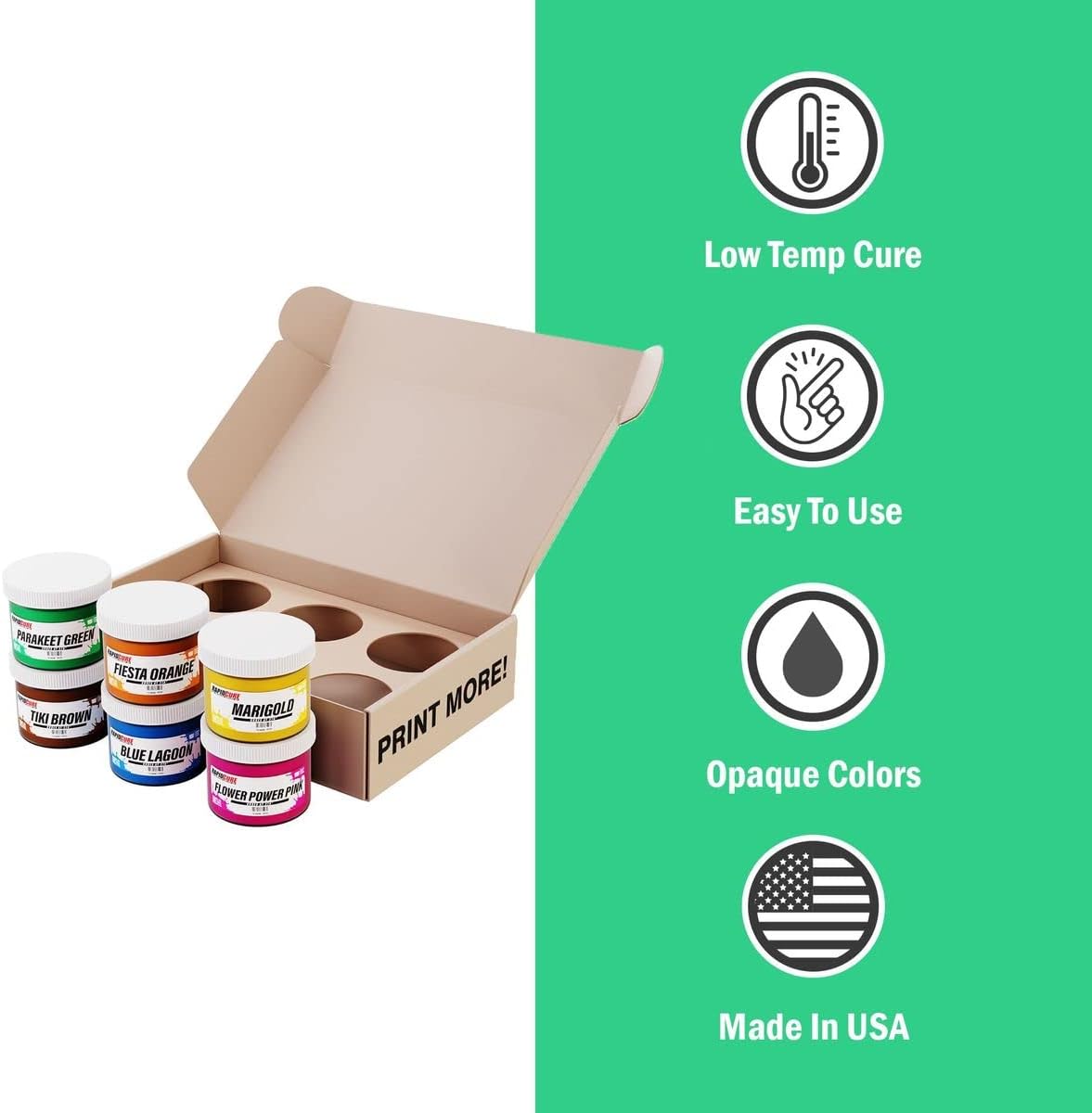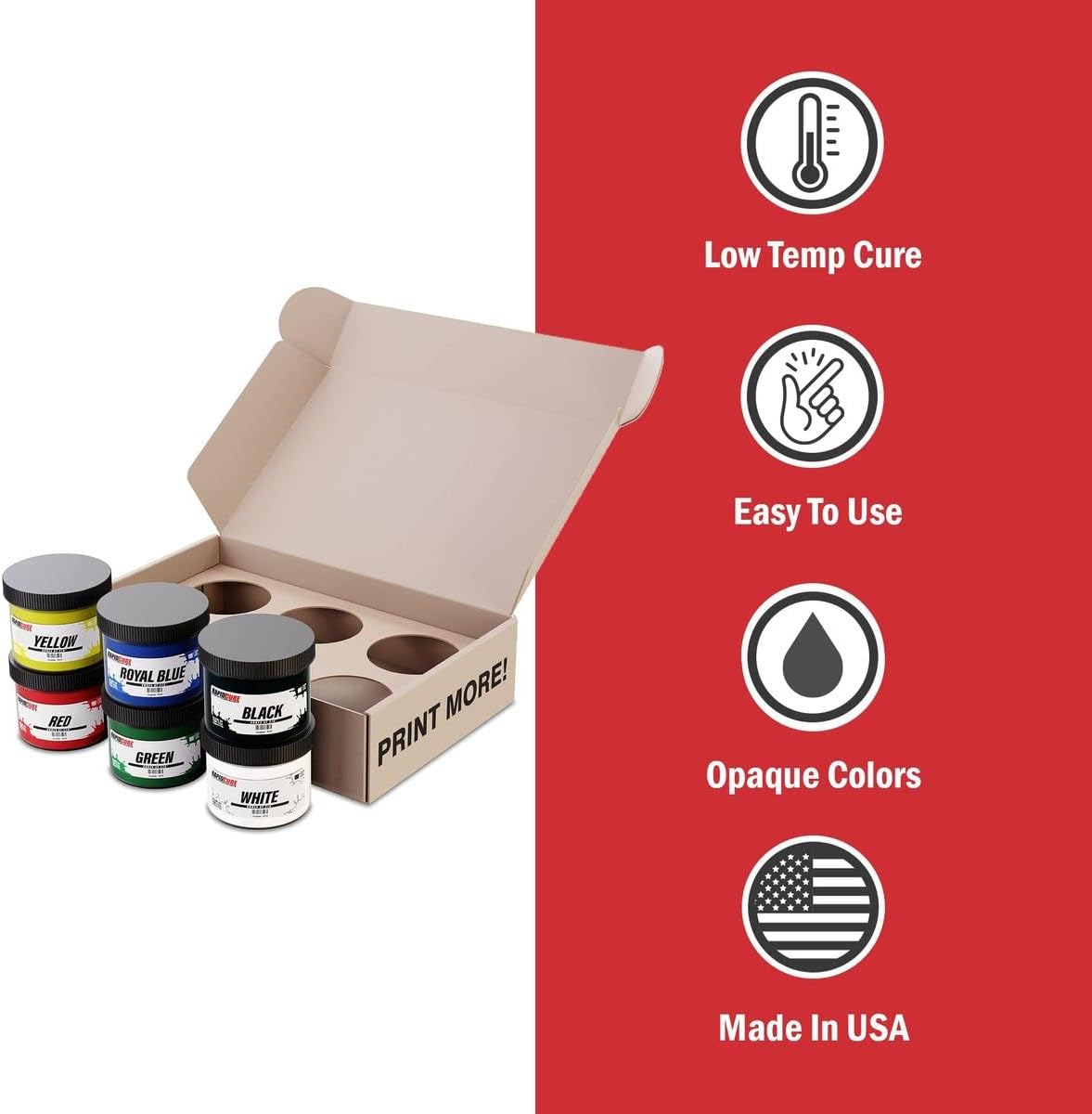 Screen Printing Ink Set - Rapid Cure® 6 Color Plastisol Ink for Screen Printing Fabric - Low Temperature Curing 8 oz. Plastisol Ink by Screen Print Direct® - Inks for Silk Screens and Mesh