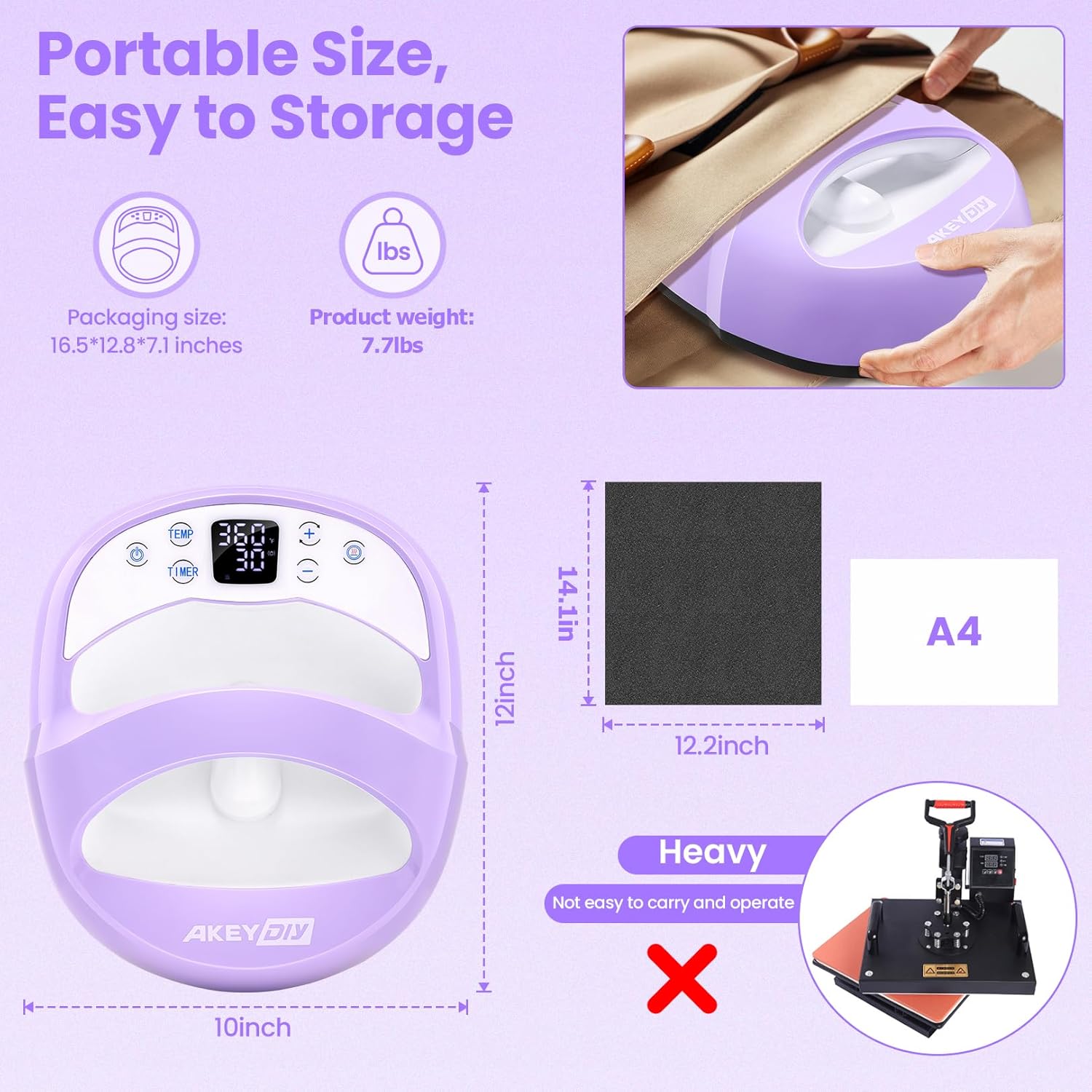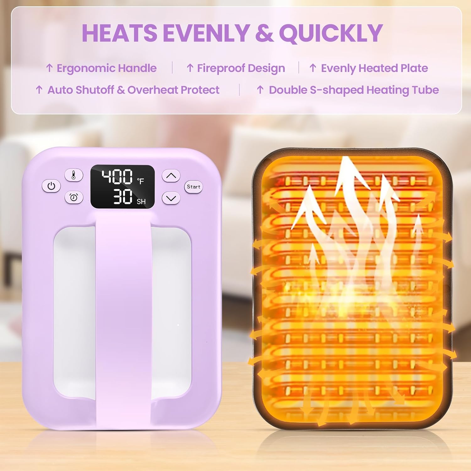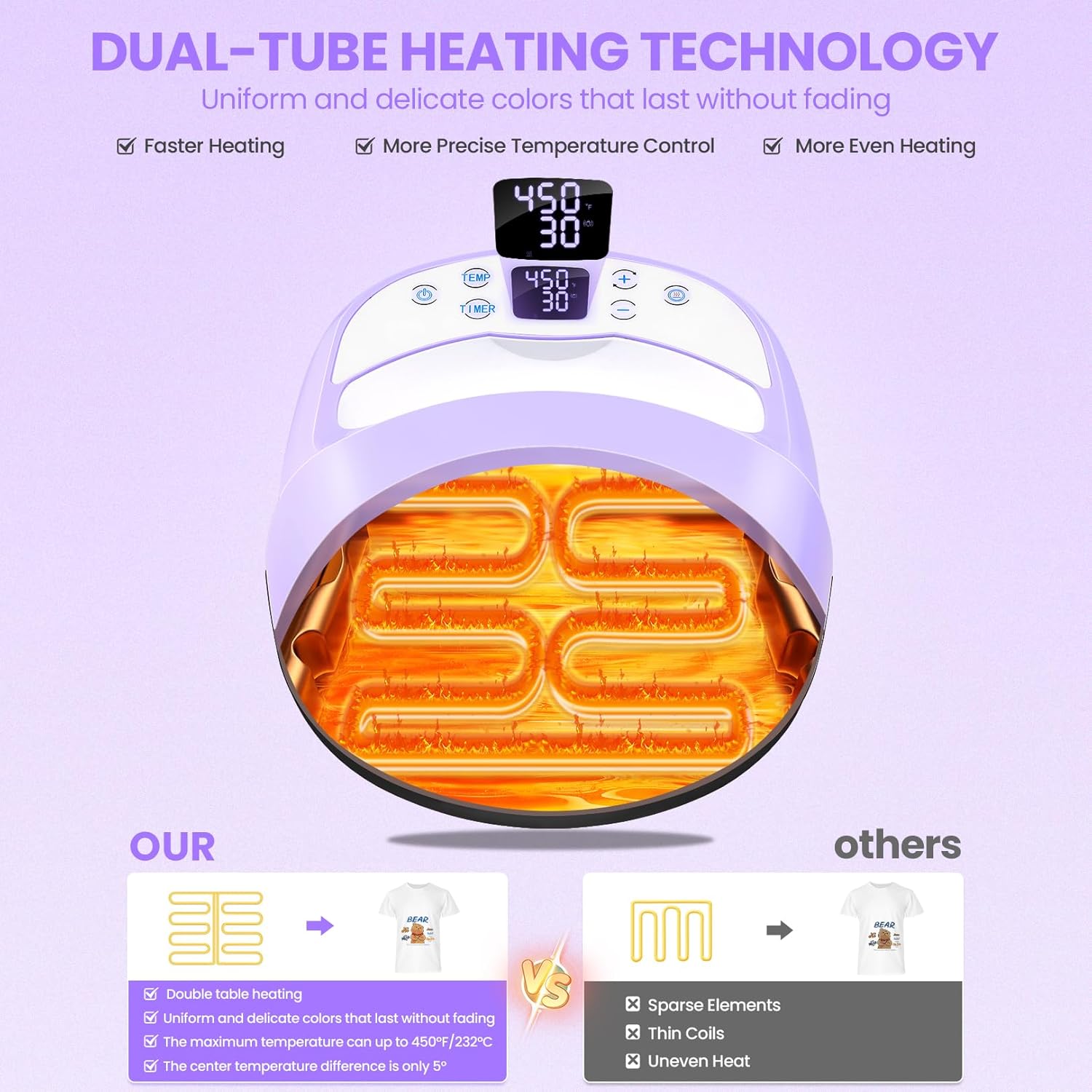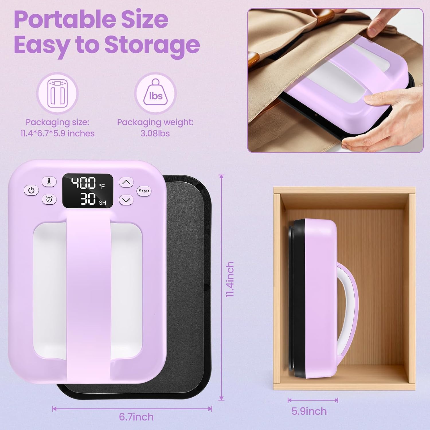 Heat Press Machine for T Shirts, Portable Heat Press 12"X10" - Heat Up Fast & Distribute Heat Evenly, Tshirt Press Machine for Sublimation, HTV, Heat Transfer Projects, Purple