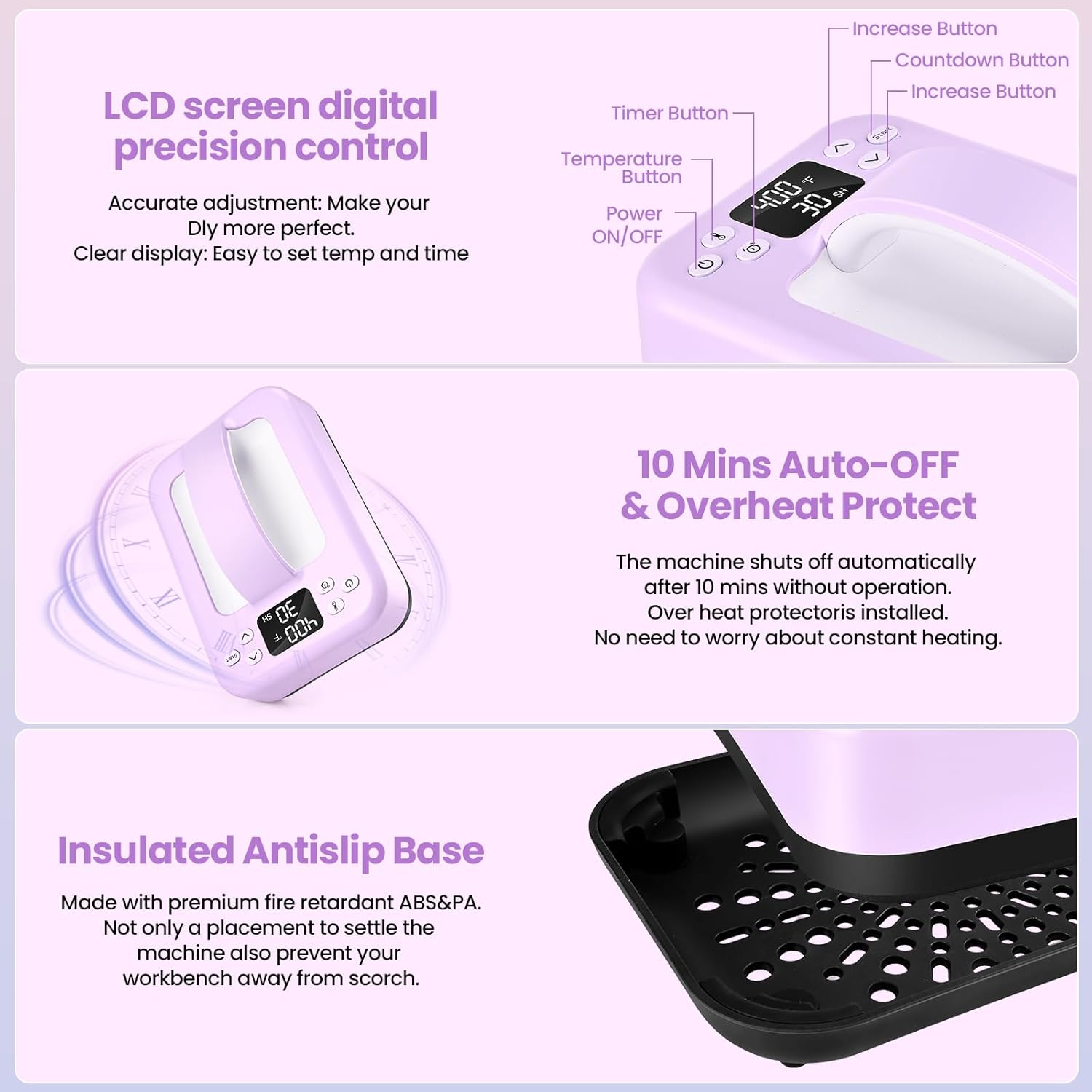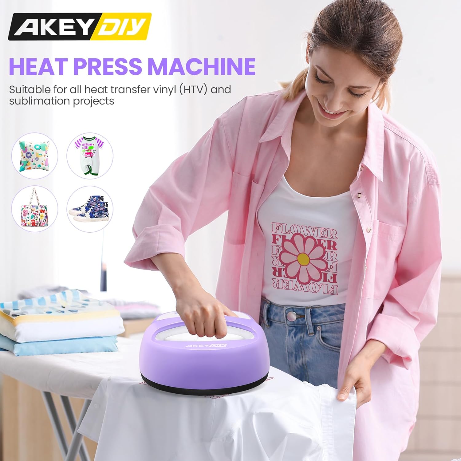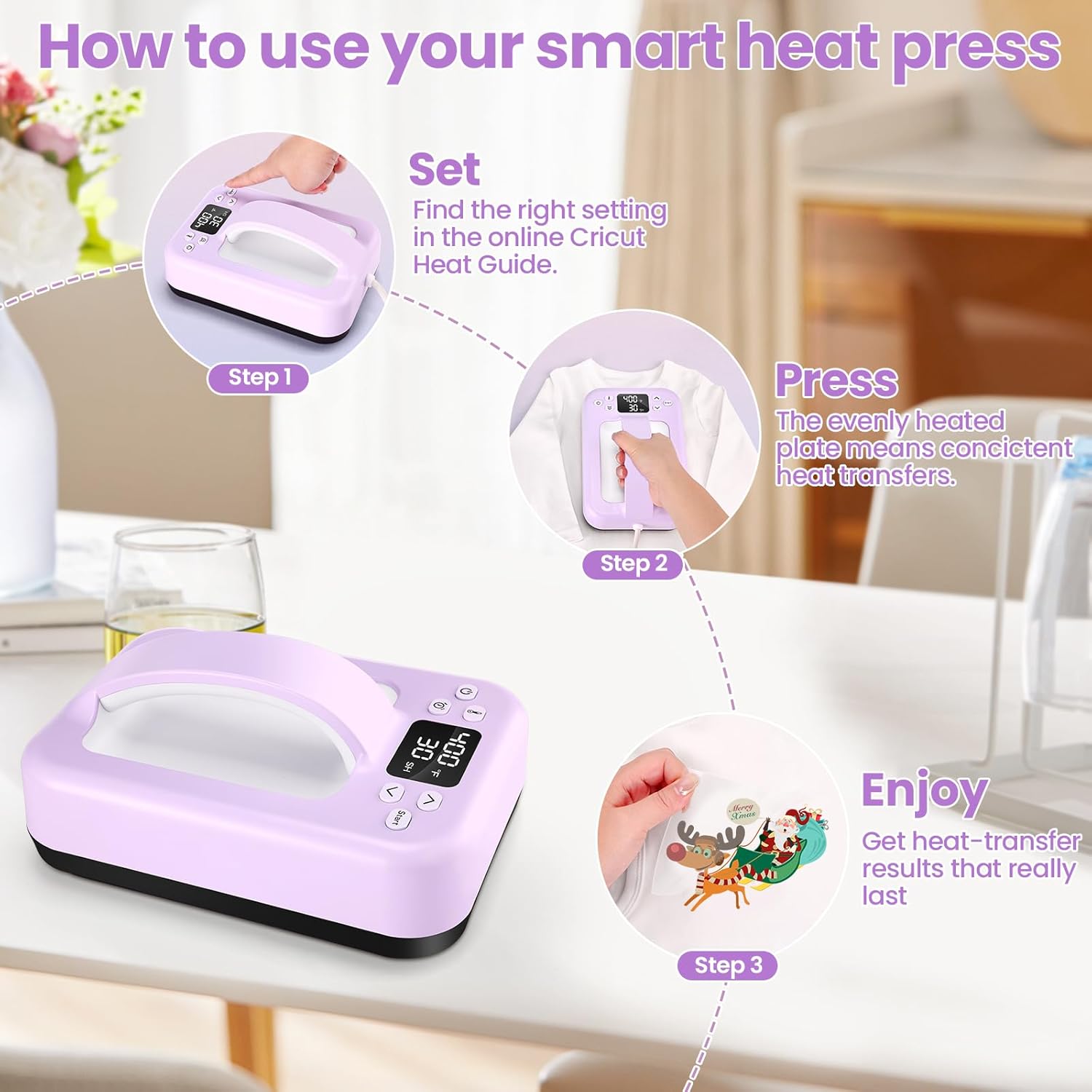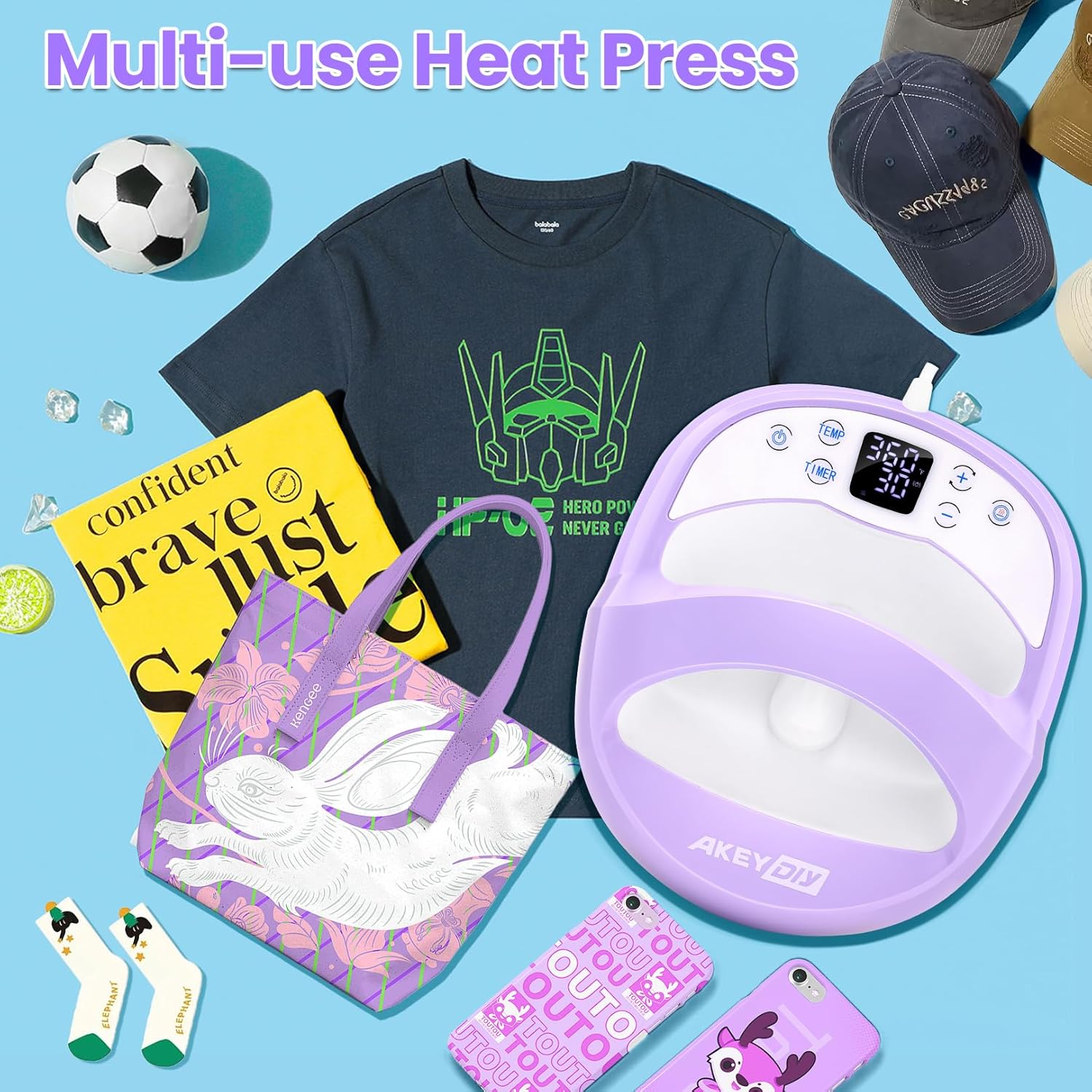 Heat Press Machine for T Shirts, Portable Heat Press 12"X10" - Heat Up Fast & Distribute Heat Evenly, Tshirt Press Machine for Sublimation, HTV, Heat Transfer Projects, Purple