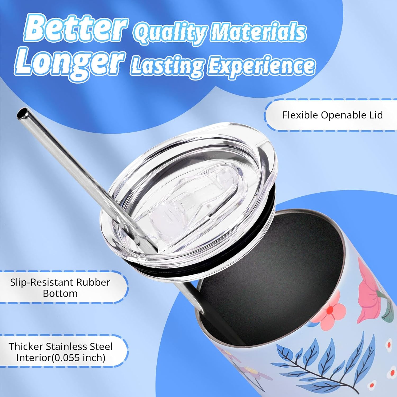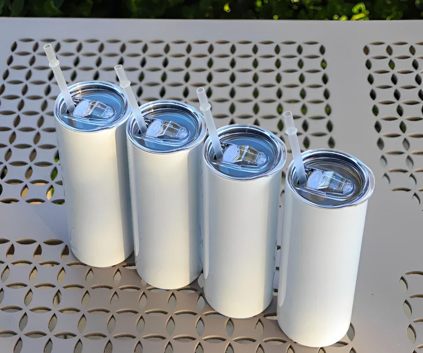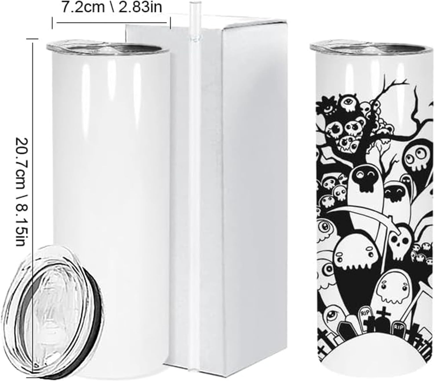 20 oz Sublimation Tumblers Blanks Skinny White, 25 Pack Stainless Steel Double Wall Insulated Straight Sublimation Cups with lid and strawfor Tumbler Heat Press Machine Sublimation Print
