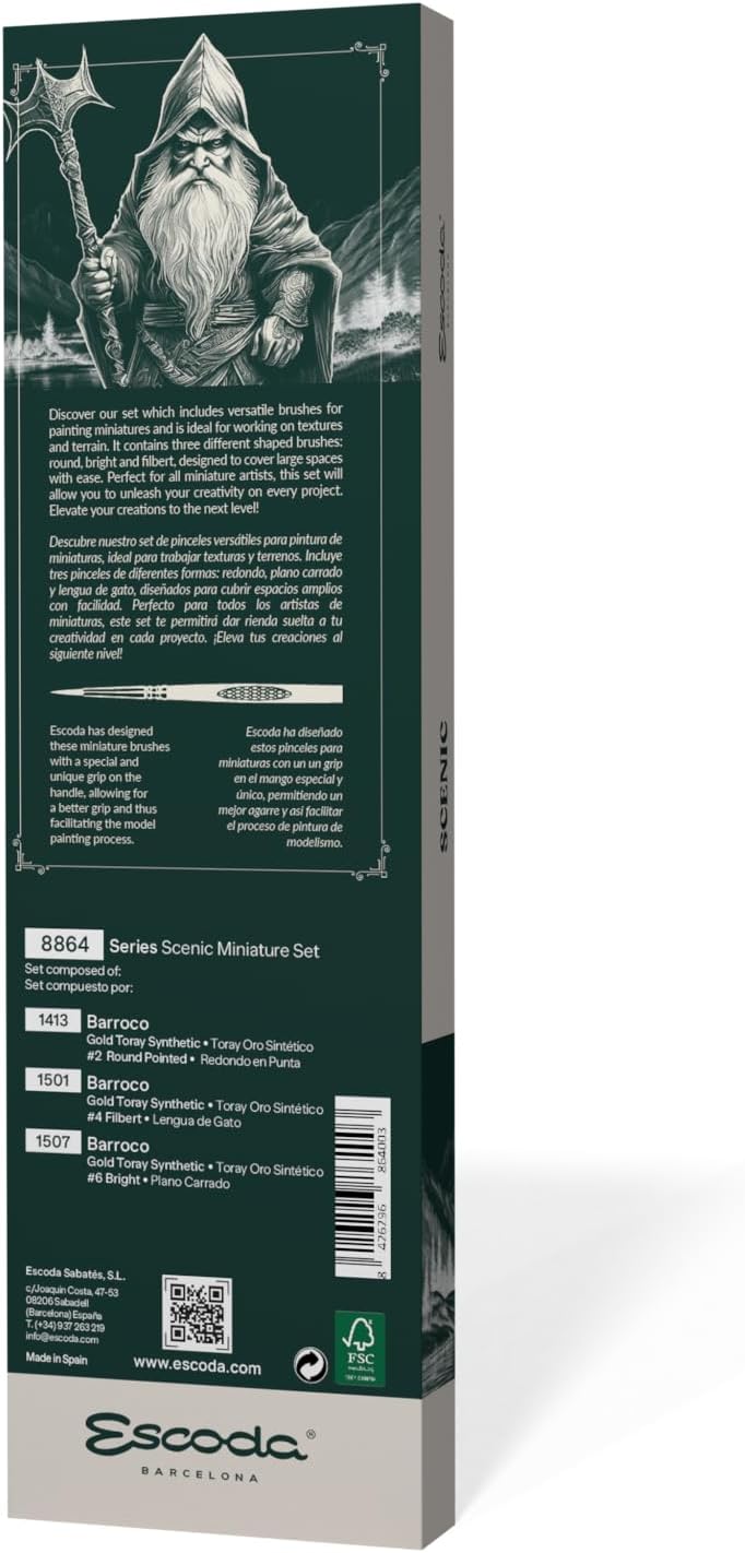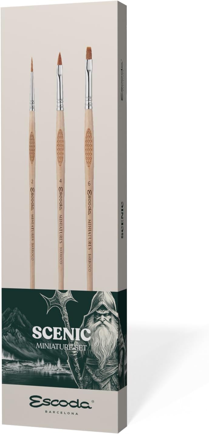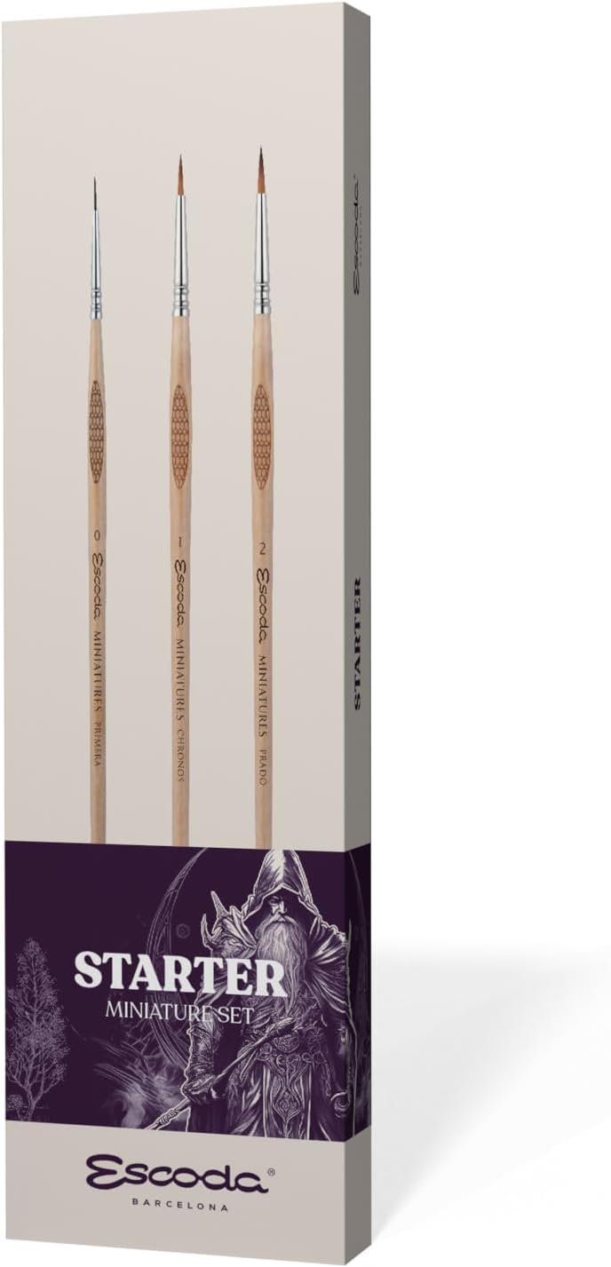 Escoda - Miniature and Modeling Brush Set - Premium Set - Sizes 0, 1, 2-3 Brushes - Brush Hair Type: Kolinsky-Tajmyr Sable Hair - Round Pointed Tips