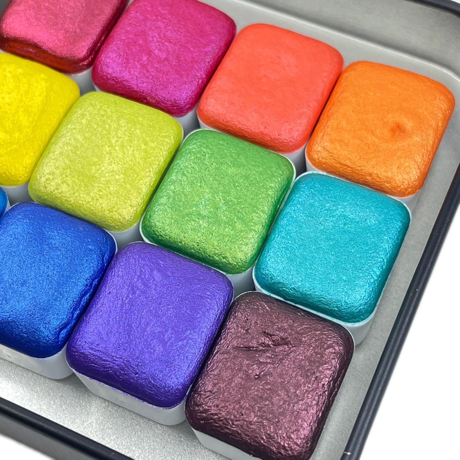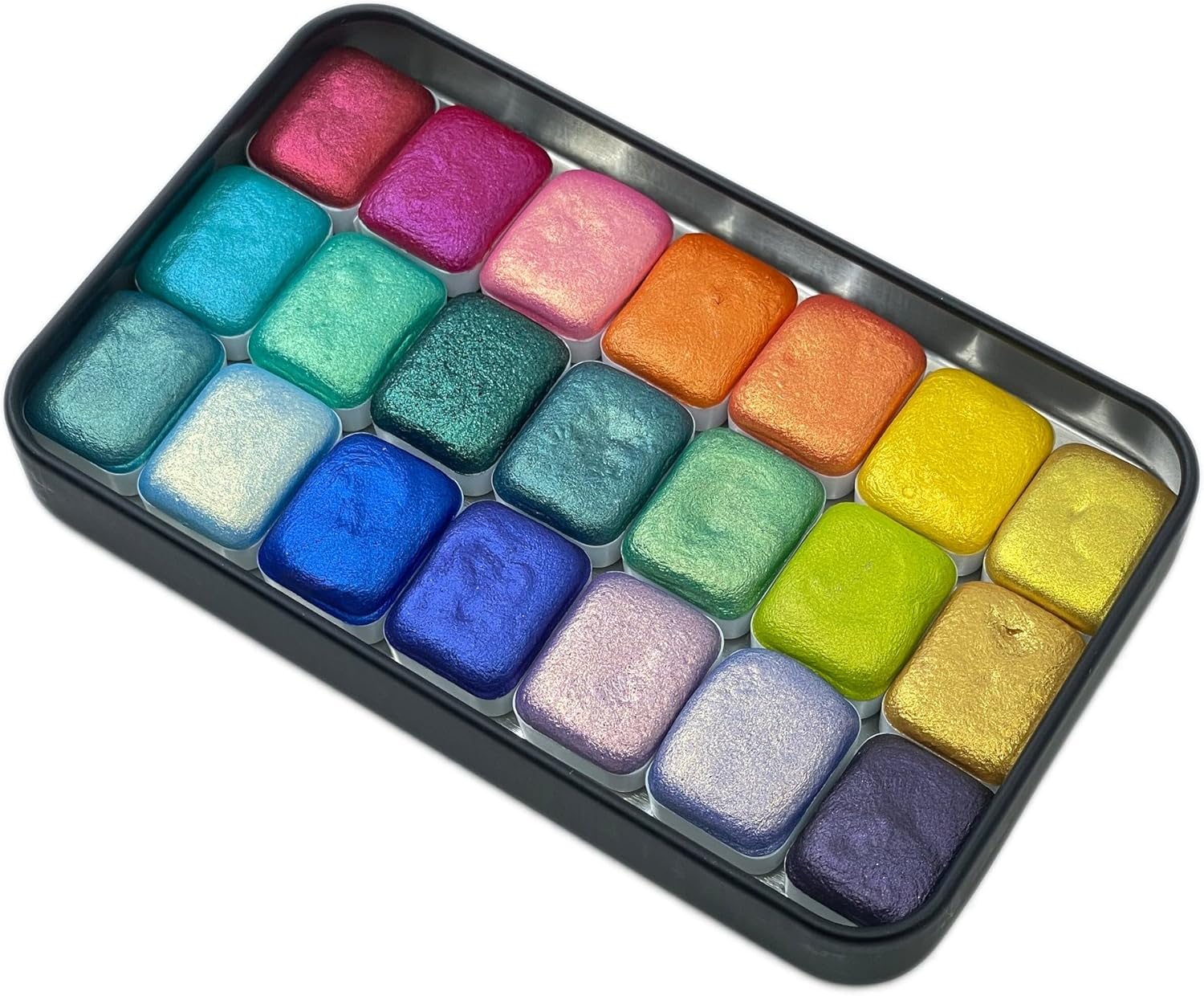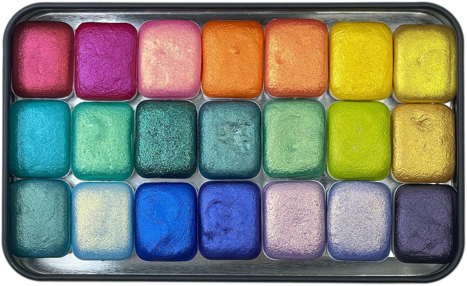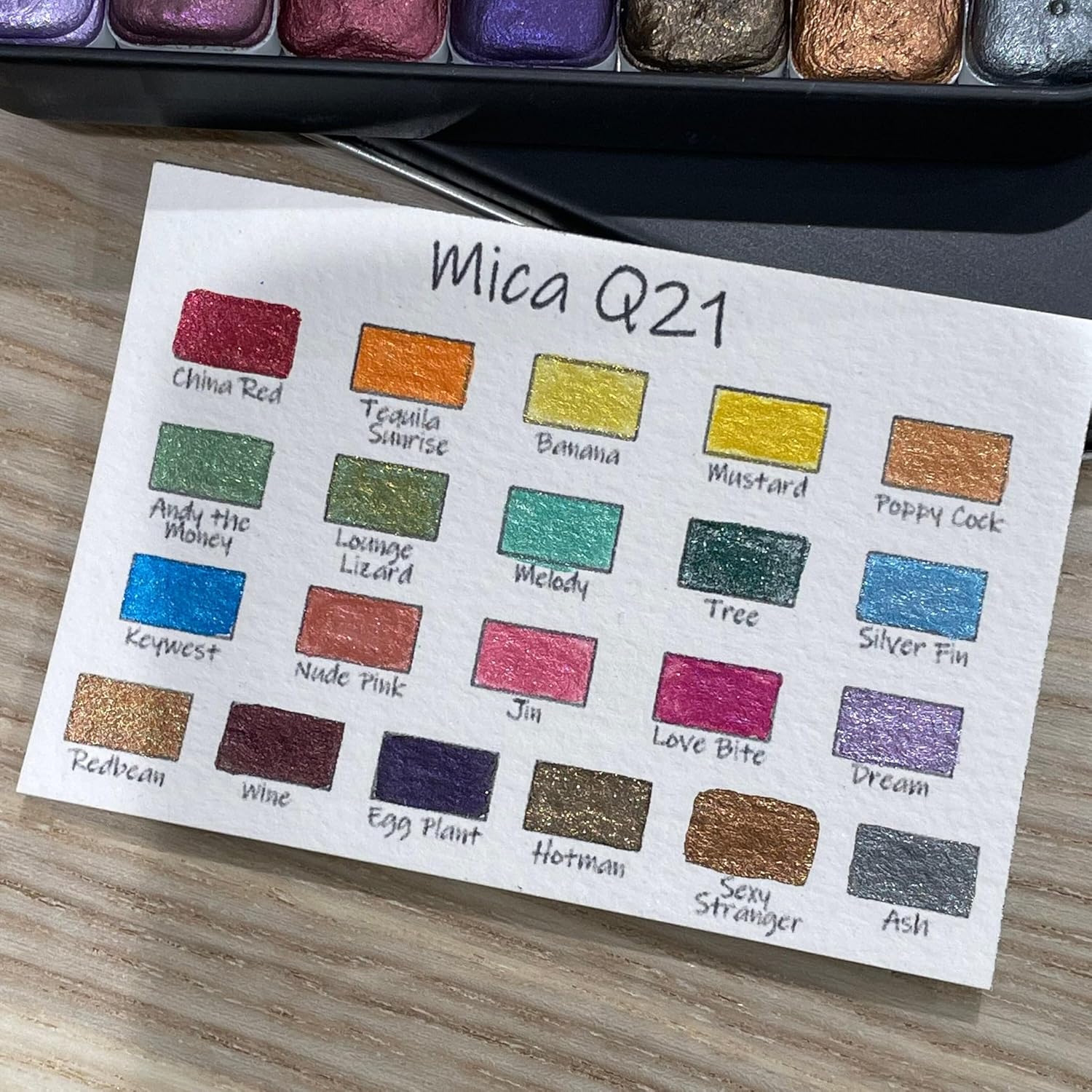 IUILE Handmade Watercolor Paints - Mica Q21-1 Quarter Pan Set (21 colors)