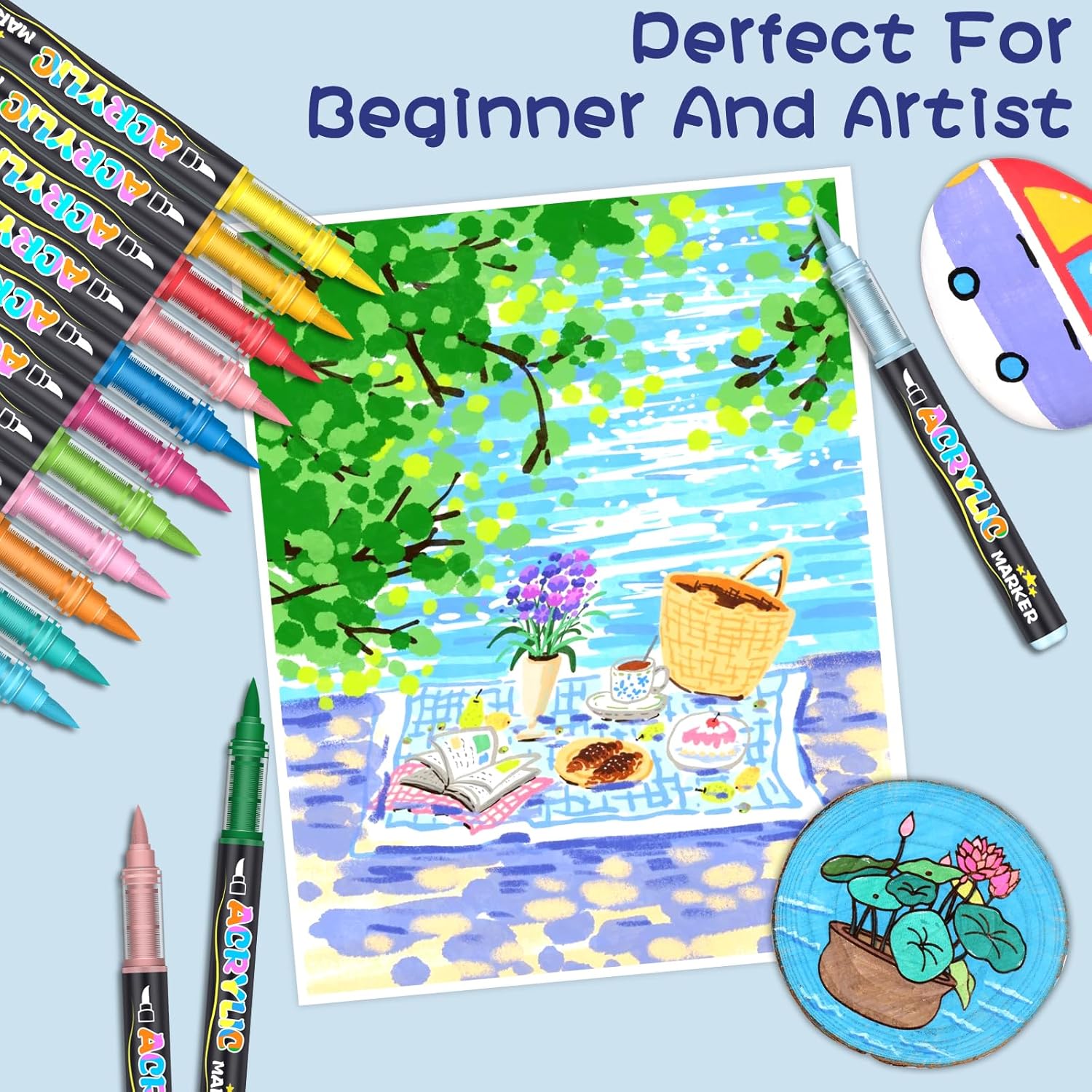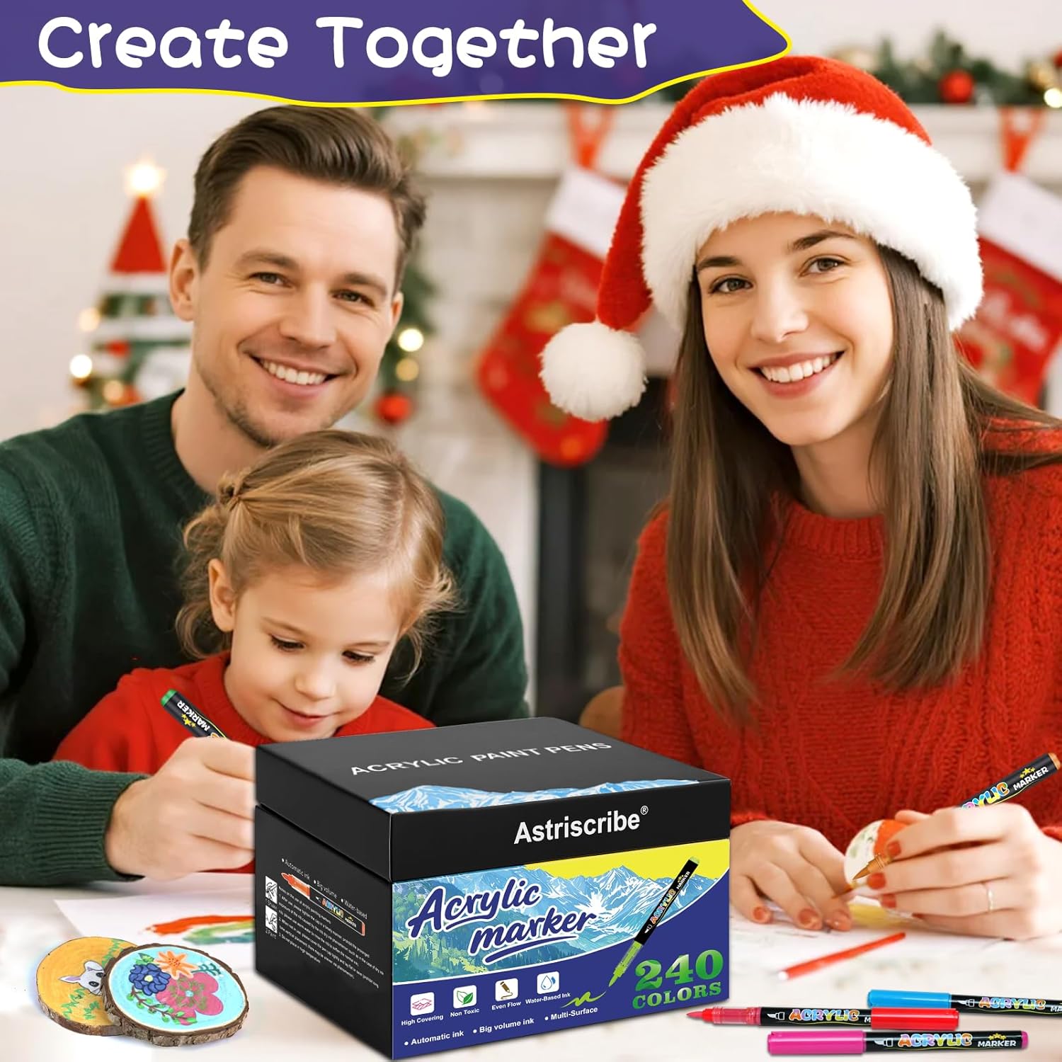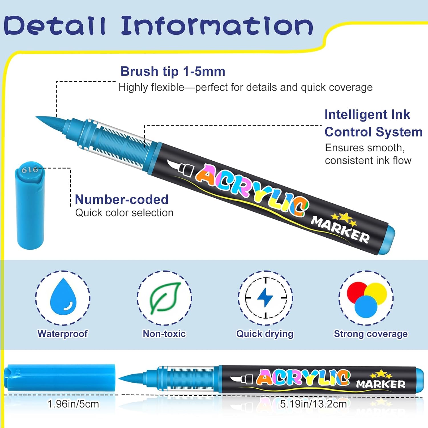 240 Colors Acrylic Paint Pens Markers, No-Bleed Brush Tip Acrylic Markers with Automatic Ink Control System, for Stone, Wood, Canvas, Ceramic, Glass, Metal, Rock Painting, DIY Crafts Art Supplies Kit