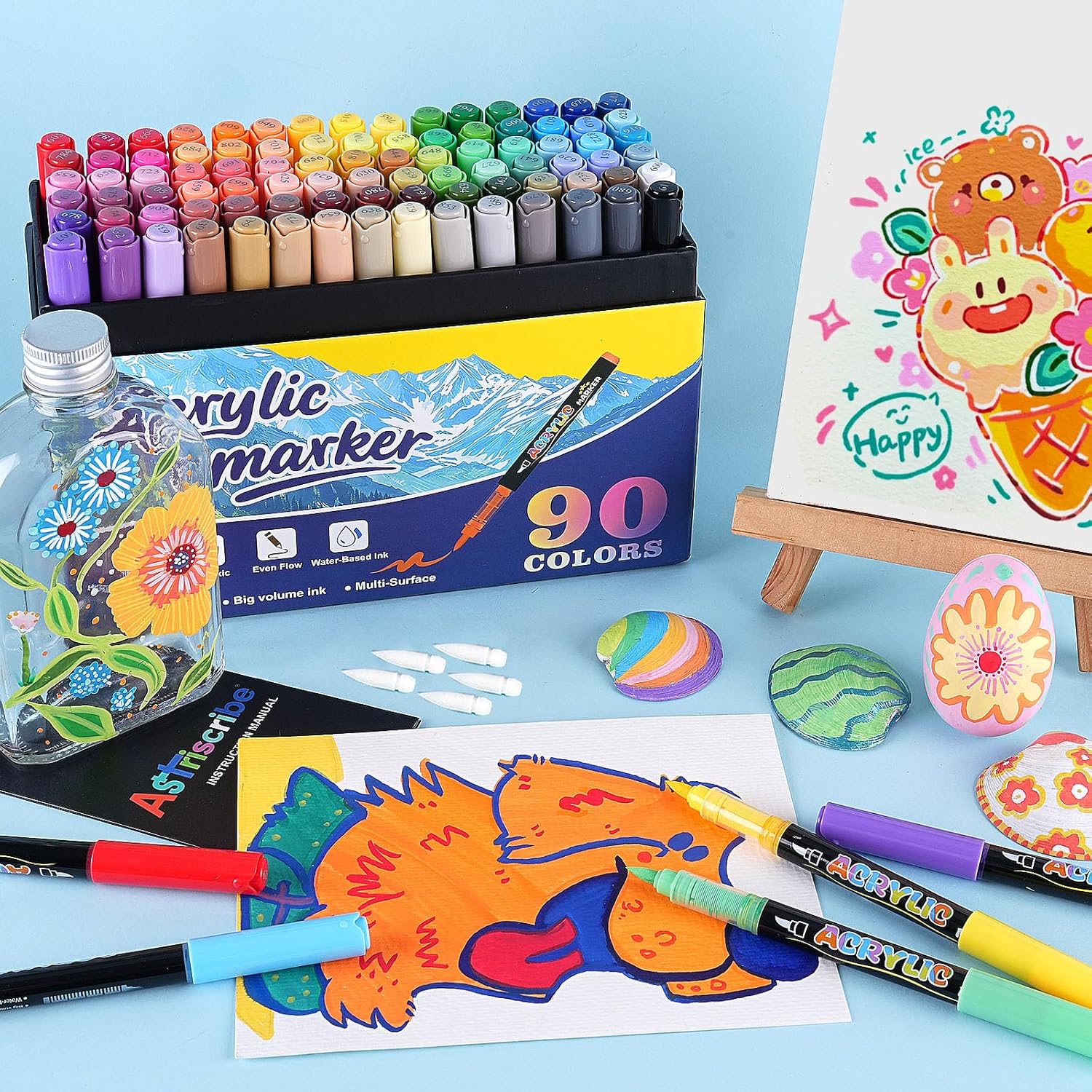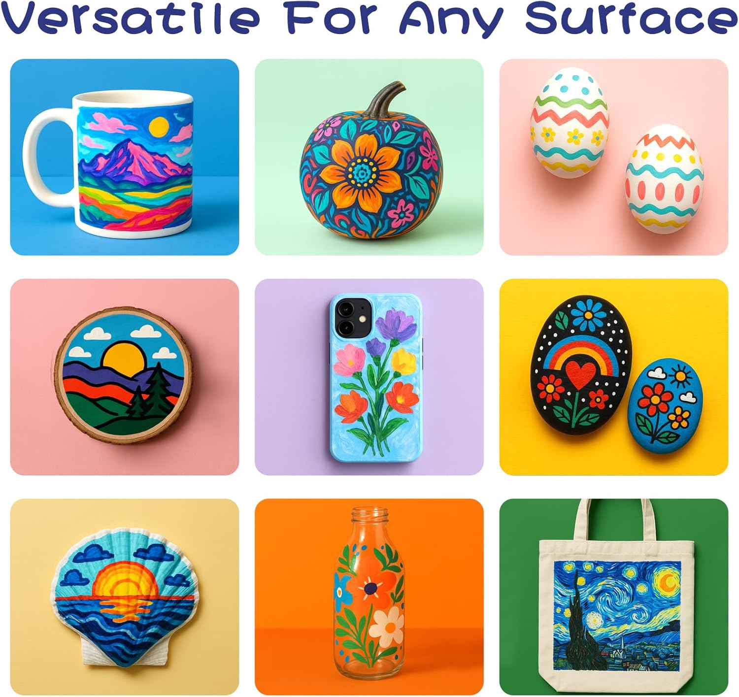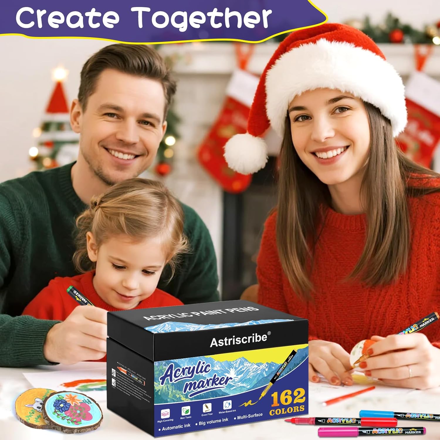240 Colors Acrylic Paint Pens Markers, No-Bleed Brush Tip Acrylic Markers with Automatic Ink Control System, for Stone, Wood, Canvas, Ceramic, Glass, Metal, Rock Painting, DIY Crafts Art Supplies Kit